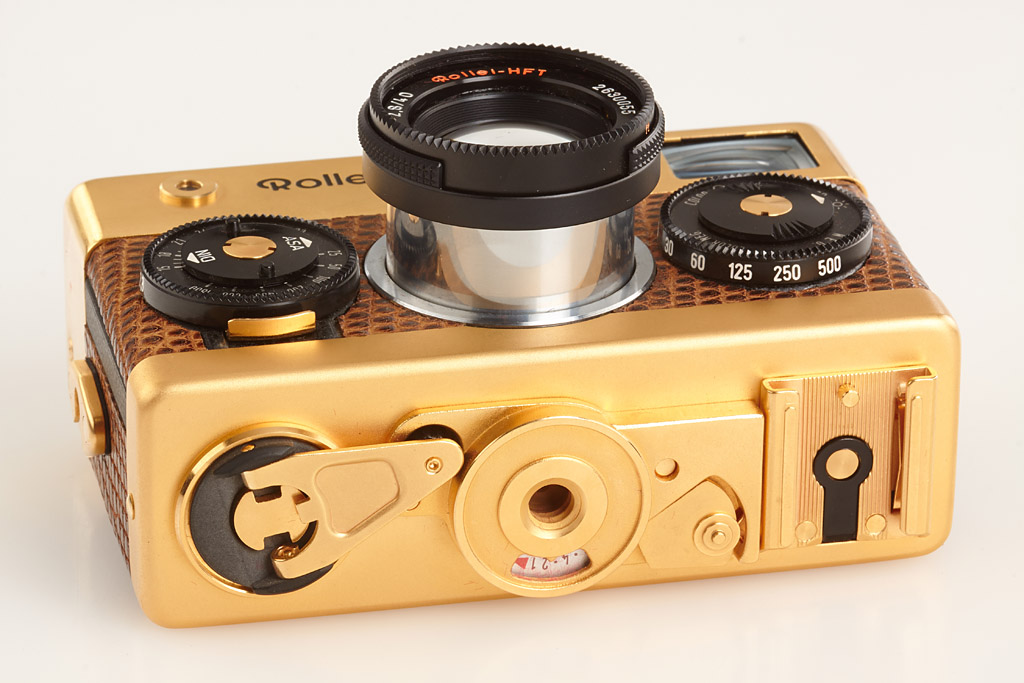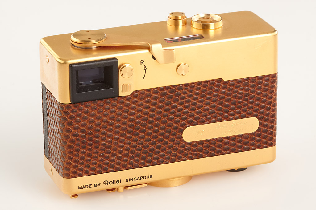 60 Year Anniversary Camera with 24 carat gold plating, limited edition of 1500 cameras, Sonnar 2.8/40mm no.2630055, lizard skin case, instructions, wooden presentation box (locking pin missing)