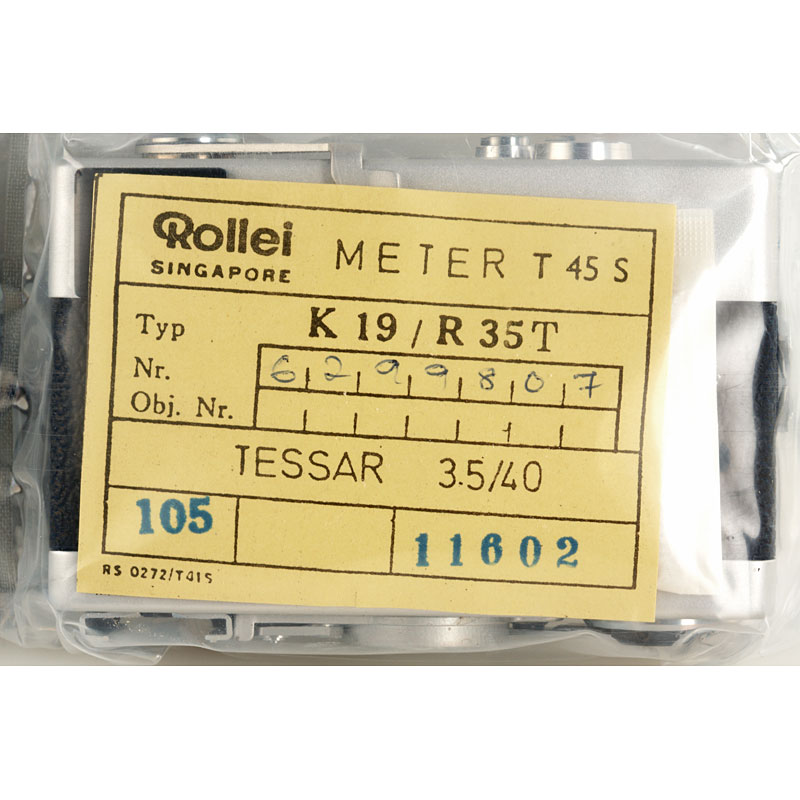 new and never used, still sealed Rollei 35 with Tessar 3.5/40mm, cap, case, papers, maker's box