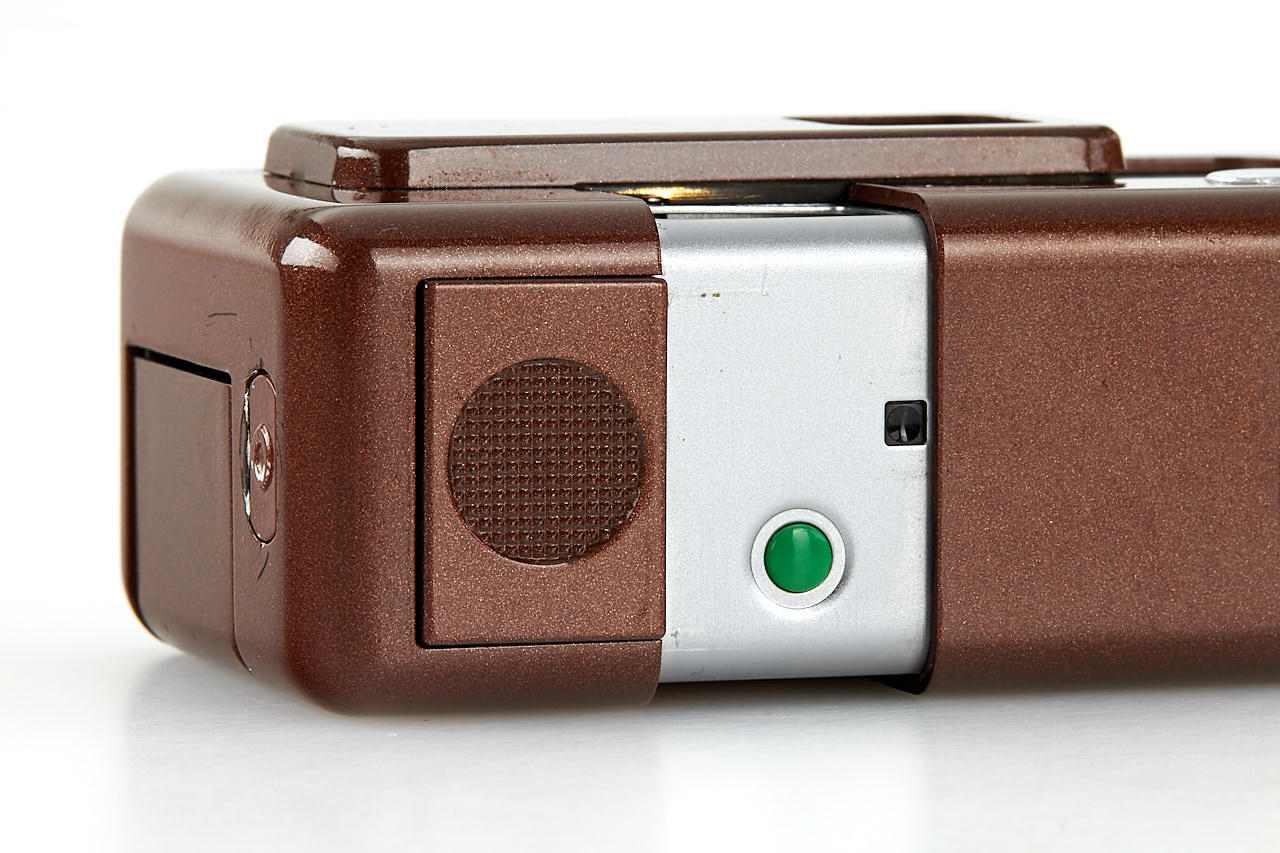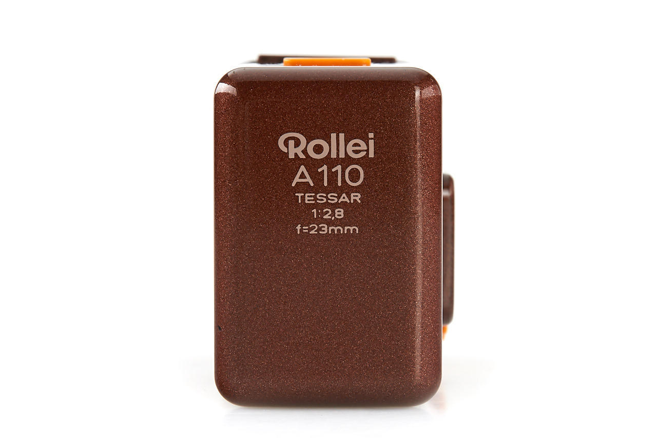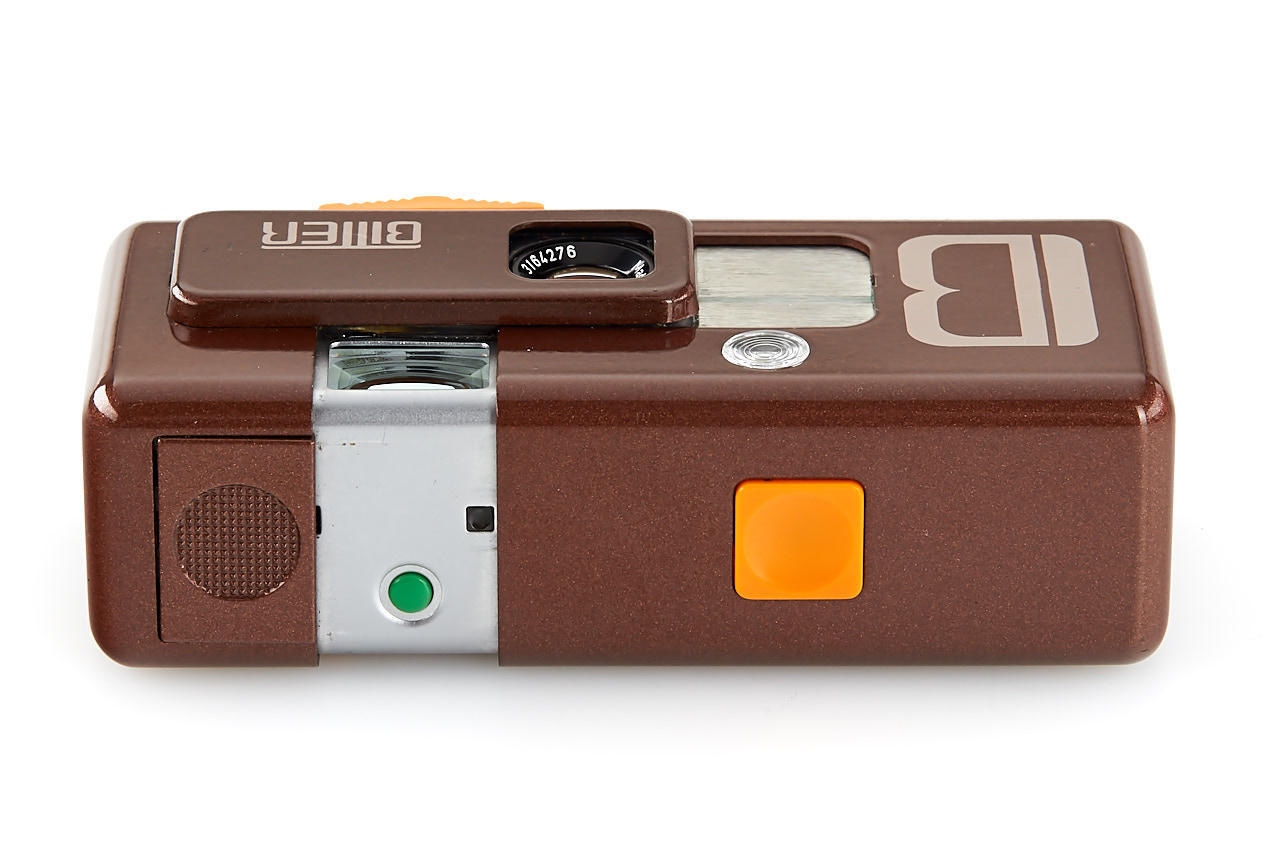 Rare brown Rollei 110 edition camera marked 'B' and 'BITTER' on front, on back engraved 'J. GROSS' (probably the previous owner). This limited edition of about 160 examples has been produced for the buyers of the famous Opel Bitter CD luxus coupé between 1974-1980. In near mint condition, with lens no.3164276, leather case, see Claus Prochnow 'Rollei Report 3', p.794