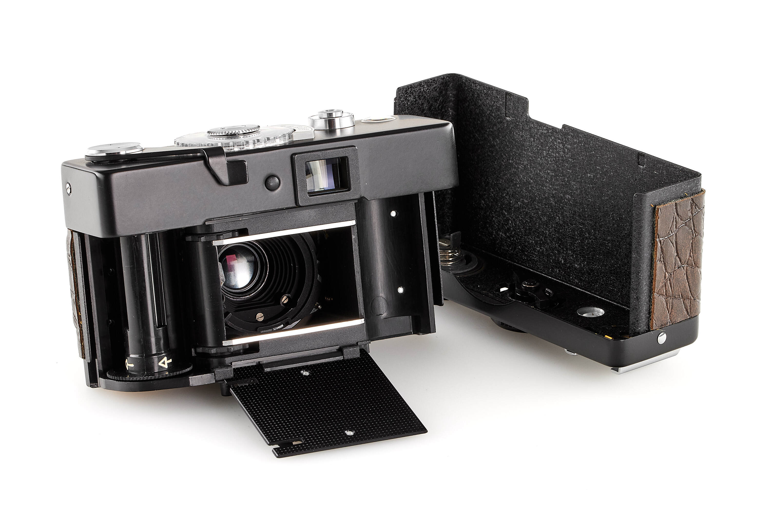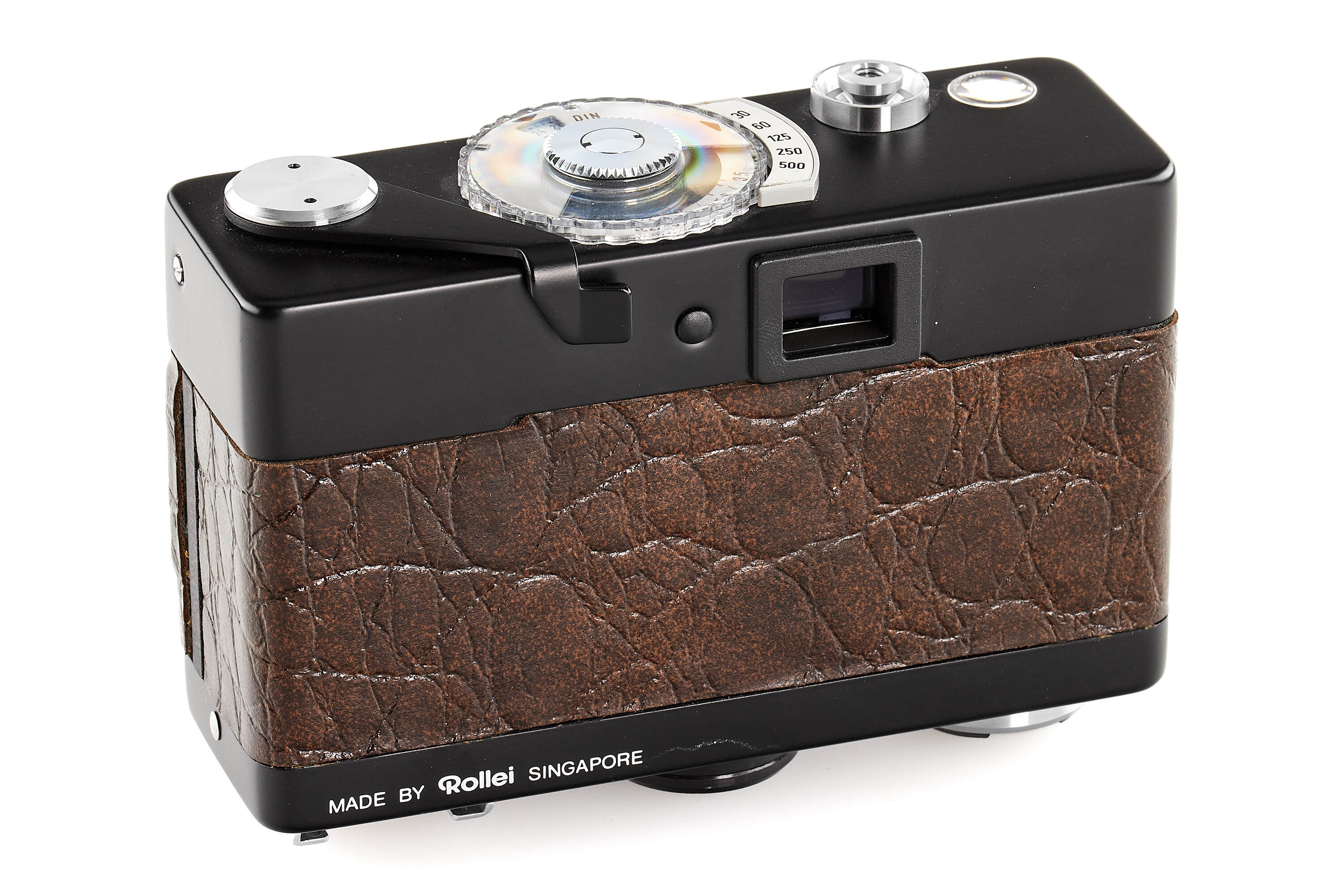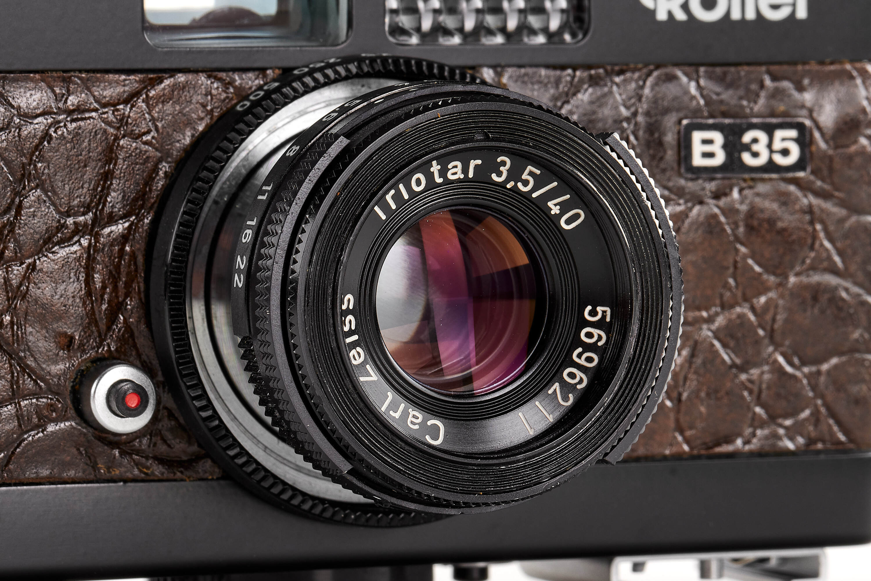 Very rare Rollei B35 with brown leather covering, produced in very small numbers to test market acceptance, particularly in the USA. In near-mint condition, equipped with Triotar 3.5/40mm. This version is listed in Prochnow, Rollei Report 3, p. 30-728, among the other documented variants.
