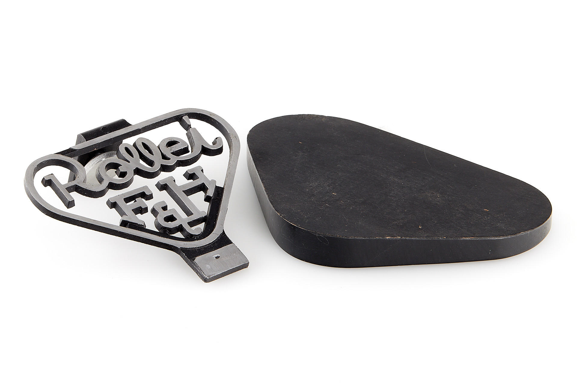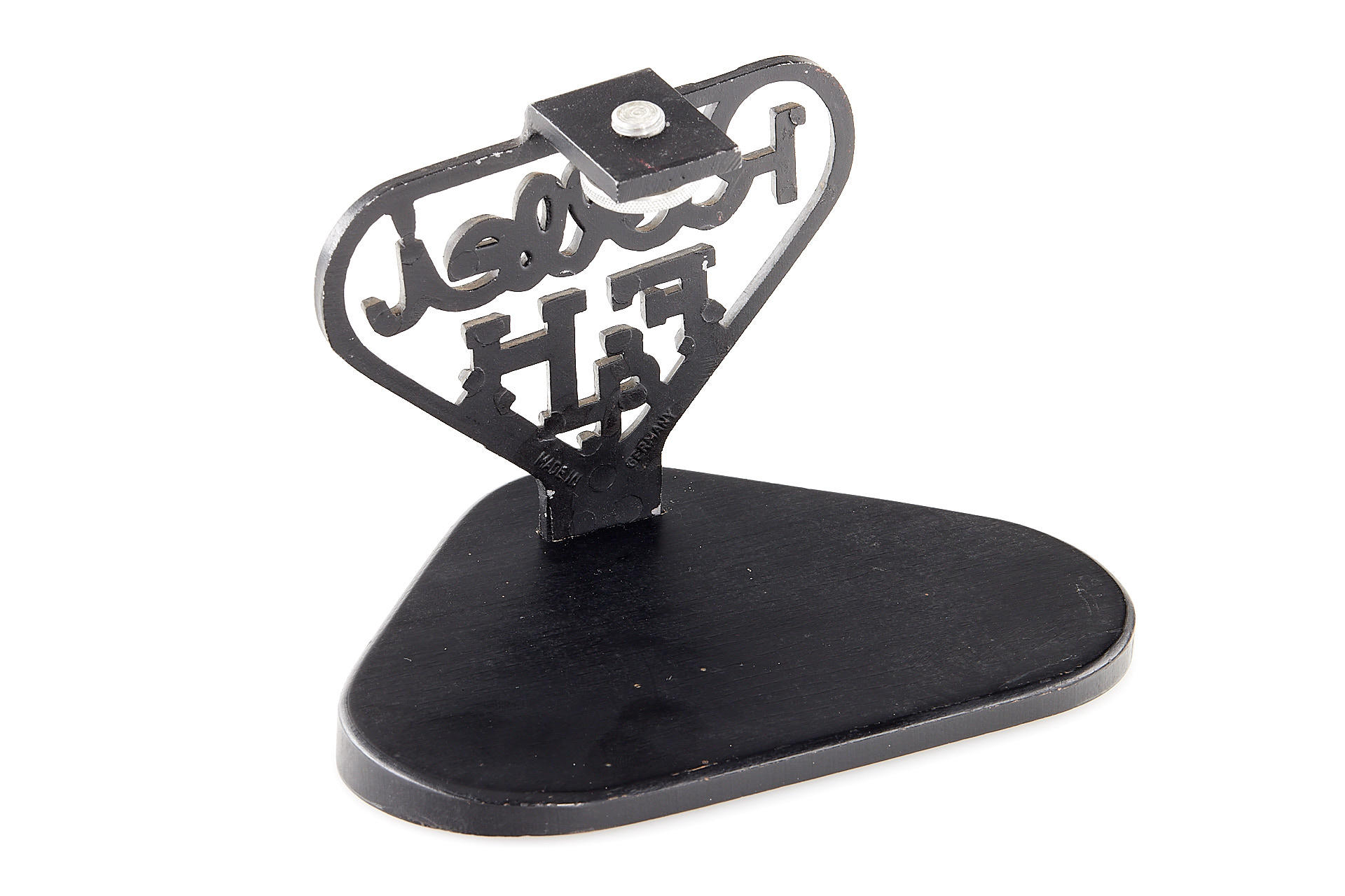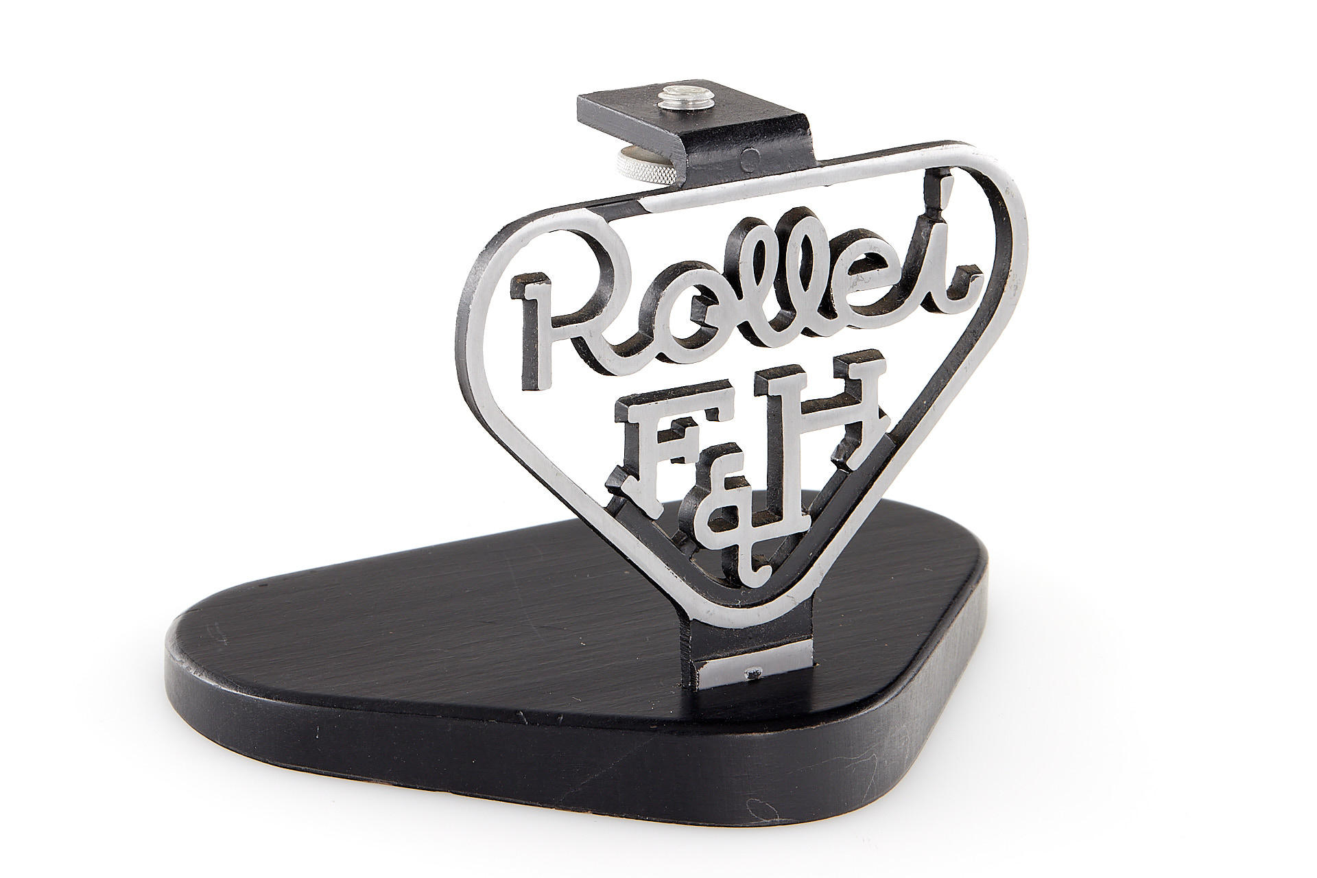 Very attractive camera stand in near mint condition, black painted injected metal and wood (16 x 11.5cm, height 11cm).