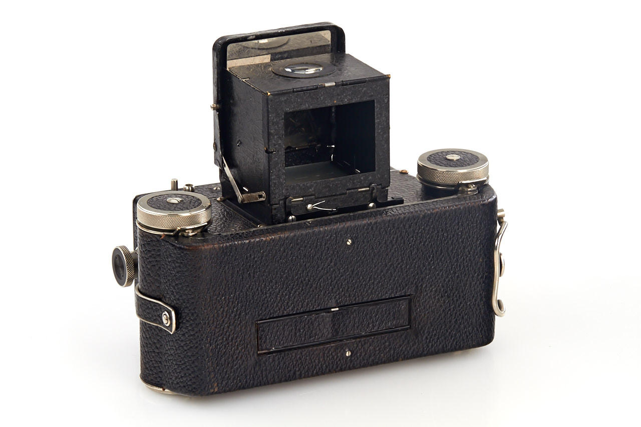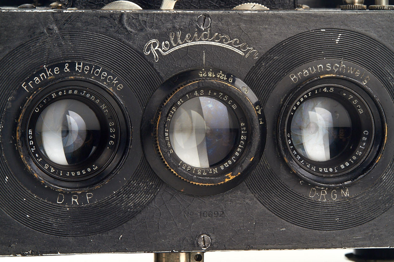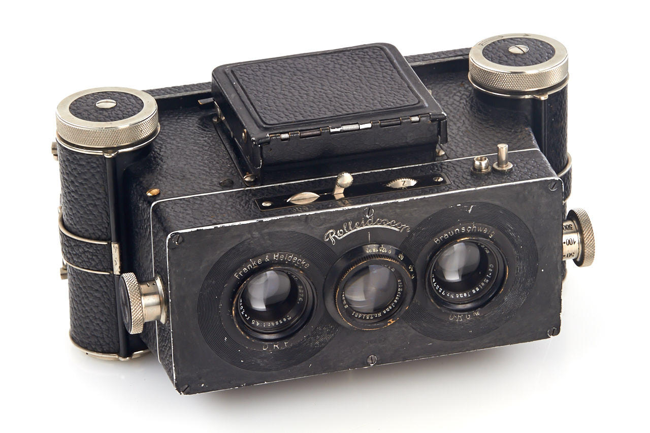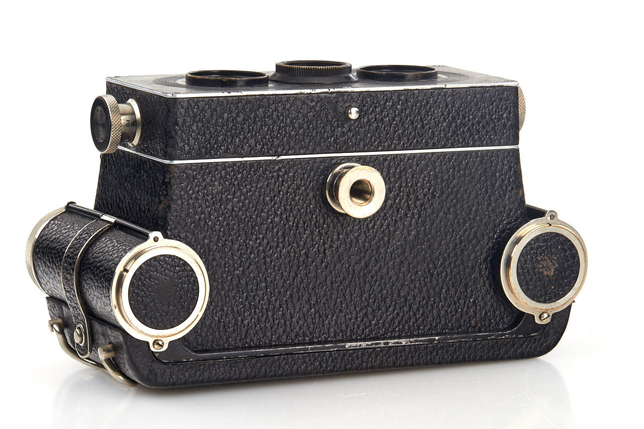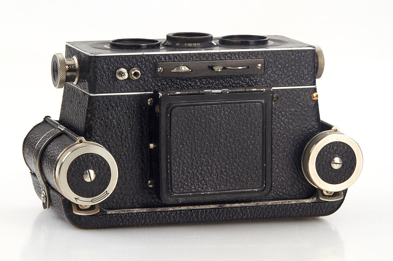 6x13cm stereo-camera for 120 film, second model (total production approx. 300 cameras only) in working condition, Tessar 4.5/7.5cm lenses nos.722761/762