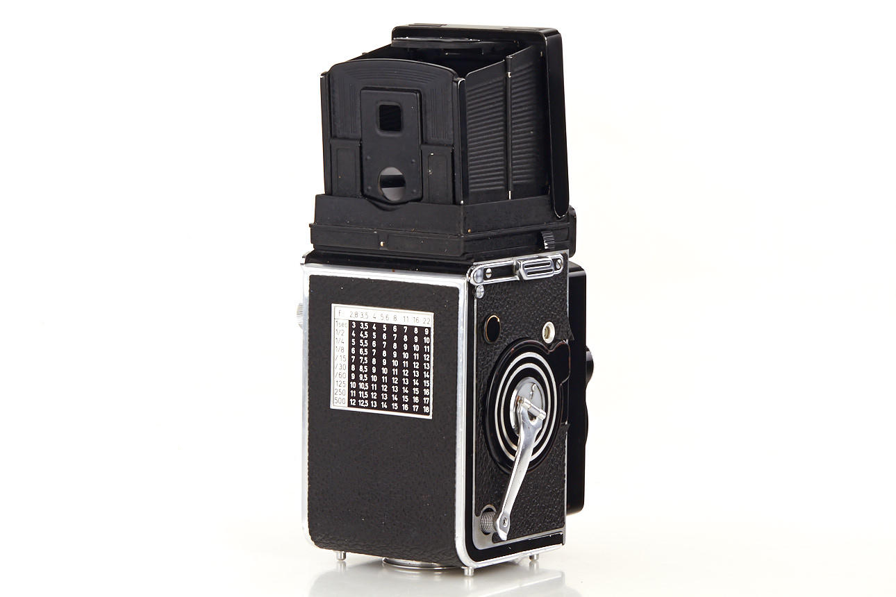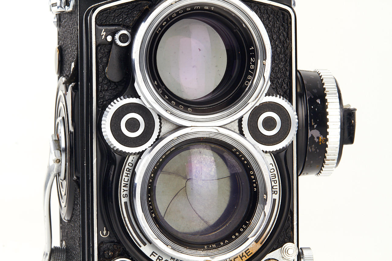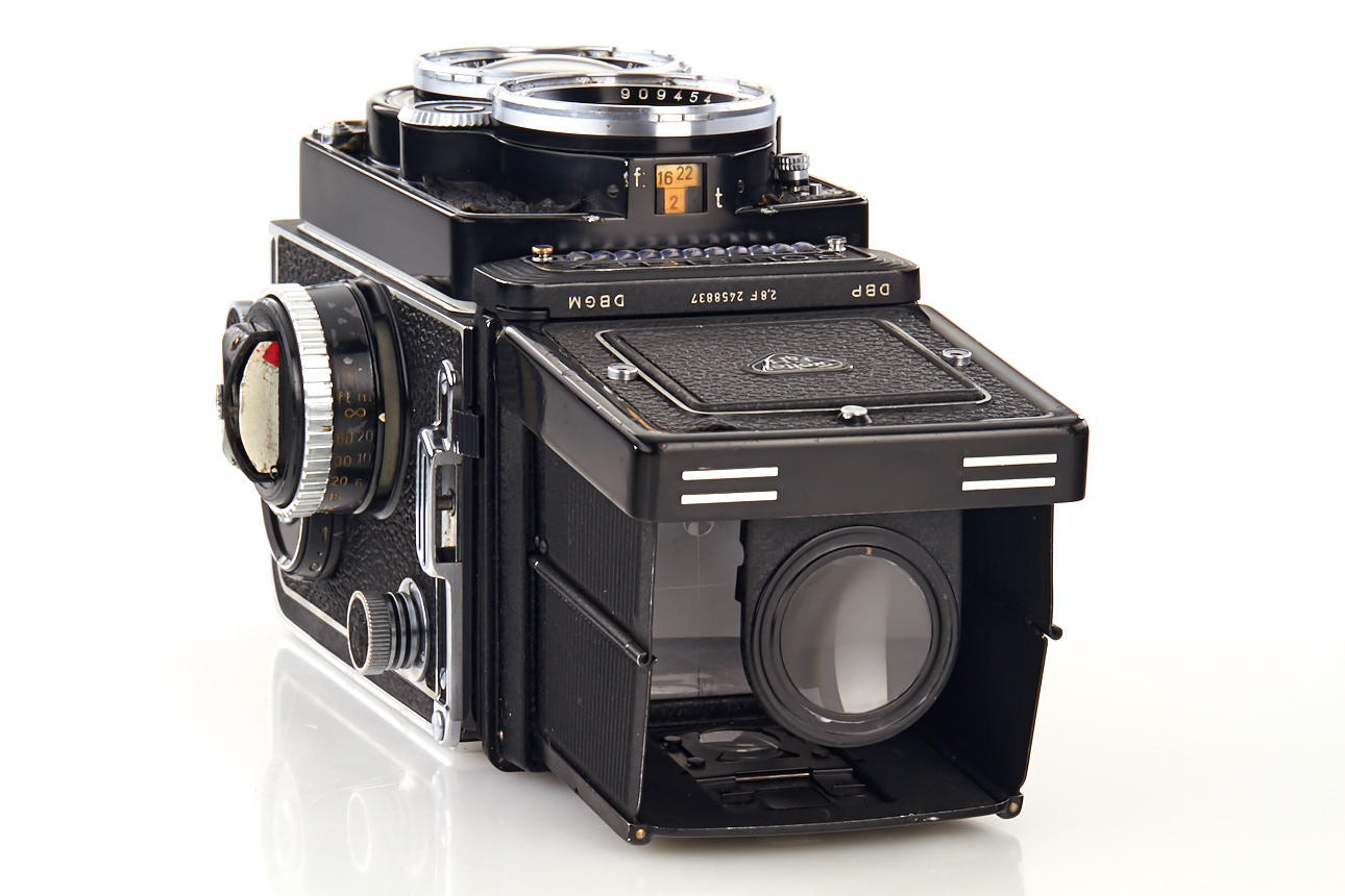 used body (light meter not operable) with prototype Biotar 2.8/80mm no.12099 V8 Nr.2, provenience: Rollei inventory
