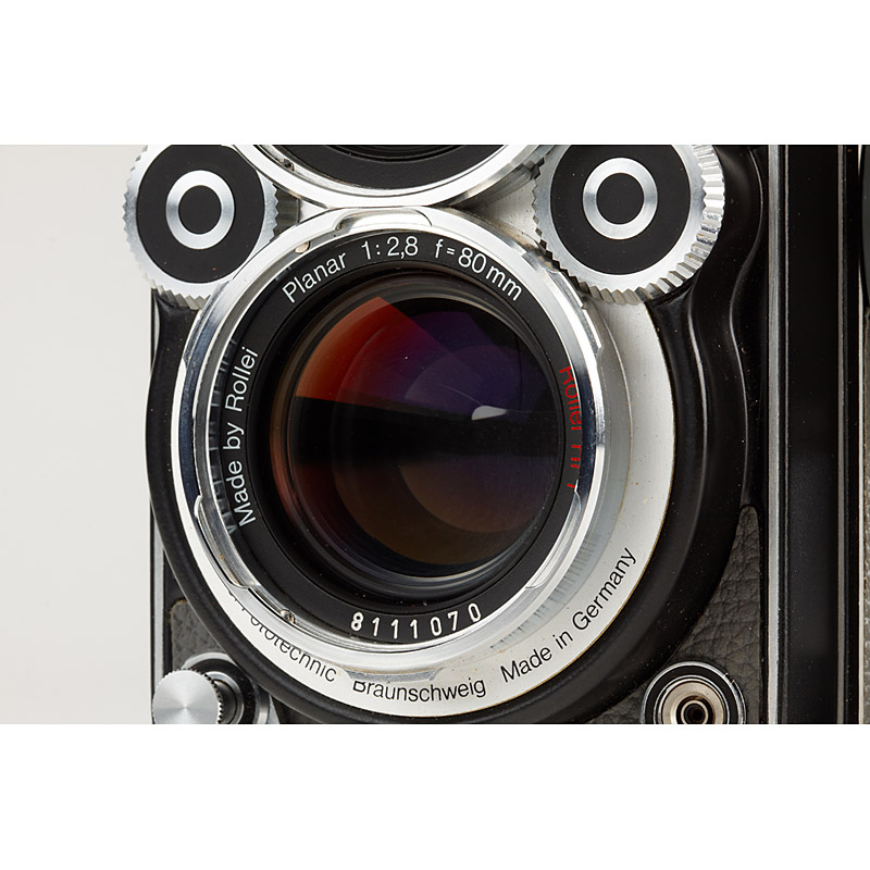 in mint and perfect working condition, clean Planar 2.8/80mm no.8111070, cap, strap, maker's box, Rollei Tripod PT 28, hood, 5x filter, 2x Rolleinar in cases