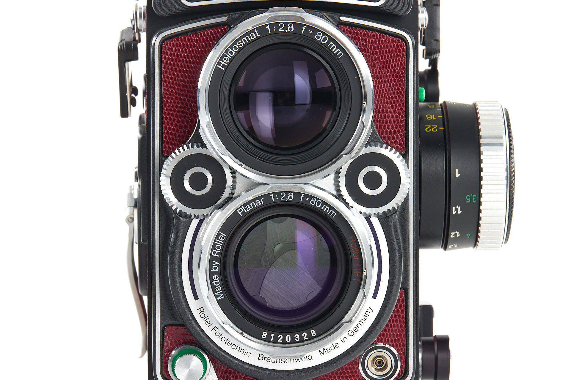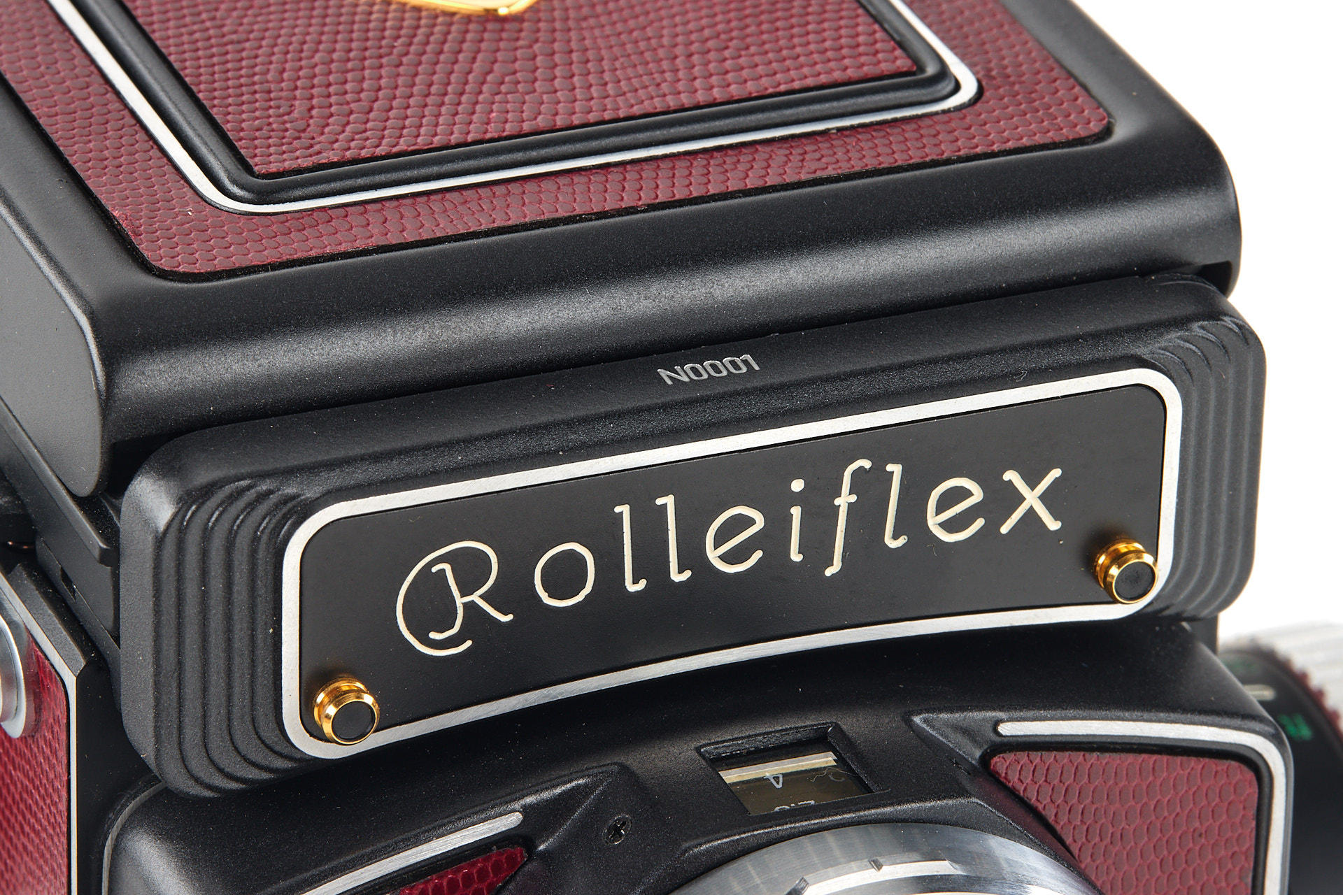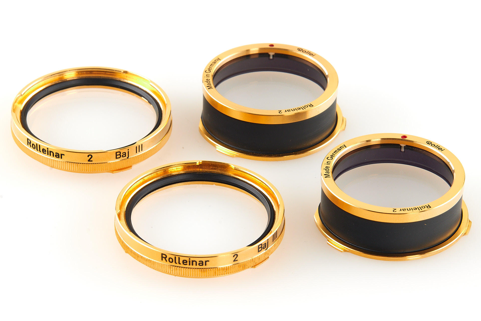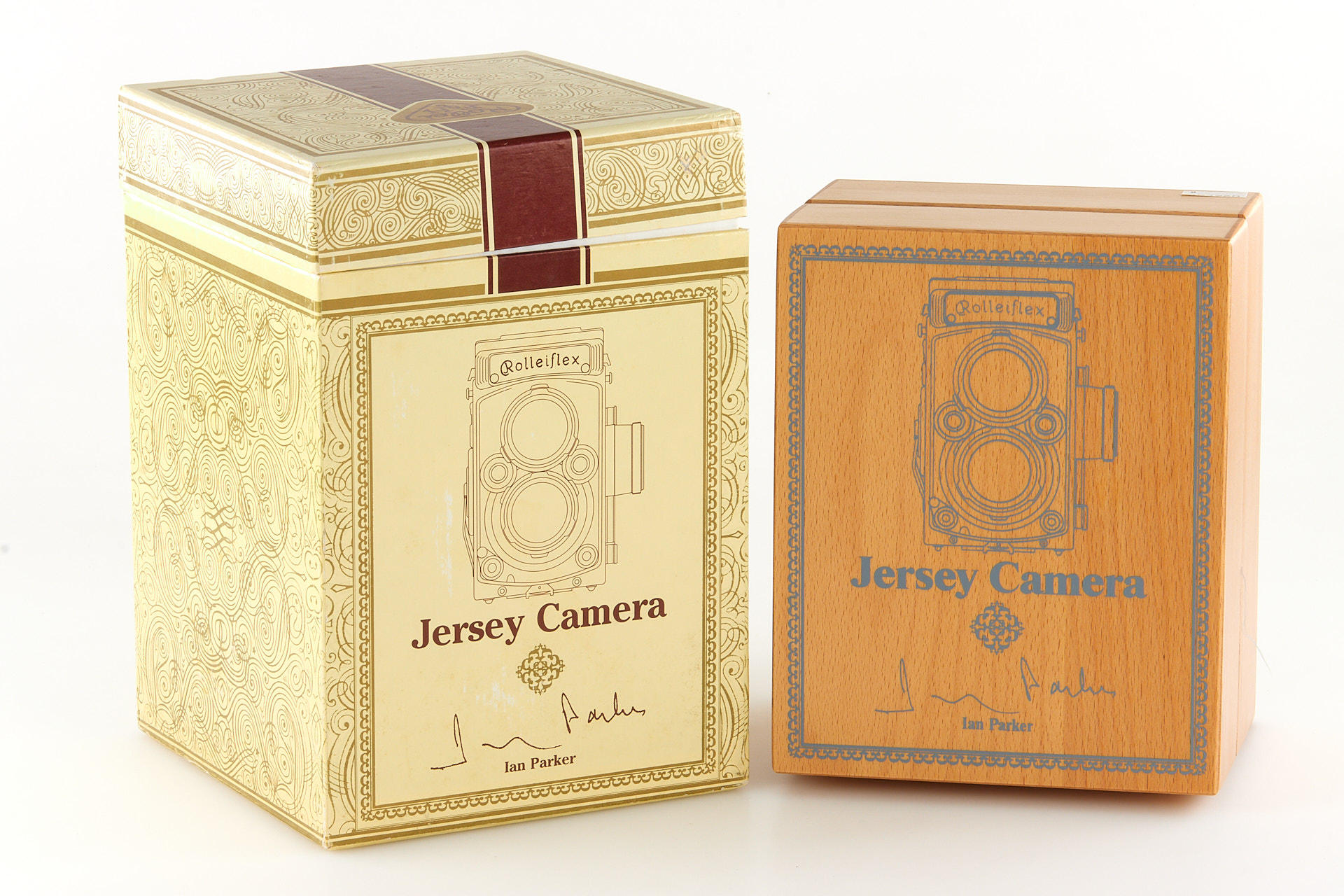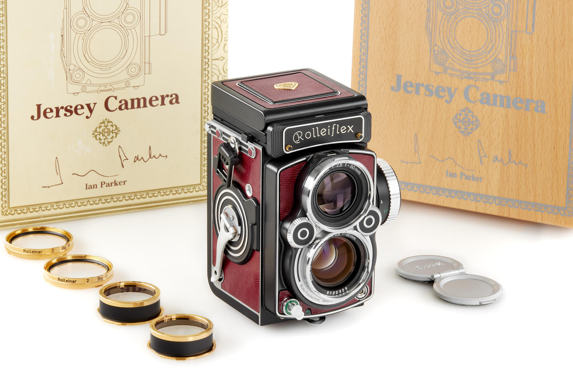 Very rare special edition for Jersey Rollei Club on special order by Mr. Ian Parker, in brand new condition, first camera no.001 of only 100 produced, Planar 2.8/80mm Rollei HFT no.8120328, with 2x golden set Rolleinar 2 (1x Rolleinar leather case), lenses cap, wooden presentation box and original maker's box