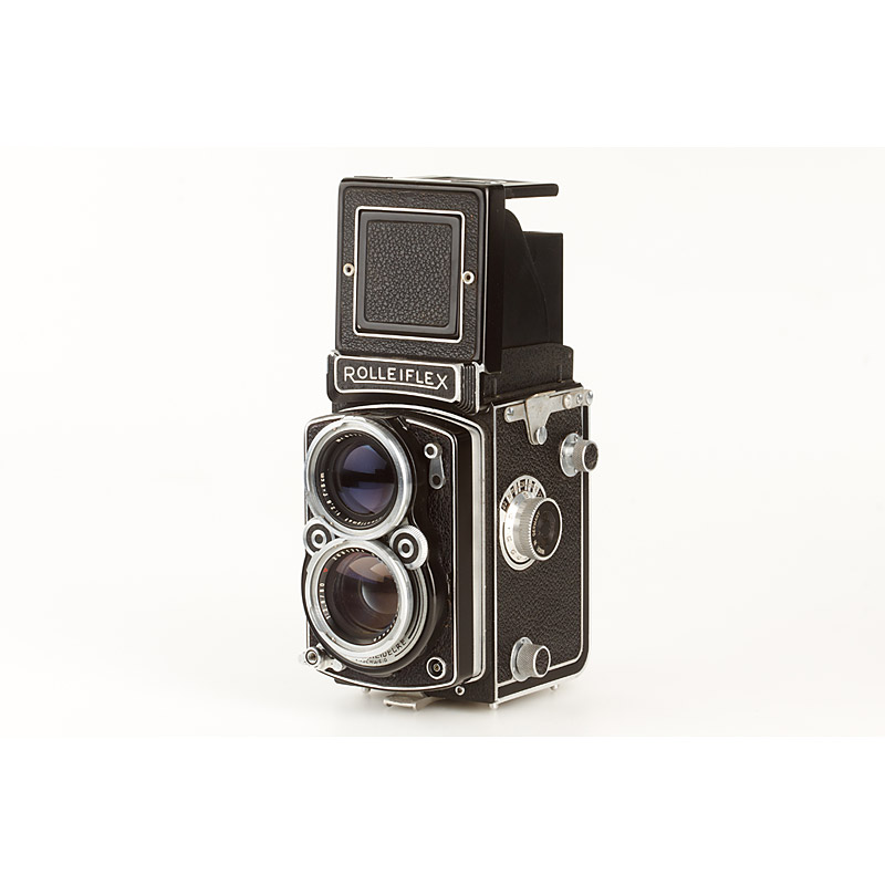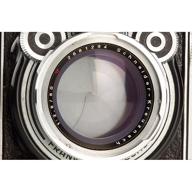 extremely rare prototype of the first Rolleiflex 2.8 camera (later called 2.8A), taking lens engraved: Schneider-Kreuznach 1:2.8/80 2681294 (no serial number, viewing lens engraved: Heidoscop-Anastigmat 1:2.8 f=8cm Nr.817855, both bayonett III lenses stand closer together than later versions, Compur-Rapid shutter in good working order, small focusing knob (similar to Rolleicord), according to Claus Prochnow the Rolleiflex 3.5 started with serial number 1100000, brown everready case with strap - this could be the very first Rolleiflex 2.8 !