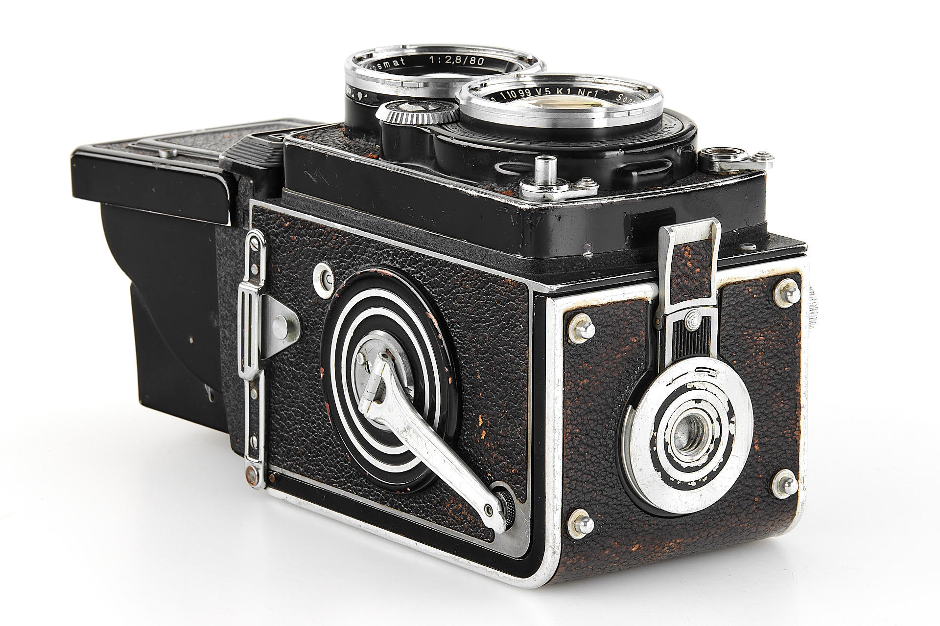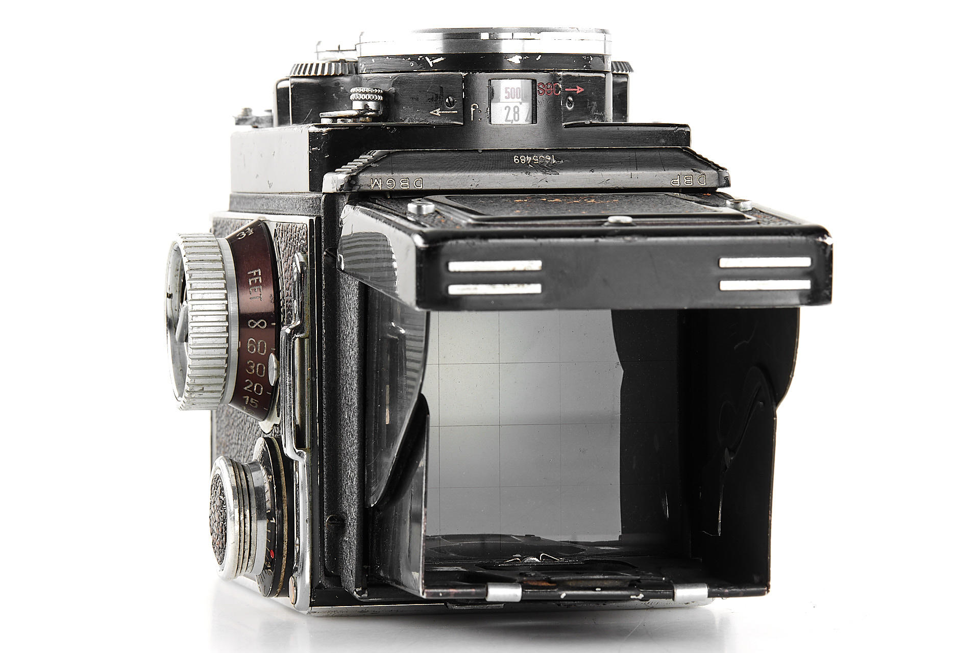 Very interesting Rolleiflex 2.8D with special Zeiss-Opton Sonnar 2.8/80mm no.11099 V5 K1 Nr1, in feet scale, missing loupe in the finder hood. The Sonnar 2.8/80mm lens can otherwise be only found on the Domnick Profi 6x6 camera prototypes.