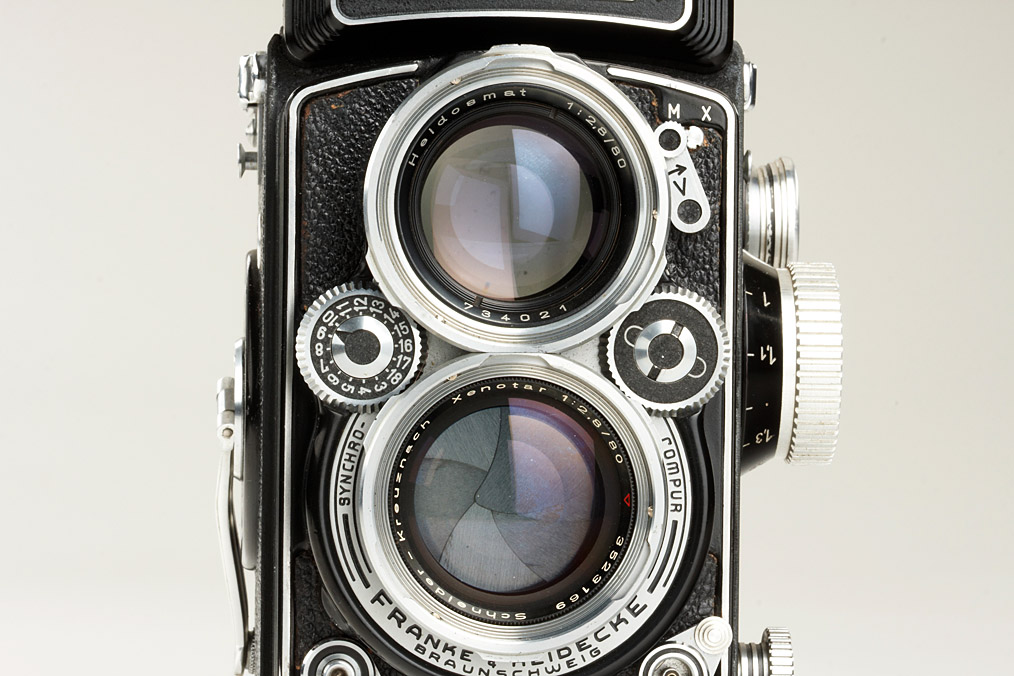 near mint, quite rare 2.8D with Xenotar 2.8/80mm no.3523169 taking lens, Heidosmat 2.8/80mm no.734021 viewing lens, cap