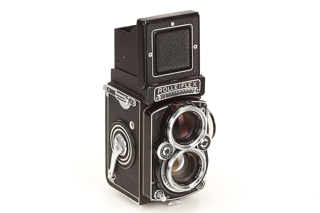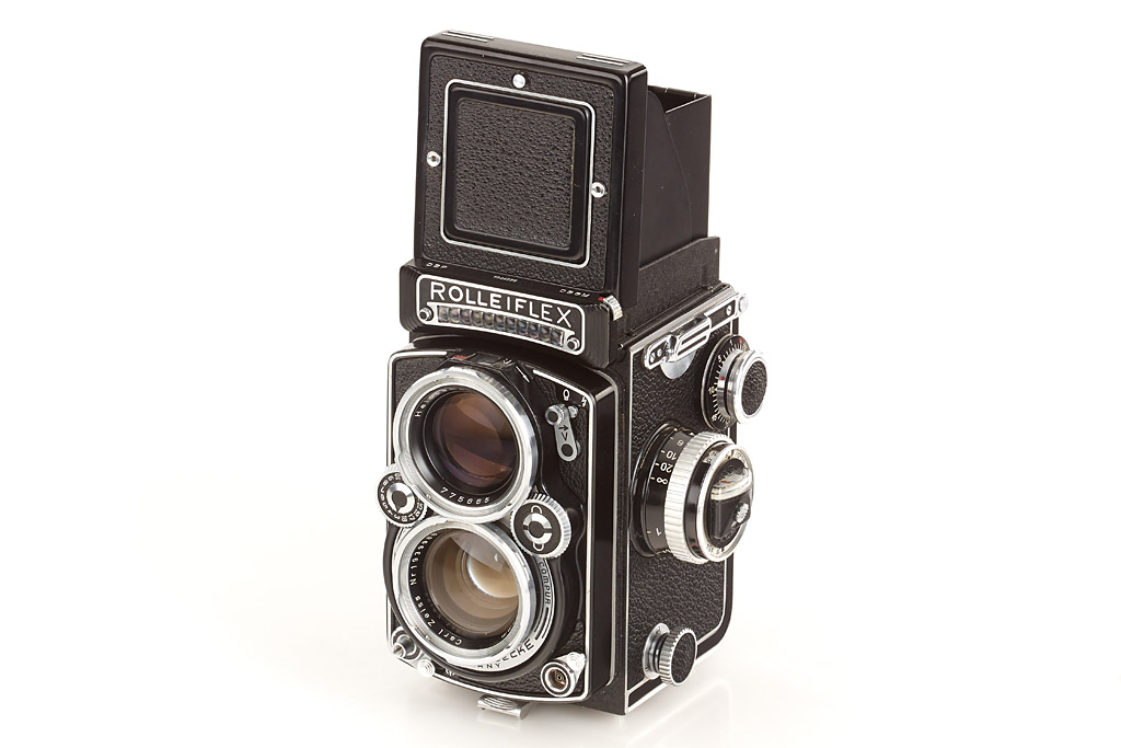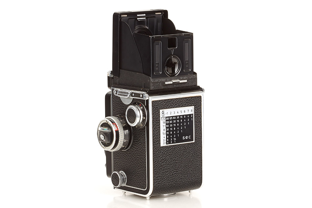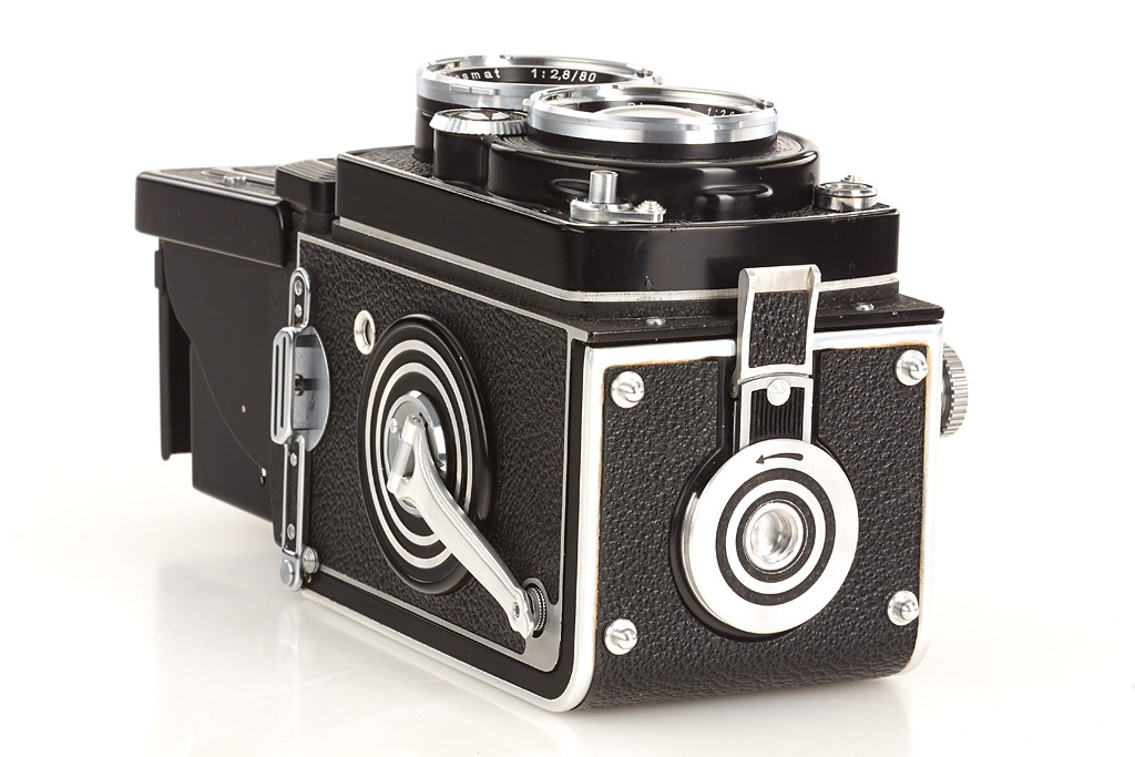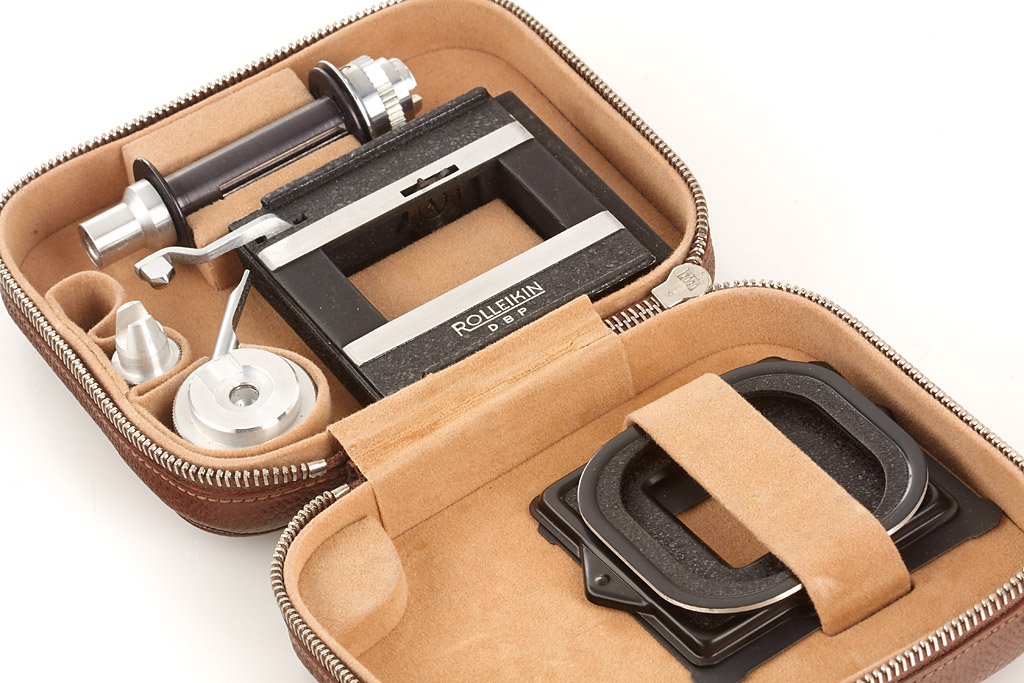metered camera in almost mint condition with Planar 2.8/80mm no.1939988 taking lens, Heidosmat 2.8/80mm no.775665 viewing lens (cap), strap, everready case, meter protector, focusing hood, metal hood (keeper), Rolleinar 2&3 (keeper), UV & green filter (keeper), Rolleikin 2.8 set in case, Rolleifix tripod adapter, instructions and brochures