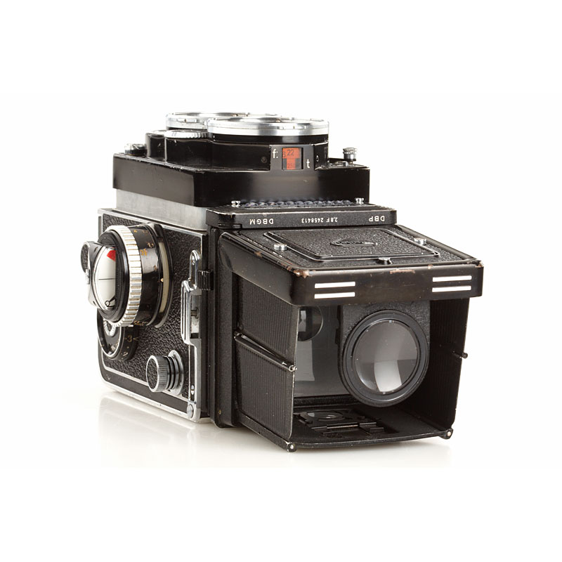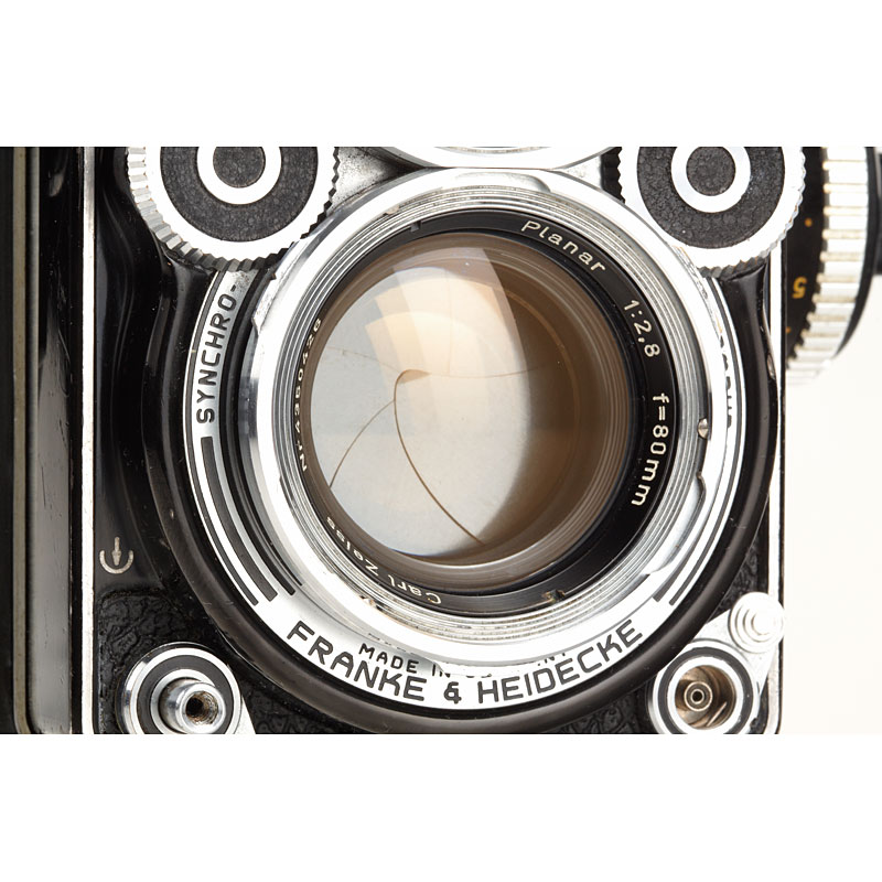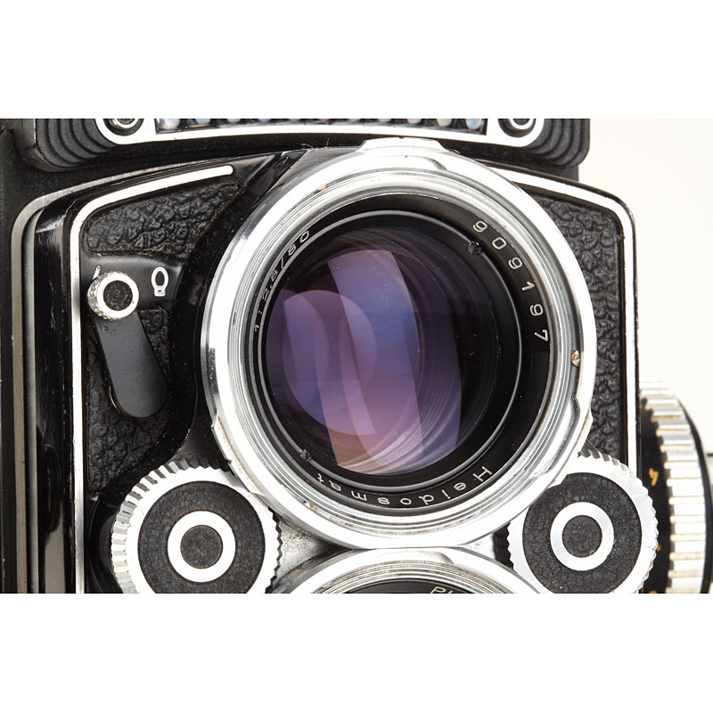 perfect user camera with Planar 2.8/80mm no.350426 taking lens and Heidosmat 2.8/80mm no.909197 viewing lens, prism finder in case and Tiffen hood