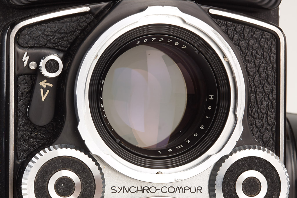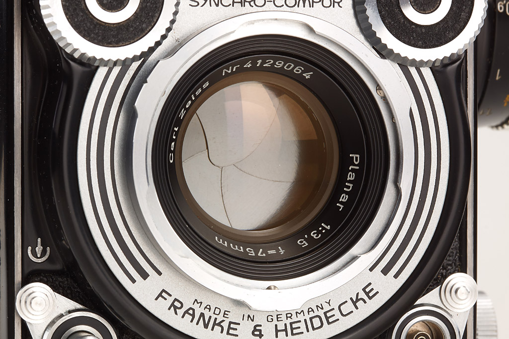 metered camera in like new condition with Planar 3.5/75mm no.4129064 (cap, everready case with meter protector, strap), finder hood and maker's box