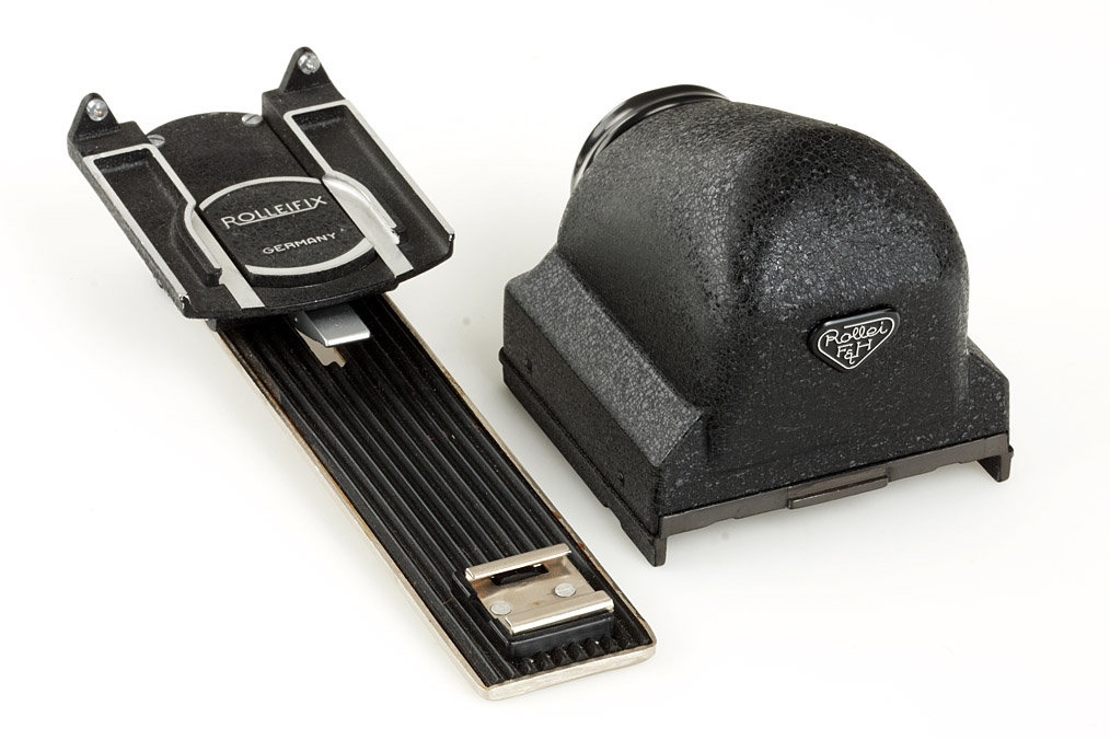 near mint metered 3.5F with Xenotar 3.5/75mm no.6110524 taking lens, Heidosmat 2.8/75mm no.619370 viewing lens, cap, strap, case, hood, prism finder in case, Rolleinar 1 & 2, UV filter, yellow filter I, Rolleifix, flash bracket, cable release, instructions and a book (Das Rolleiflex-Buch, Dr.W.Heering)