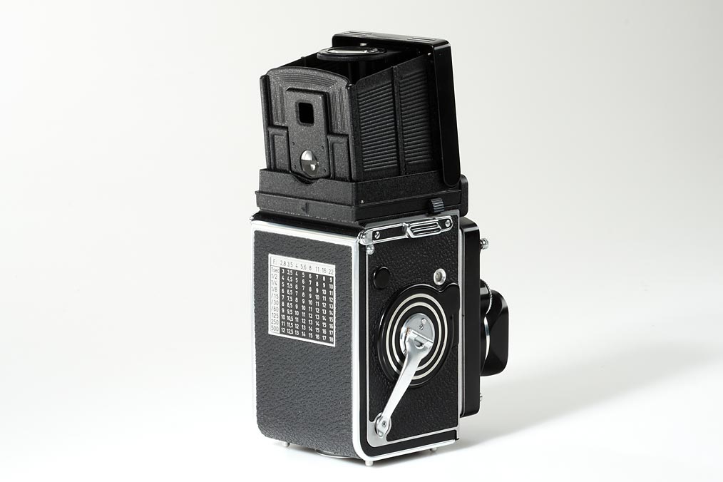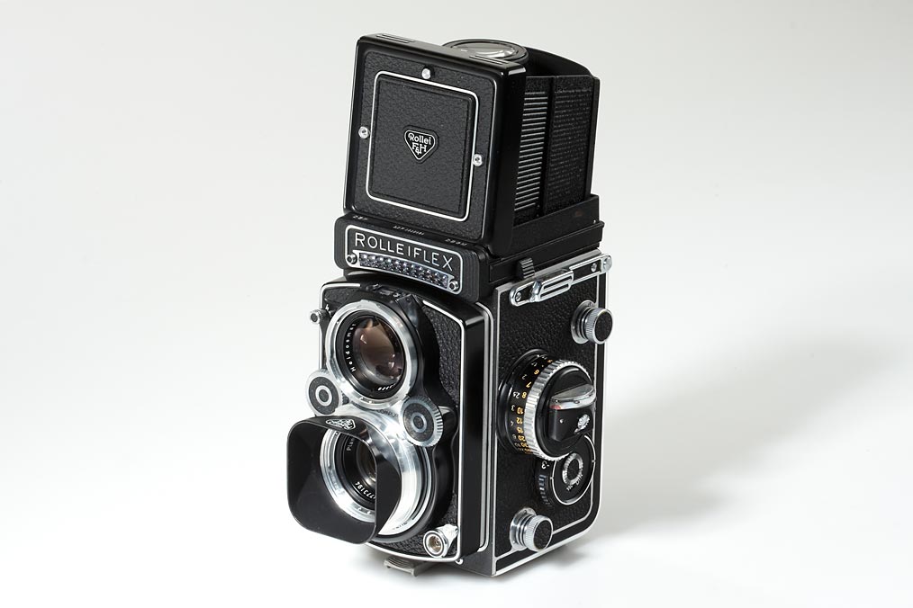 late 3rd model 3.5F with exposure meter, in near mint and good working order, Planar 3.5/75mm no.4773194 taking lens, Heidosmat 2.8/75mm no.4763329 viewing lens, cap, metal hood, 8 various filters in maker's boxes, instructions