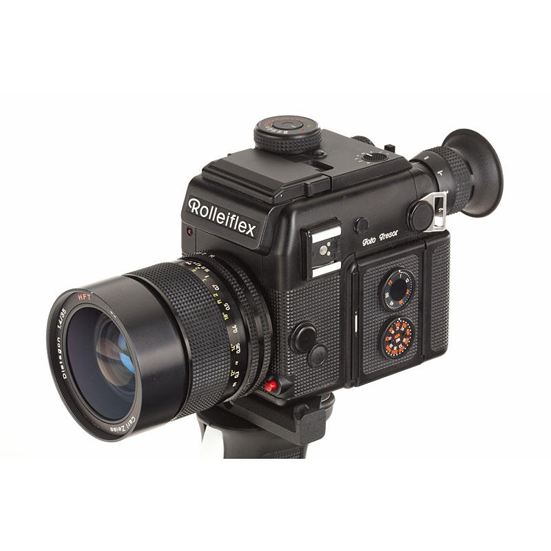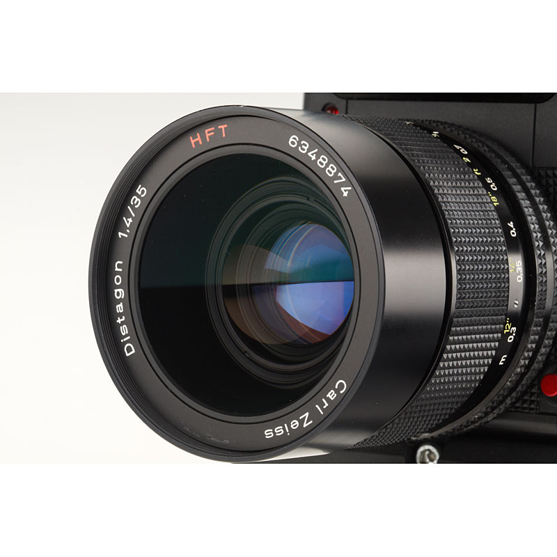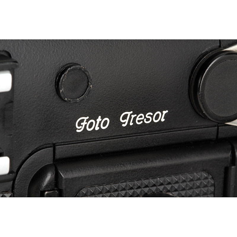clean body, engraved 'Foto Tresor' on one side, with 4 magazines (one with maker's box), HFT Distagon 1.4/35mm no.6348874 (cap, Filter), HFT Planar 1.4/85mm no.6346480 (caps, Filter), charger, strap and pistol grip (maker's box)