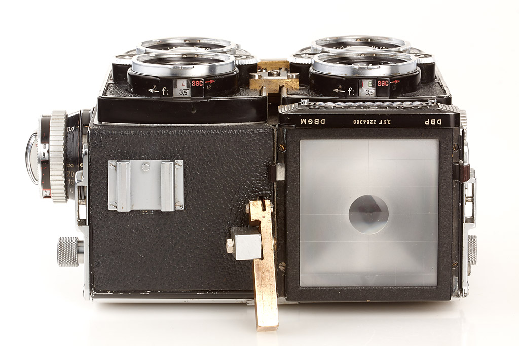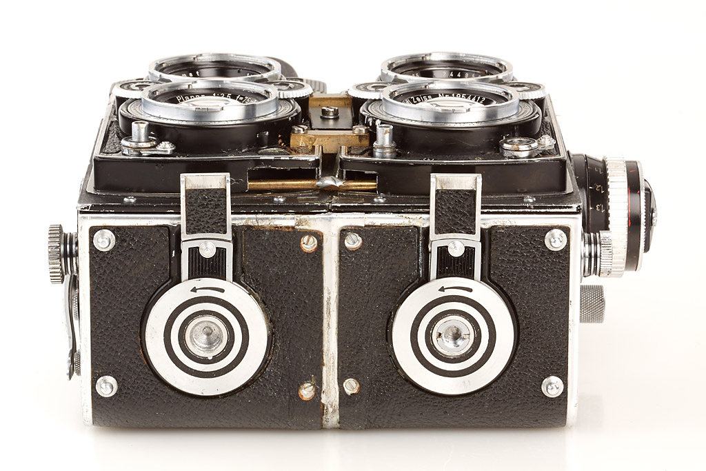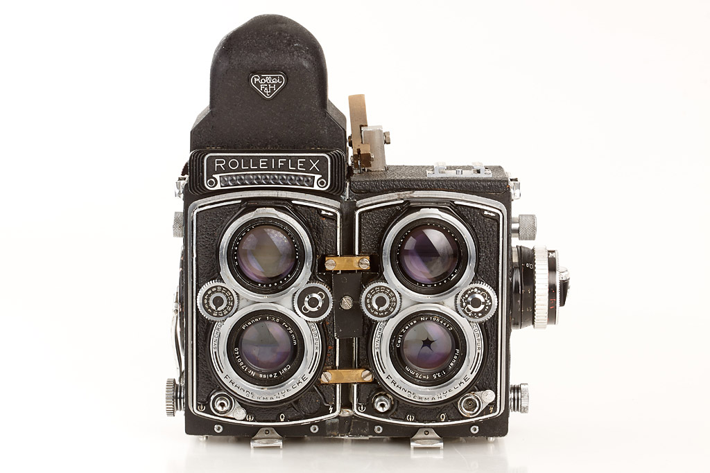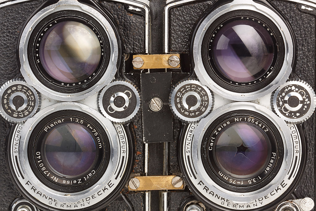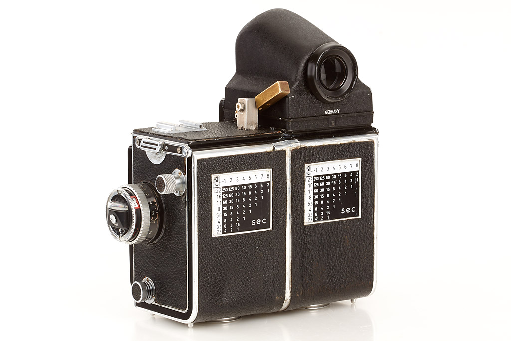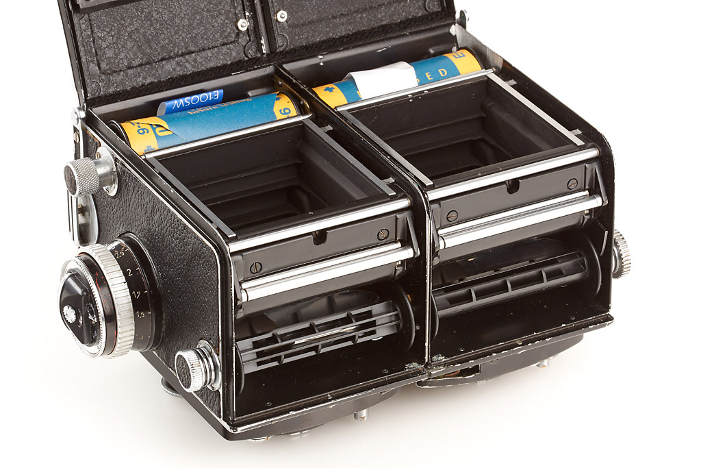 Custom made Rolleiflex 3.5F stereo from the same source as the original Rolleiflex Stereo prototype offered in our previous auction (camera for Hans Hass). This camera is equipped with a pair of Planar 3.5/75mm lenses nos.1780140 and 1954412. A very nice piece for every Rollei collection.