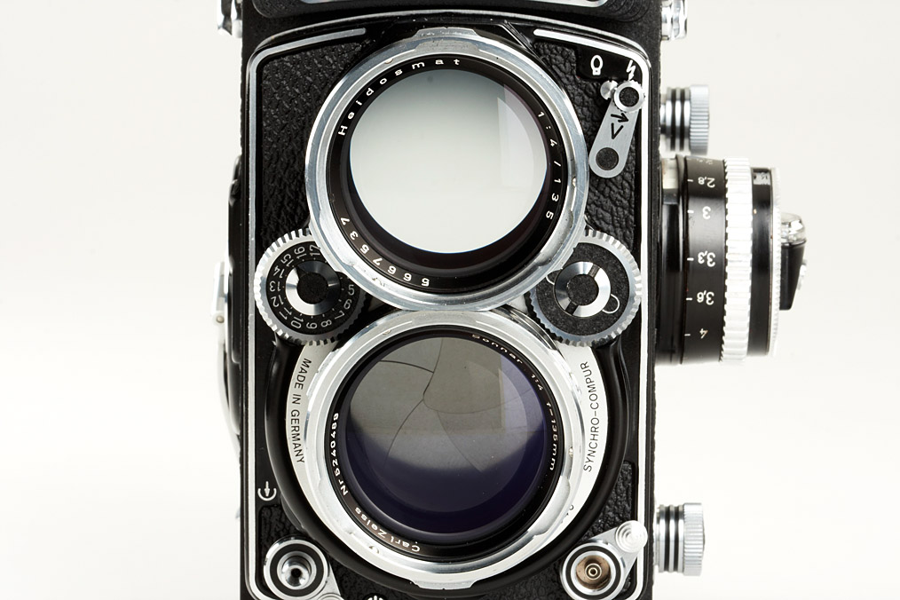 late type with exposure meter, very fine cosmetically and in perfect working condition, clean Sonnar 4/135mm no.5240489, viewing lens no.5667537, cap, case, strap, hood