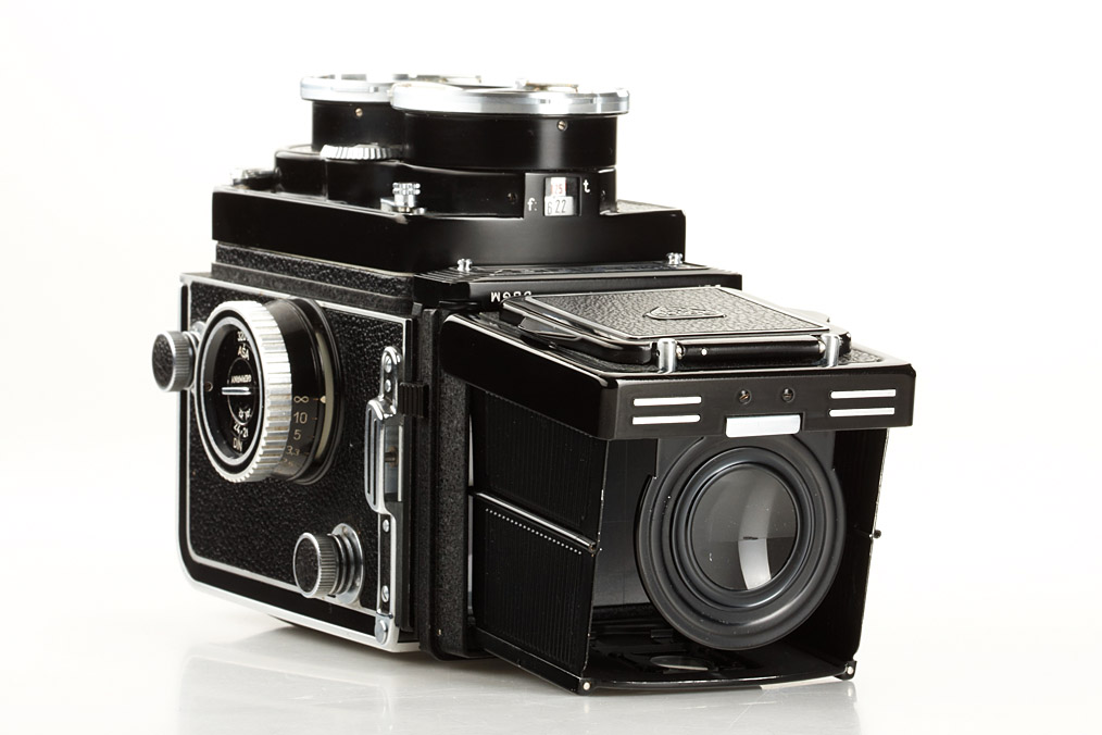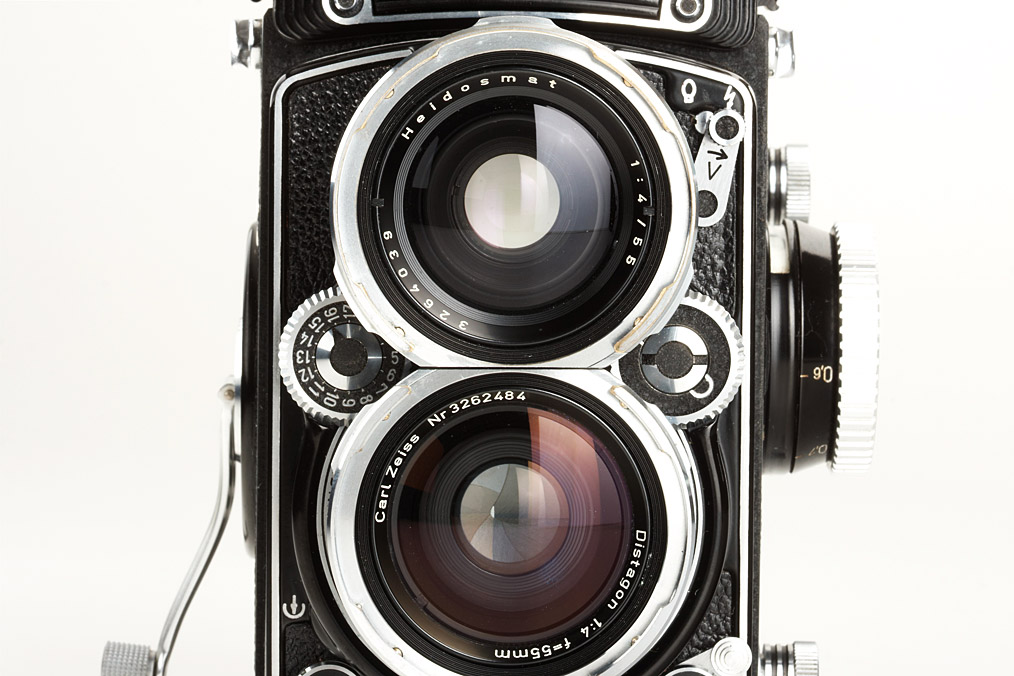 mint Wide Angle Rolleiflex in perfect working condition, Distagon 4/55mm no.3262484 taking lens, Heidosmat 4/55mm no.3264039 viewing lens, rare lens cap