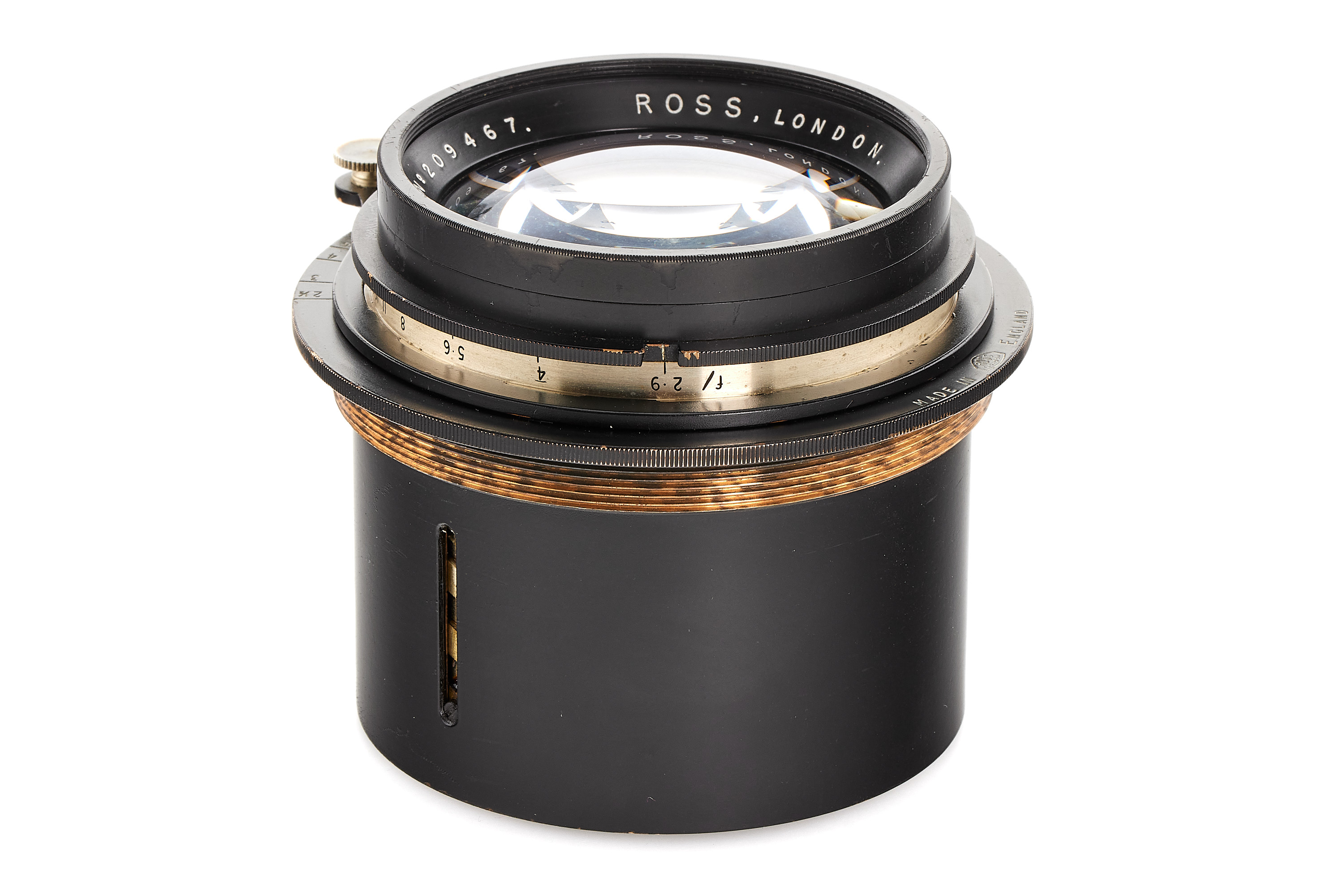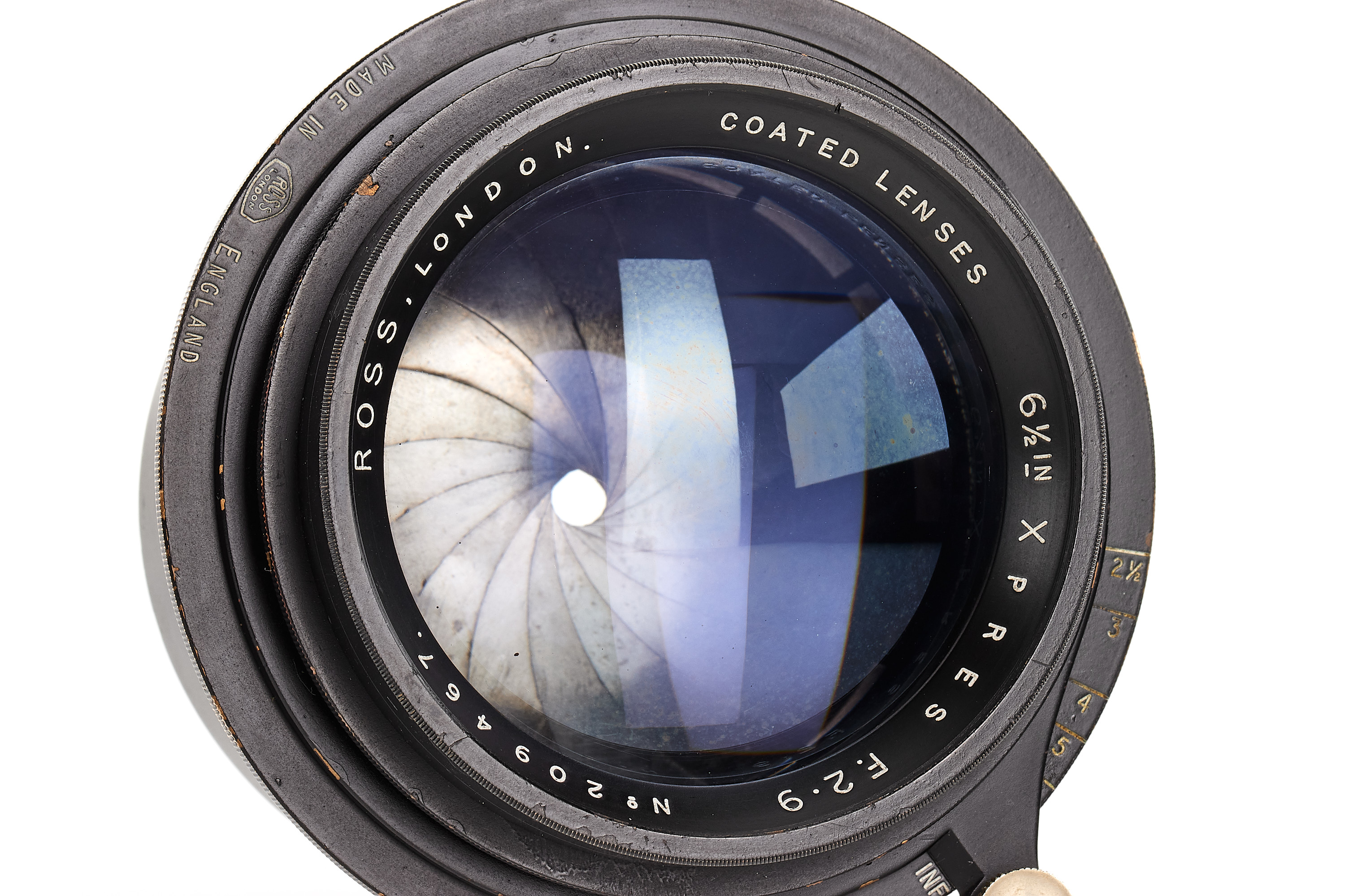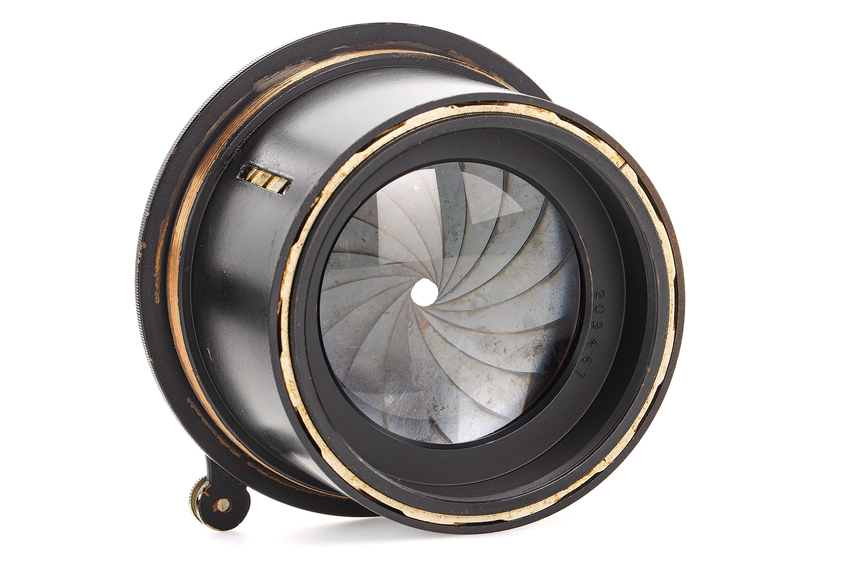 Rare fast lens in heavy mount, covering 4x5", yards scale, in very good condition, good optics only showing few light defects in the early coating, with front lens protection.