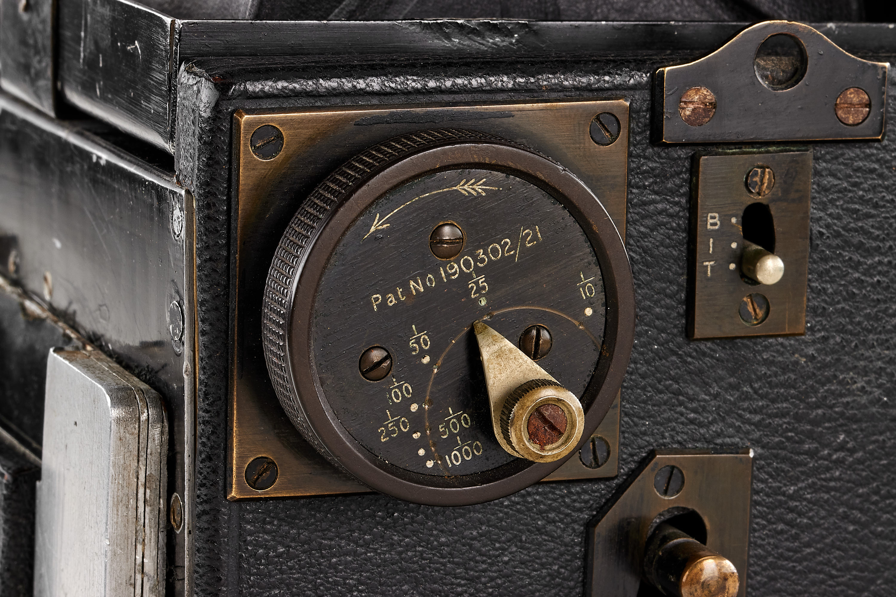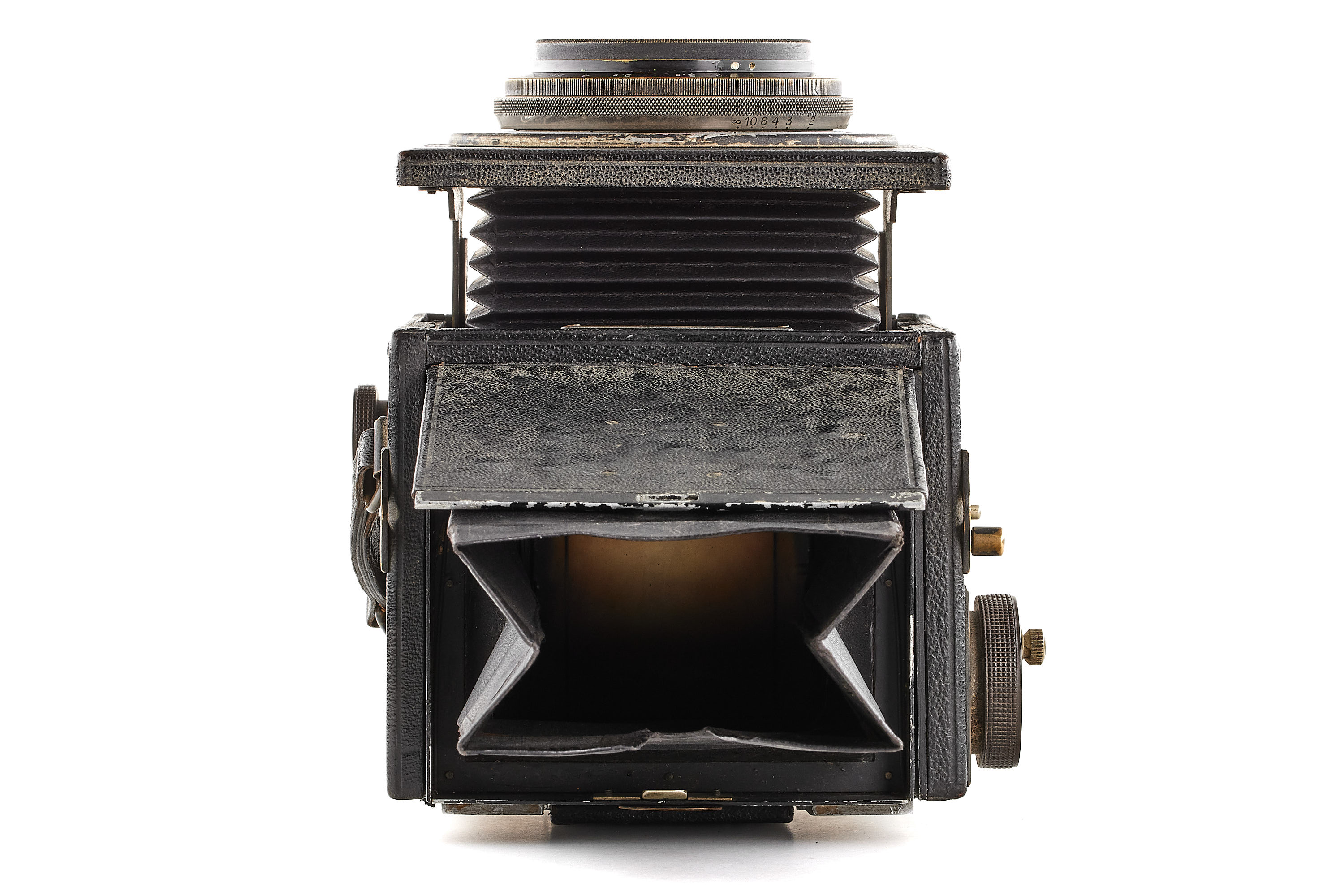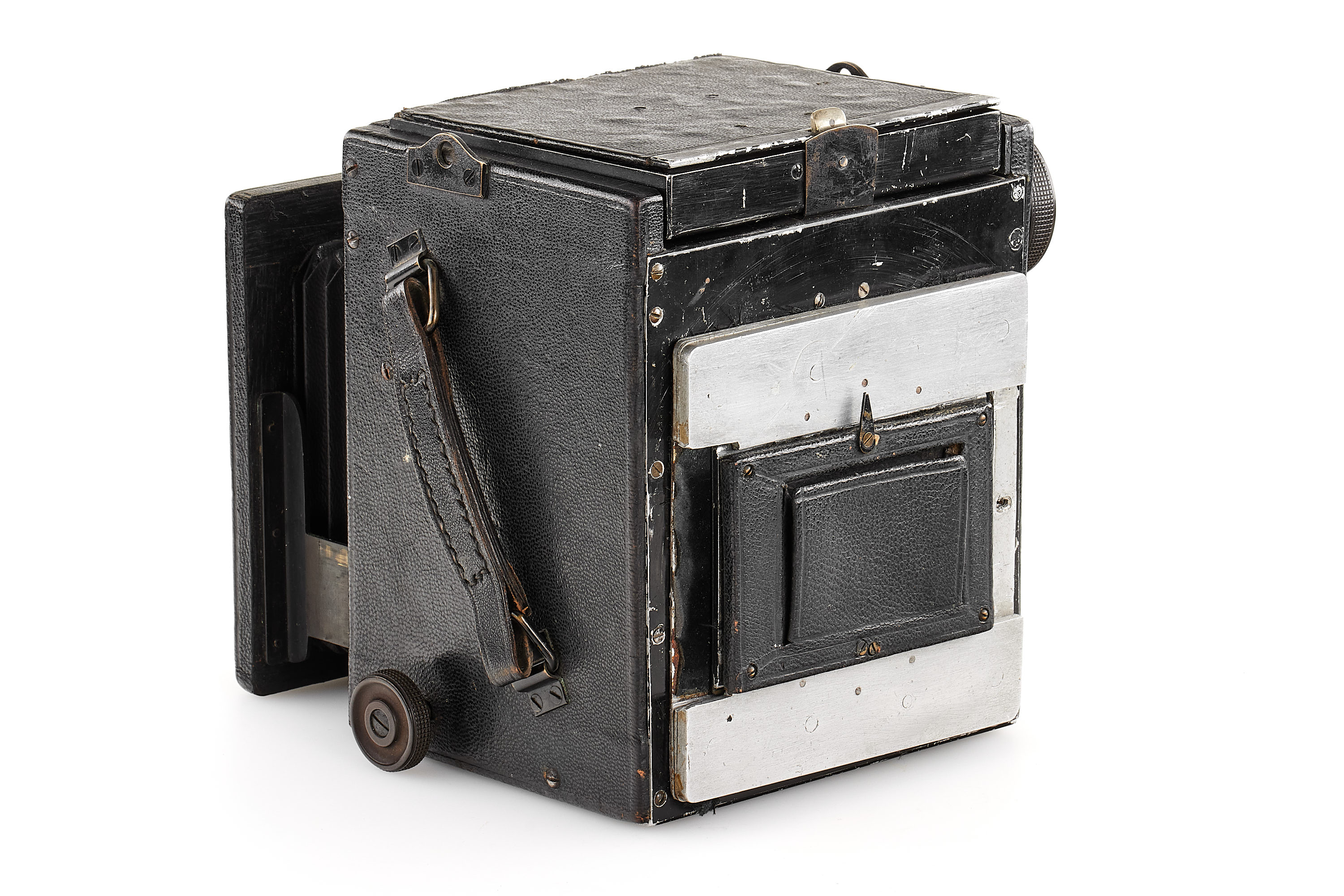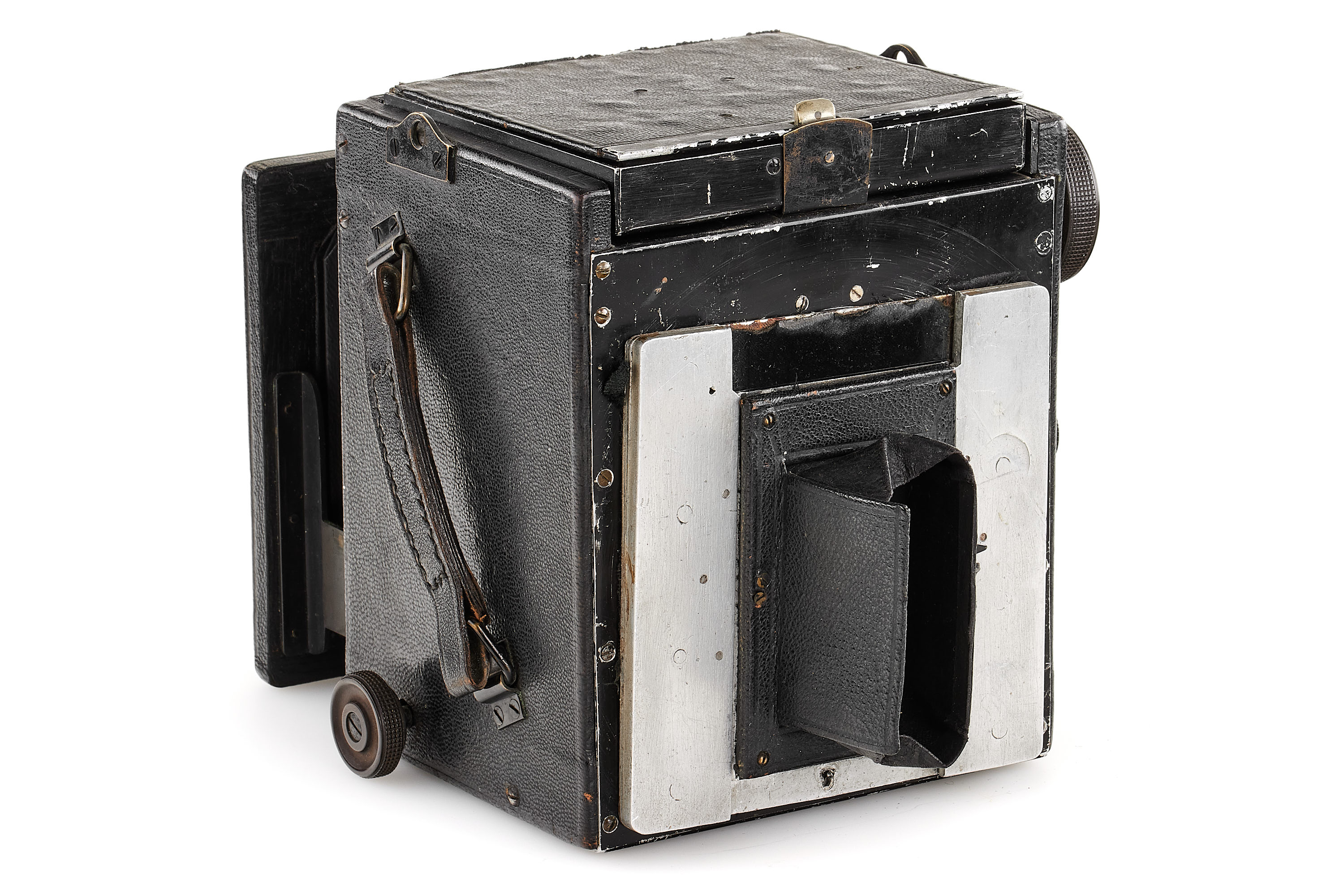Very rare reflex camera for 4.5x6cm with focal plane shutter to 1/1000 sec., made by Roth, an English importer of Mentor and Meyer cameras and lenses, in used condition, the shutter needs attention, modified with a rotating back, together with fast, rare sought-after Meyer Goerlitz Plasmat 2/4" no.292022 with good optics only showing some cleaning marks.