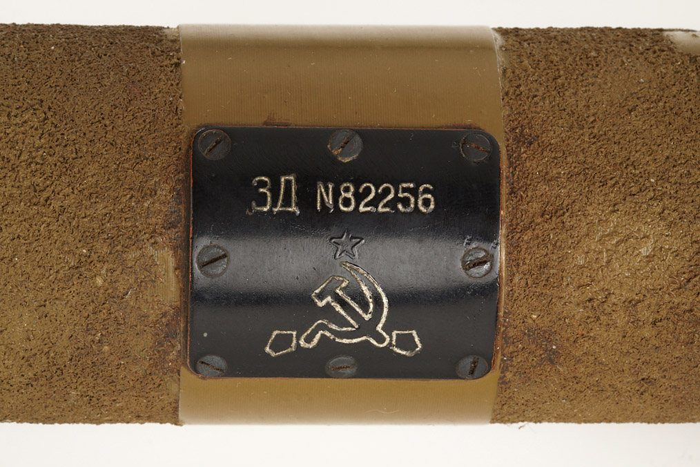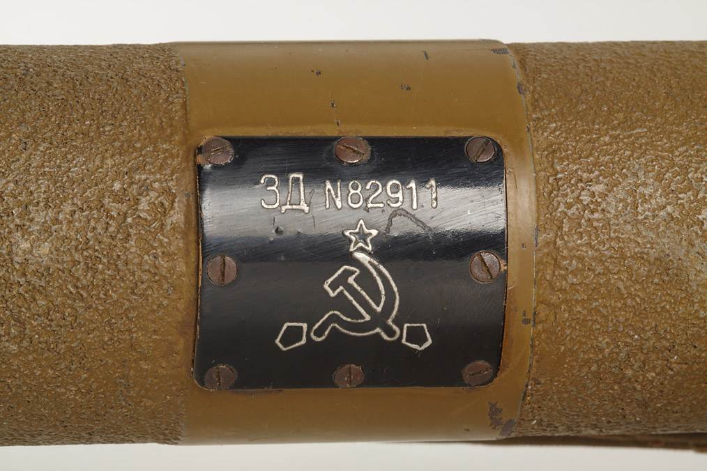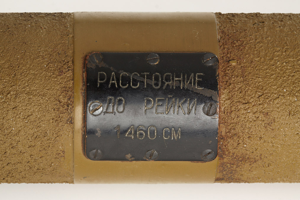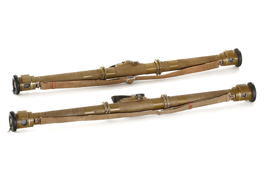 a pair of two large (111cm) WWII military rangefinders for the Red Army, marked 'No.82911' and 'No.82256' with hammer and sickle and 'Do Reiki 1590cm', both with accessories in fitted wooden transportation box - ex Barringer collection