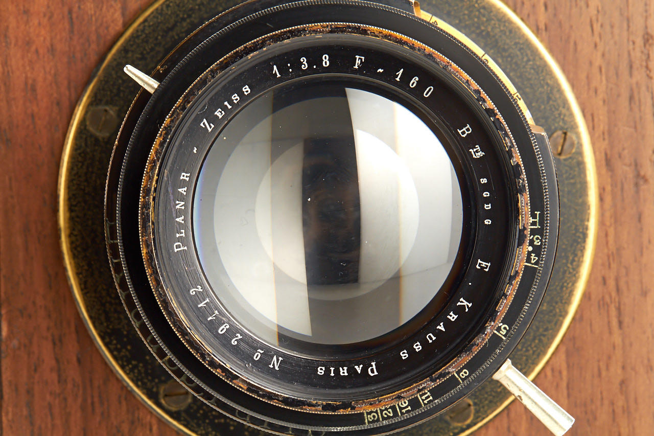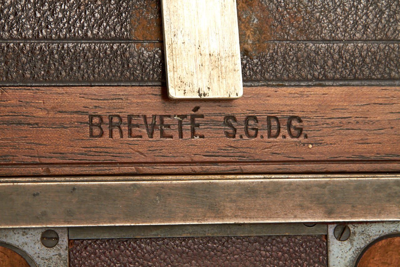 very rare 9x12cm camera, with Krauss Paris / Zeiss Planar 3.8/160mm no.29112 (a very early Planar lens) in helical focusing mount, it is Sigriste no.33 from the first year of production (the version with Planar lens was the most expensive model), in beautiful original condition