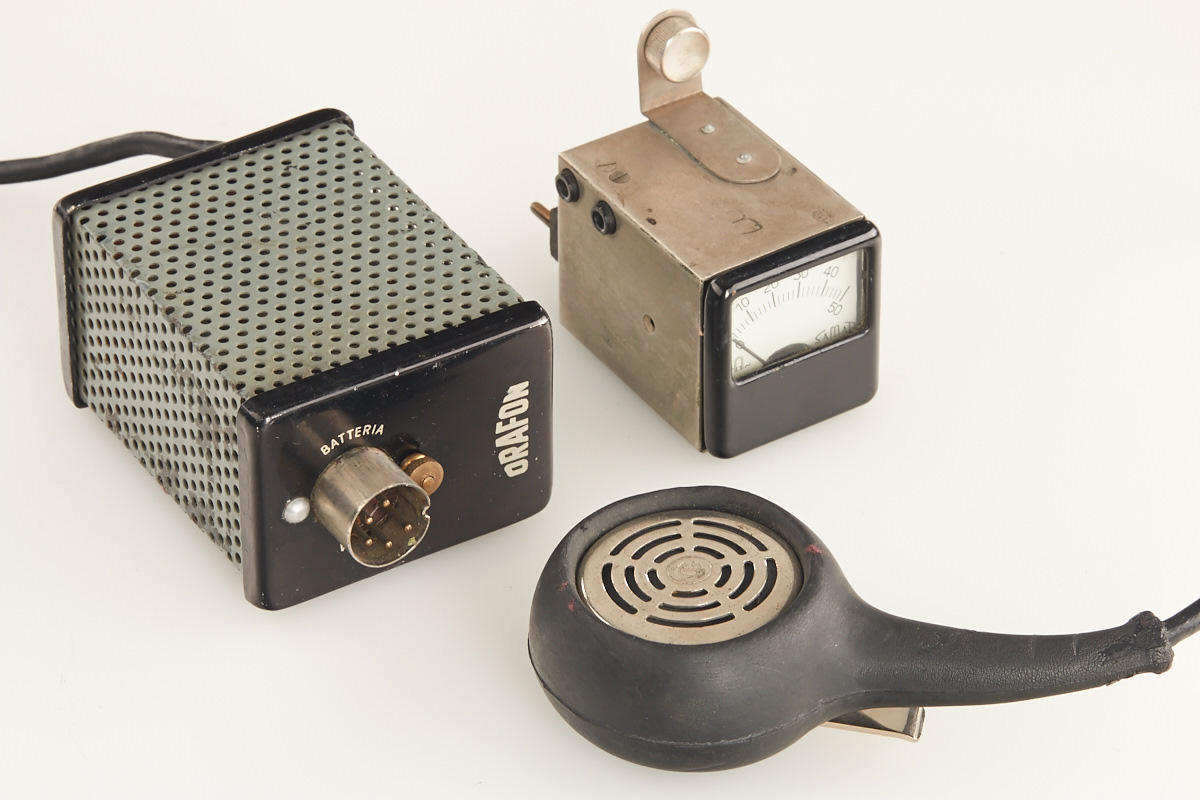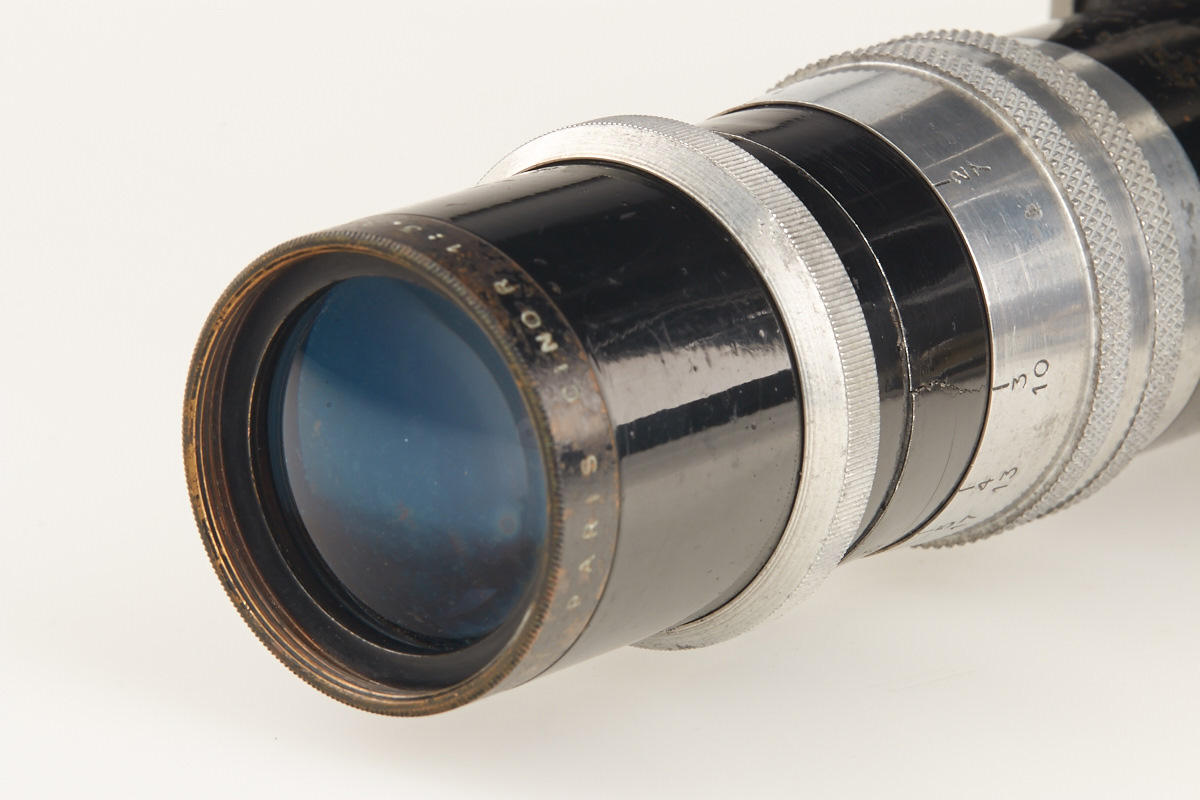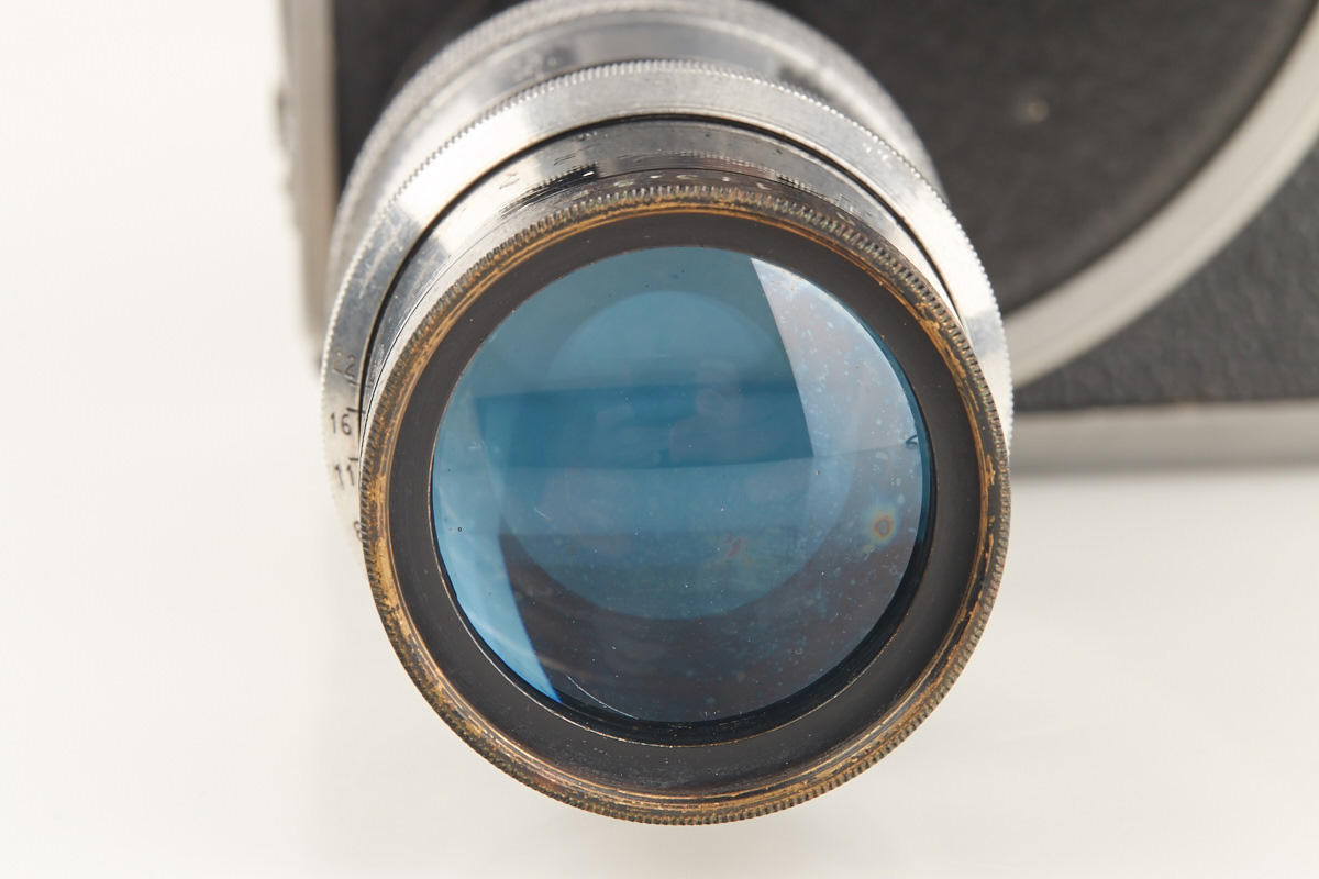 very rare Italian 16mm sound film camera in very fine original condition with 3 lenses (Wollensak 1.9/1", Kern Yvar 2.5/75mm AR no.63119 and Som Berthiot Cinor 3.5/100mm no.295732 with hood), no type or serial umber engraved (probably a prototype), magazine, hand grip, speaker and earphones and AC adapter, all in fitted outfit case