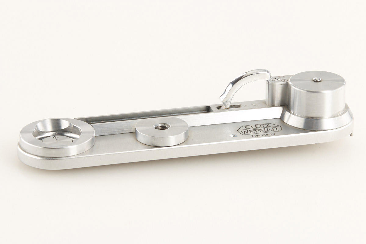rare chrome rapid winder with small pin in mint condition, 'Germany' and 'open close' engraved, with original red maker's box