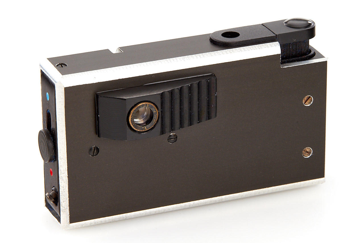developed for Secret Service, Rowenta lighter with 3-element Steinheil lens 2.5/12.5mm for 7 round exposures, mint with maker's box, film cassette and original manual, very rare