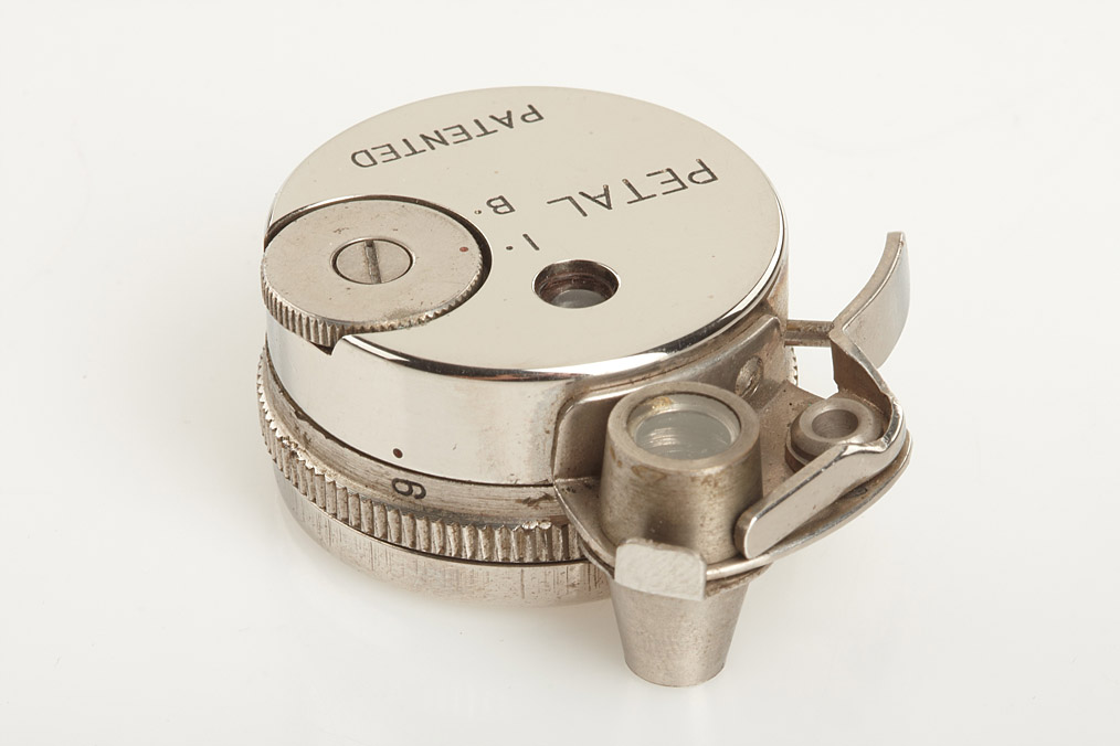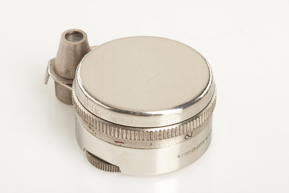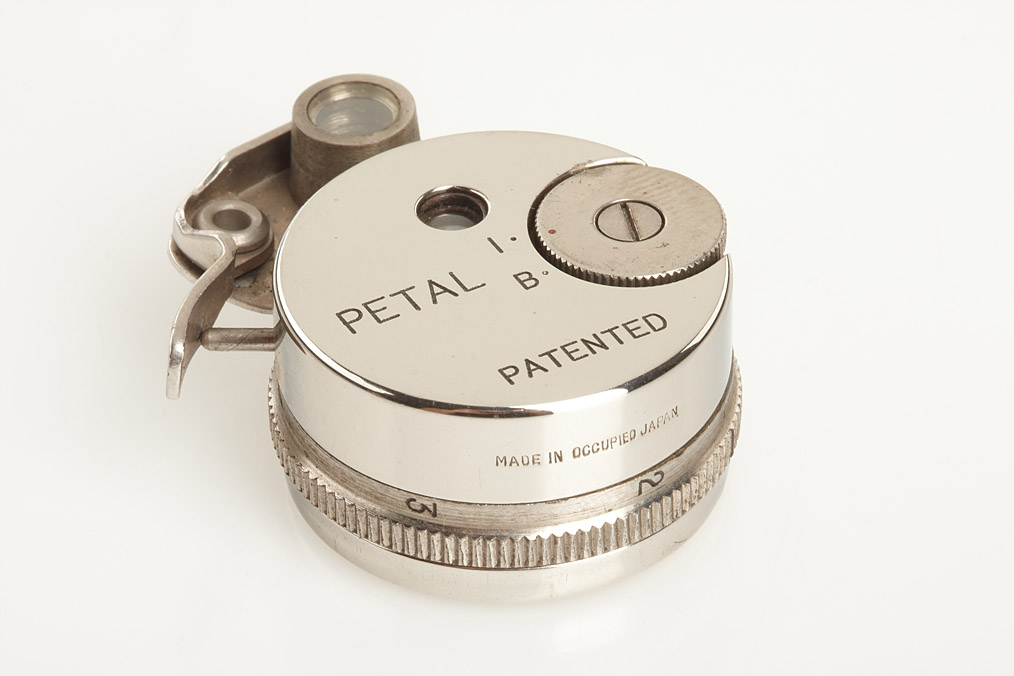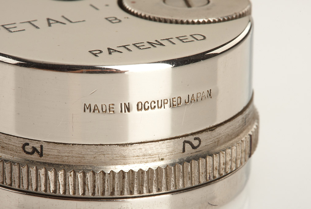 round body (engraved: MADE IN OCCUPIED JAPAN) for 6 exposures, in very fine condition with balsawood box, 2 original films