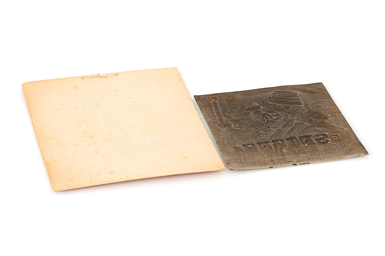 Rare advertising sign for the short-lived German company Satrap in the 1920-30s, 22x27cm embossed metal plate, in original condition, showing some marks of corrosion, together with a very nice advertising sign, 13x15cm black and white picture of a dog, glued on a 26.5x38.5cm printed cardboard.