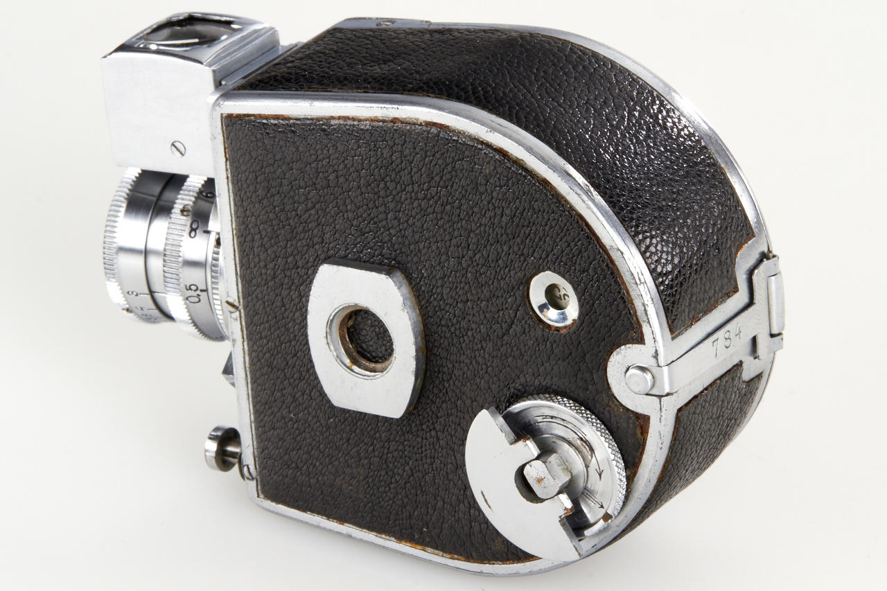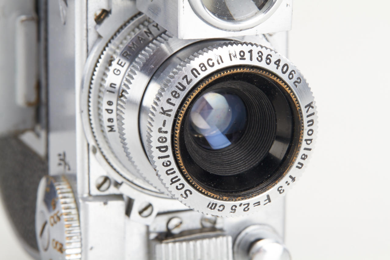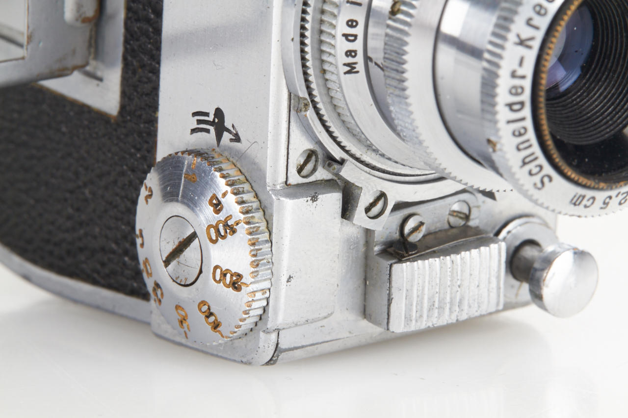 rare subminiature with clockwork motor, for exposures 13x18mm on unperforated film, these cameras were used by the German secret service in WW2, very fine and working condition with Schneider Kinoplan 3/25mm