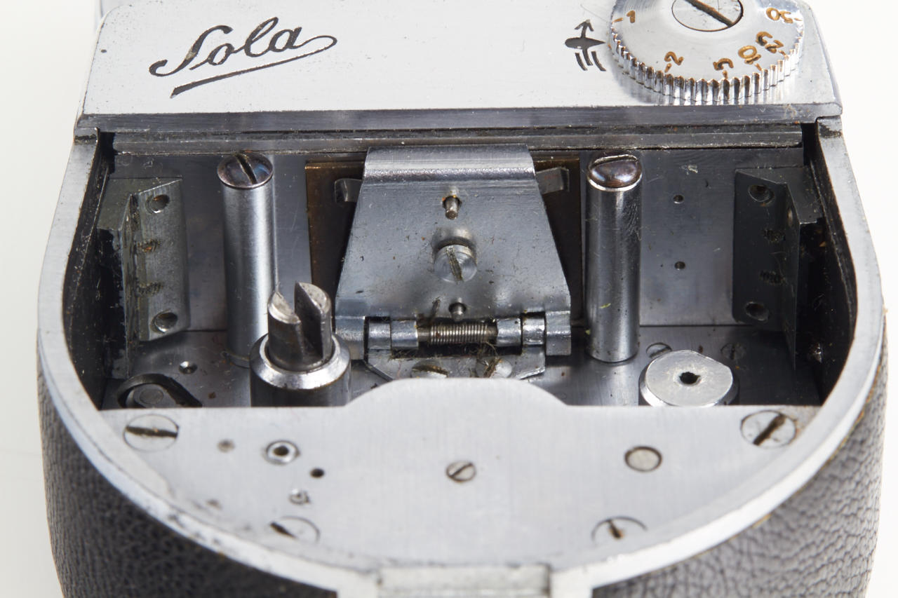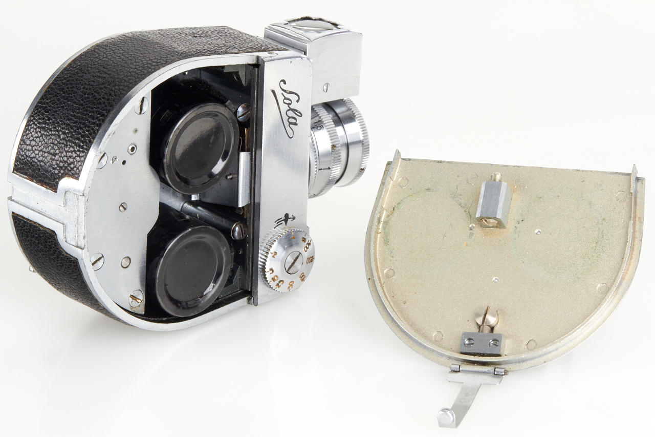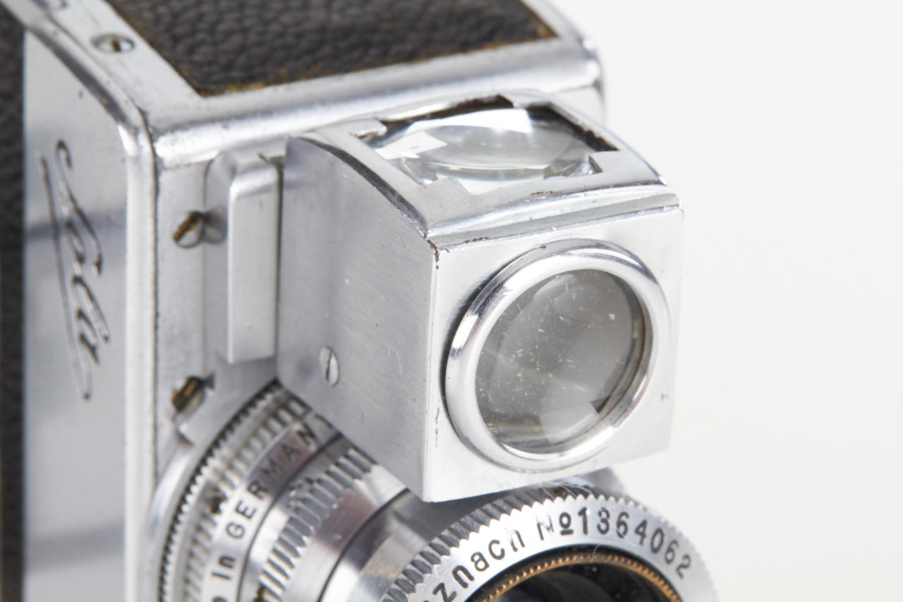 rare subminiature with clockwork motor, for exposures 13x18mm on unperforated film, these cameras were used by the German secret service in WW2, very fine and working condition with Schneider Kinoplan 3/25mm