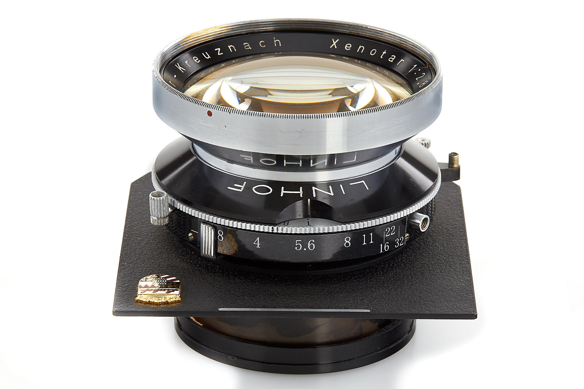 sought-after fast large format lens in excellent condition, very good, clean optics (only minimal hairline marks), mounted in Linhof/Compur shutter, on a Linhof lens board