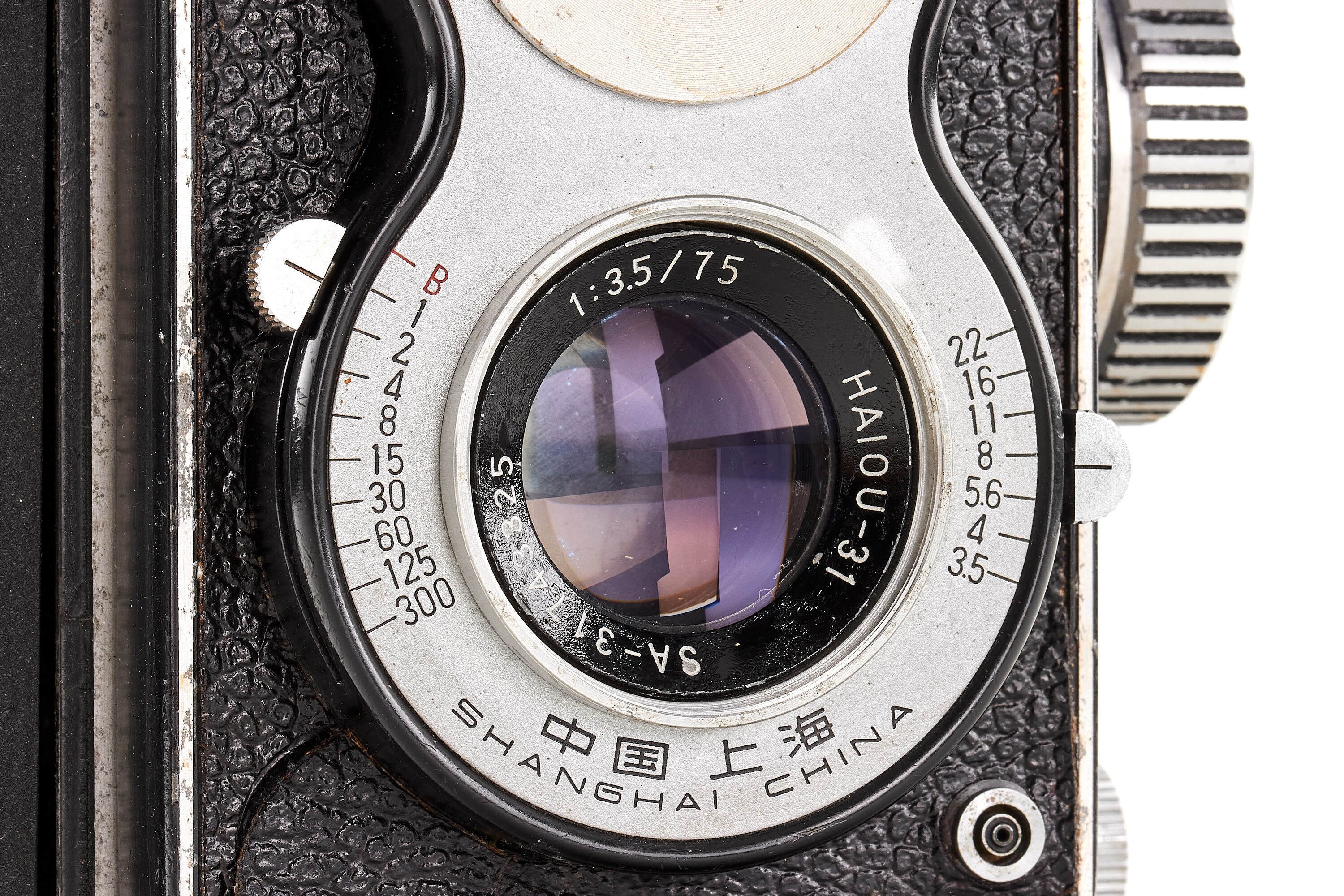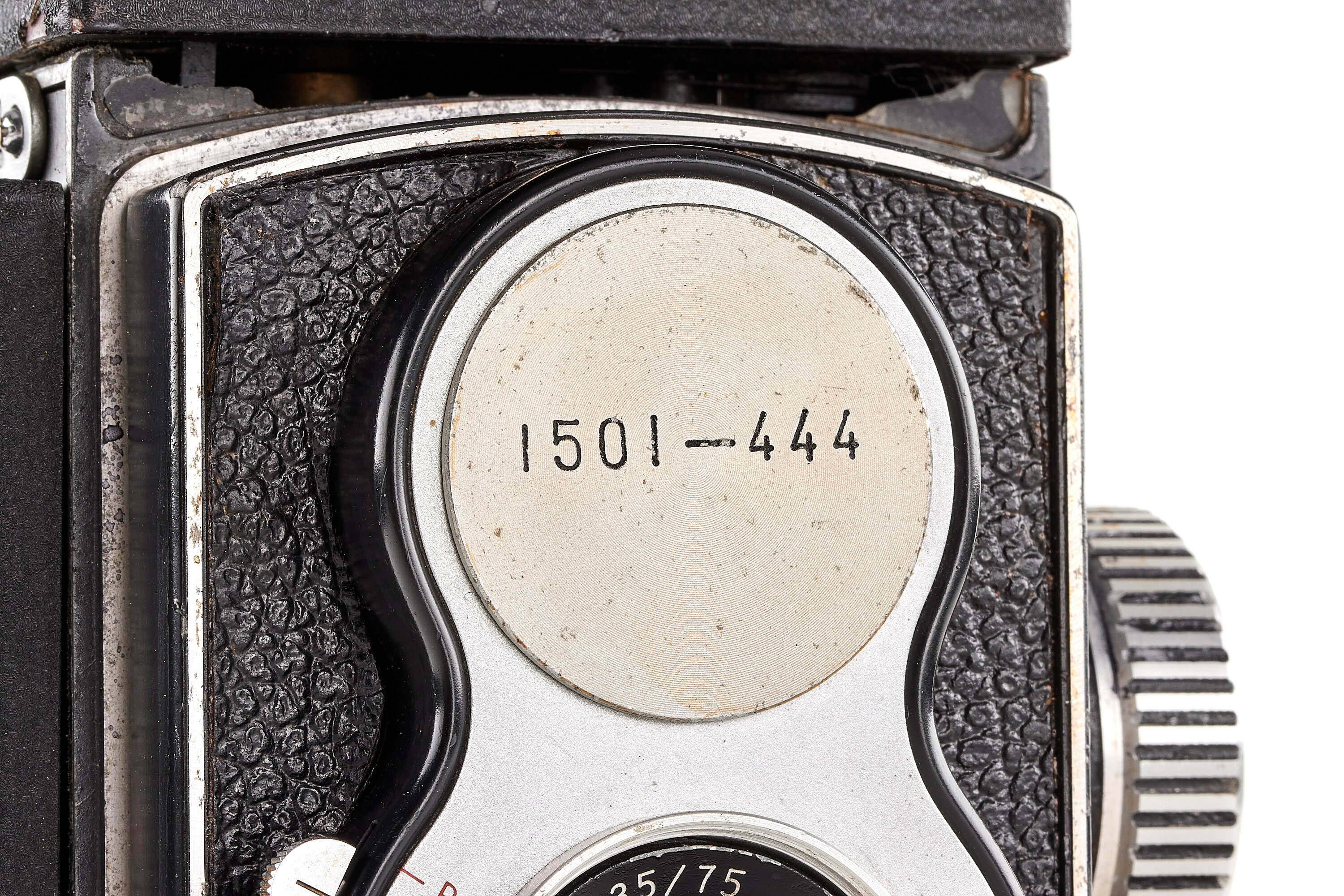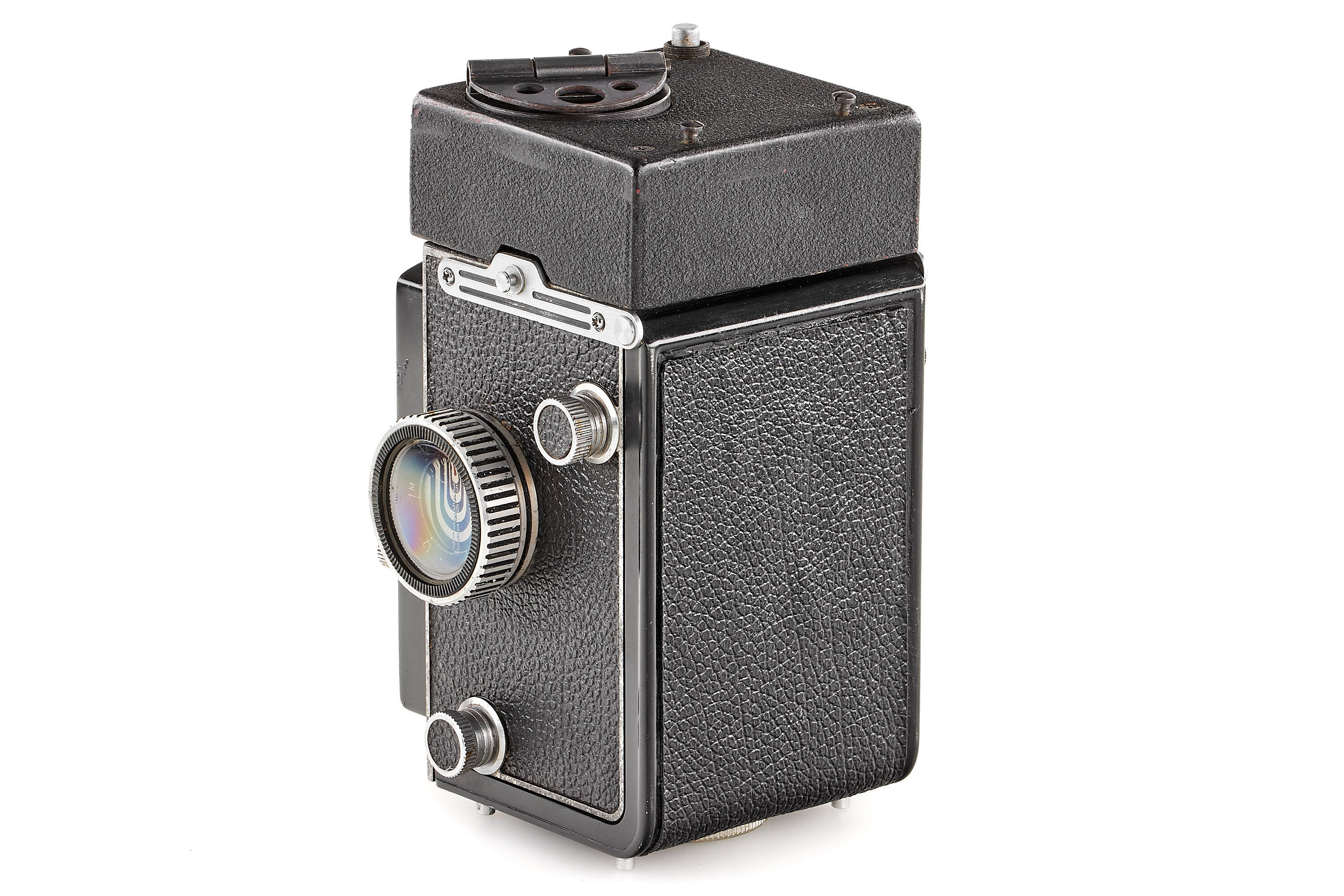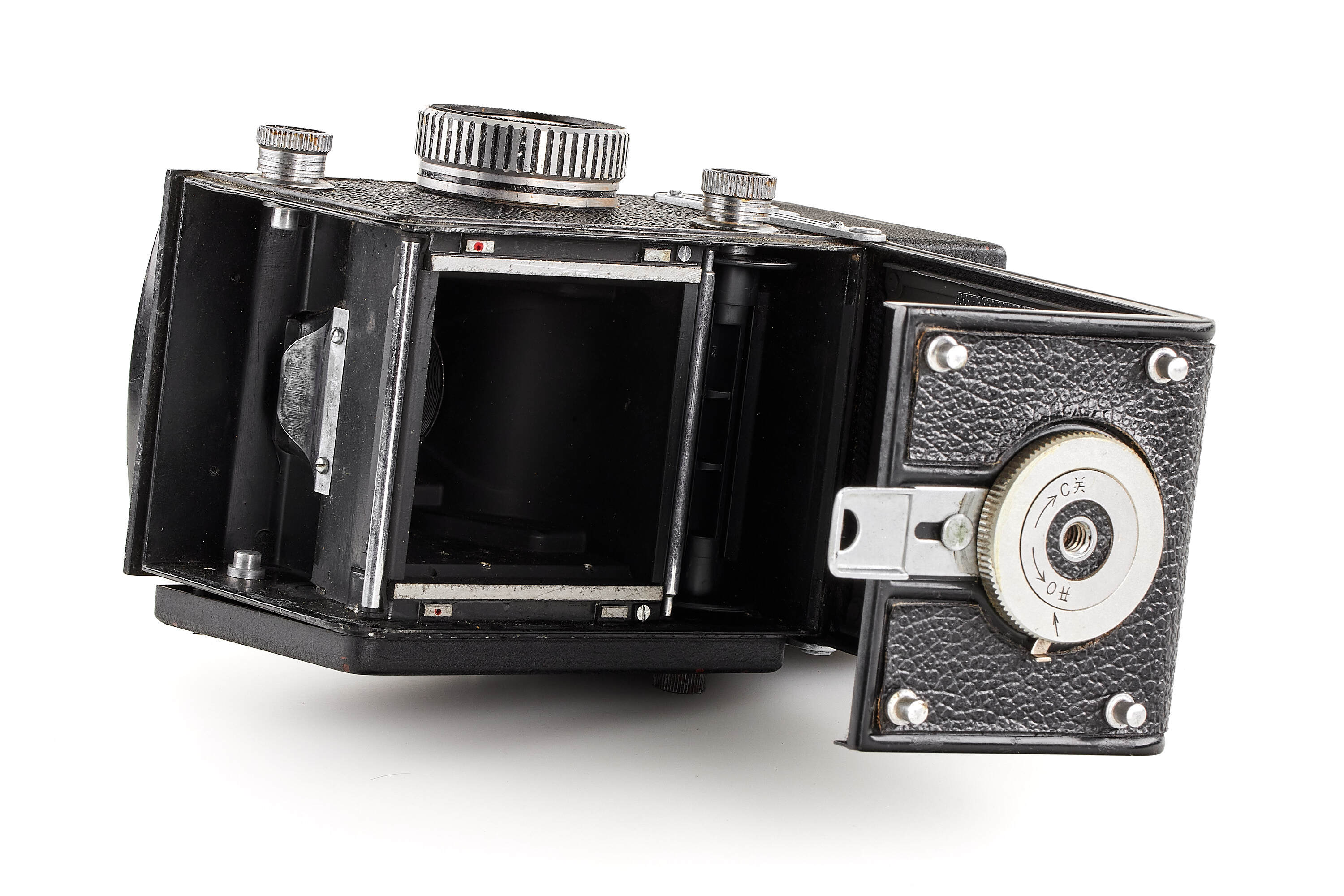 We offer Camera No. 444, mechanically in full working order; the taking lens has been removed. A comparable example, No. 029, is illustrated on page 318 of Chinese Camera Collection & Appreciation and noted as part of a special government project. Production figures for the Model 1501 remain undocumented.
