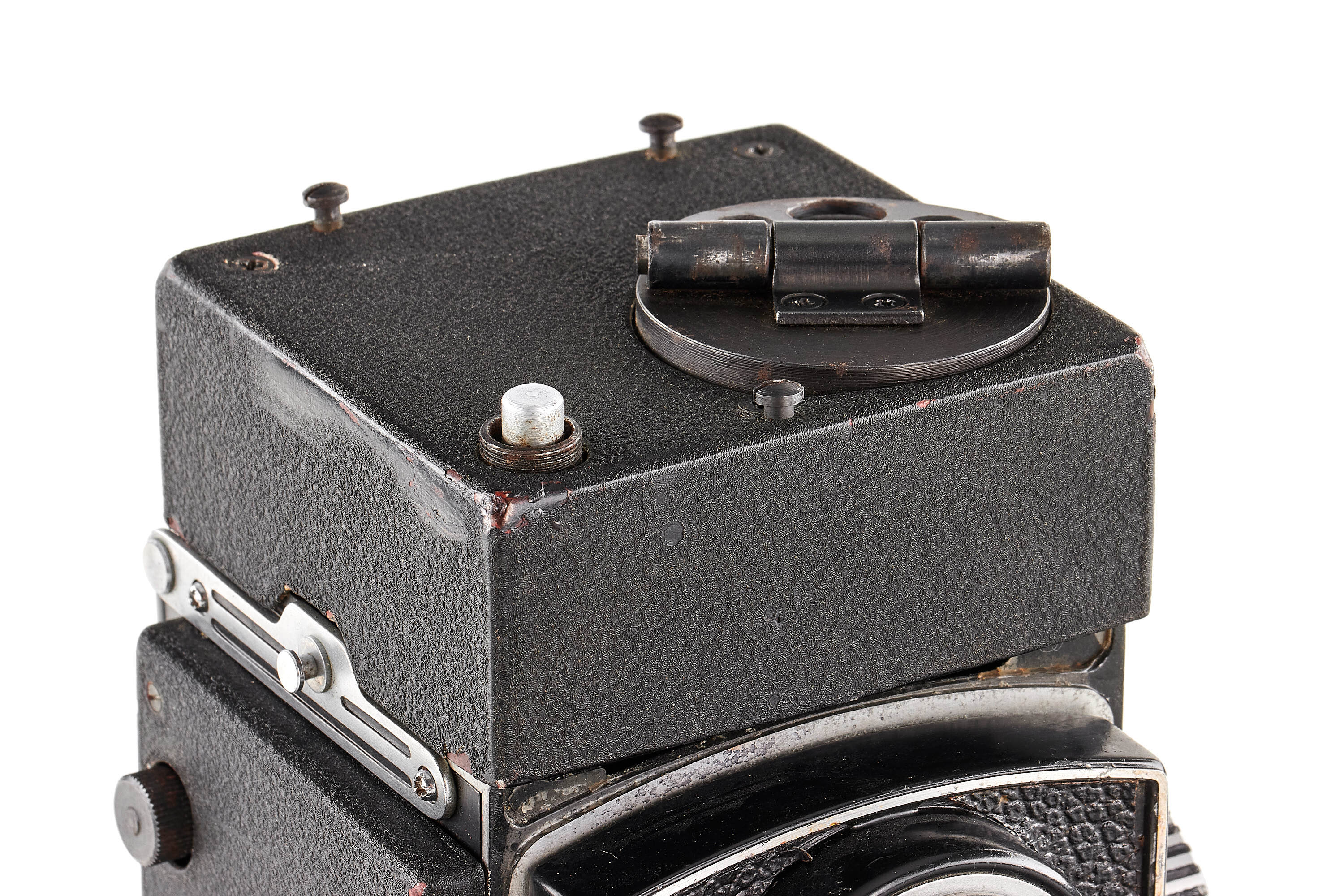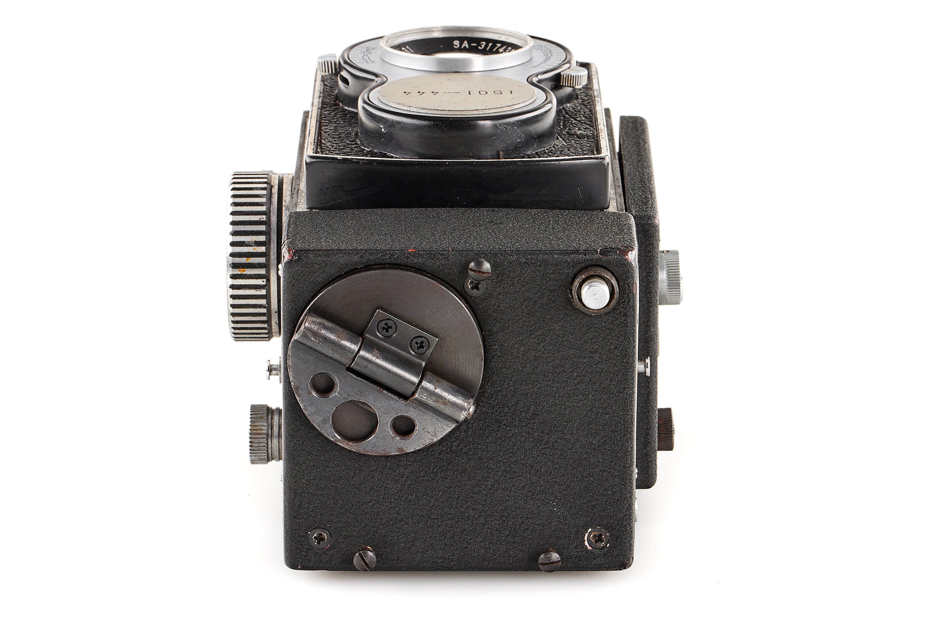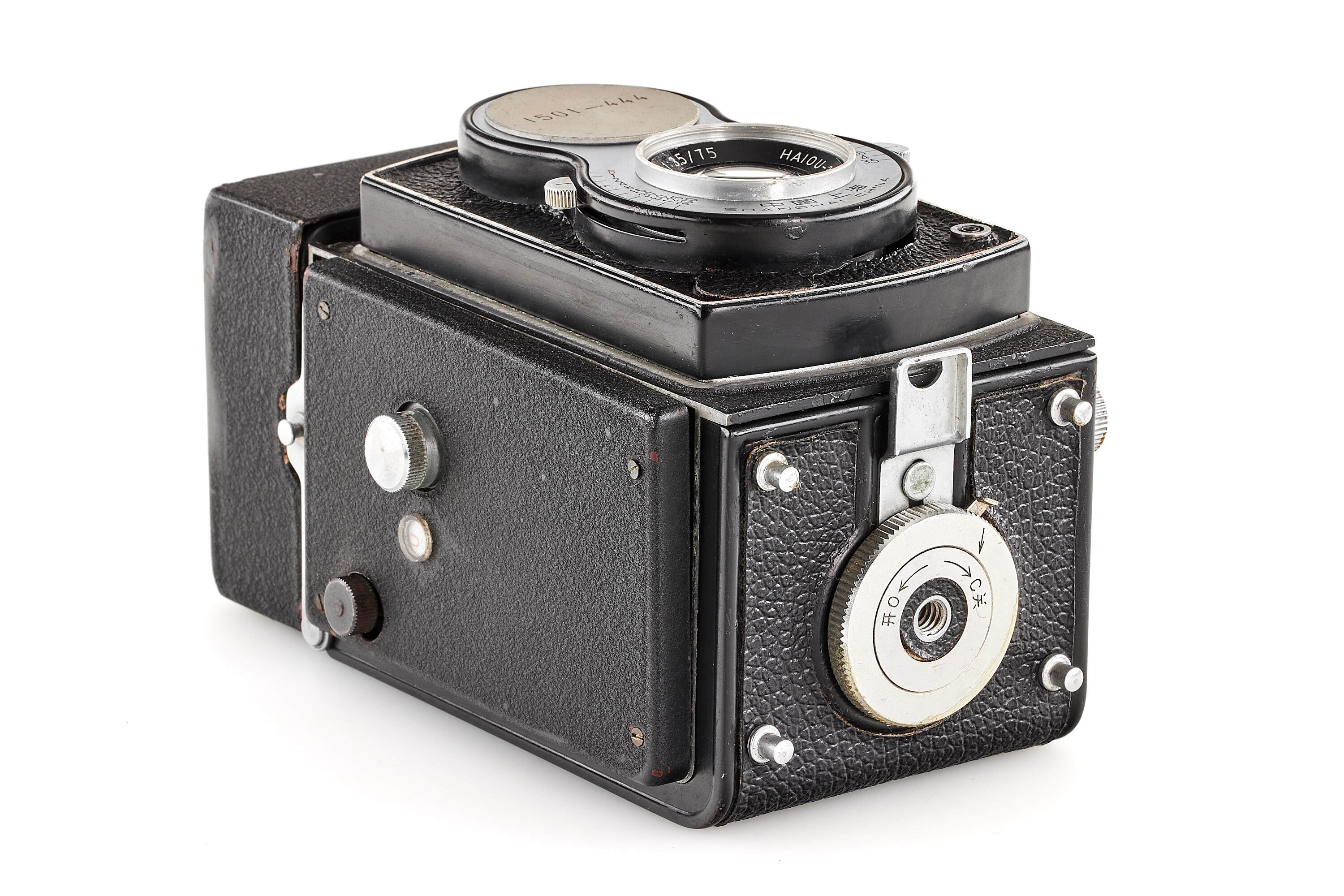 Around 1960, the Shanghai Camera Factory developed the special Model 1501, derived from the Seagull 4B 120 twin-lens reflex but substantially redesigned for covert use. A spring-powered mechanical motor advances a full roll (12 exposures) without manual winding, and the matte black finish minimises reflections. These modifications, combined with the quiet leaf shutter typical of the base platform, made the camera ideal for discreet installation inside a vehicle for surveillance and espionage.