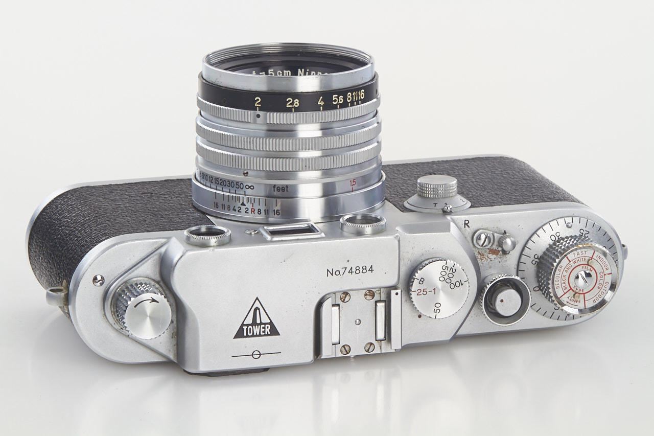 Japanese Leica III copy, made for Sears by Nicca, in very good condition and working order, tiny dent on top plate, with matching Nikkor H.C 5/5cm no.728525