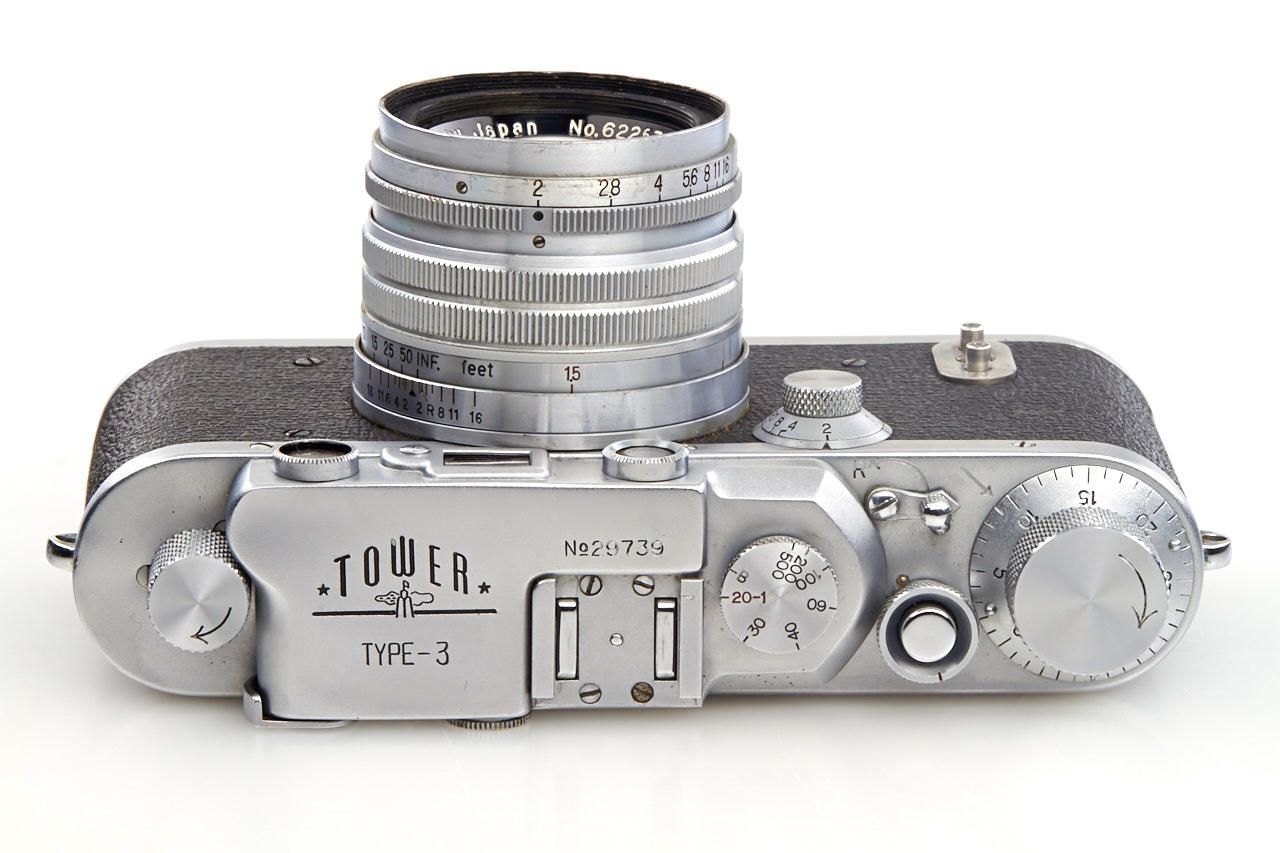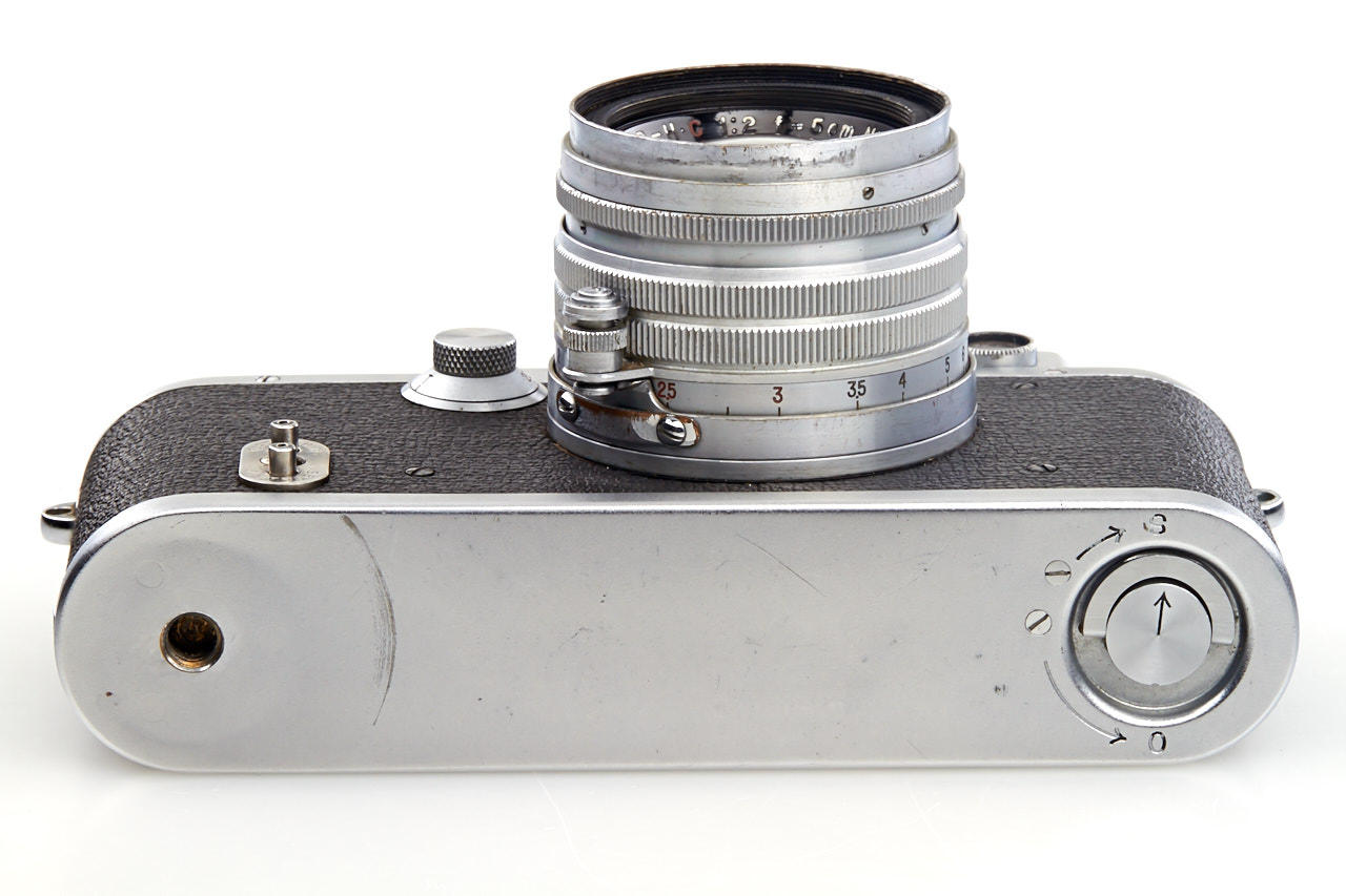 Japanese Leica III copy in excellent condition, with matching Nikkor H.C 2/5cm no.622576 (cond. B-), original front cap and everready case