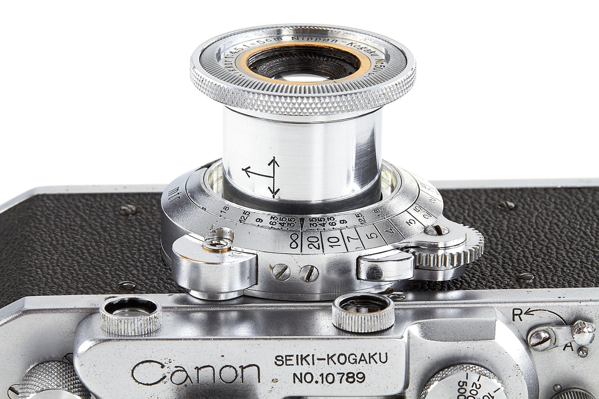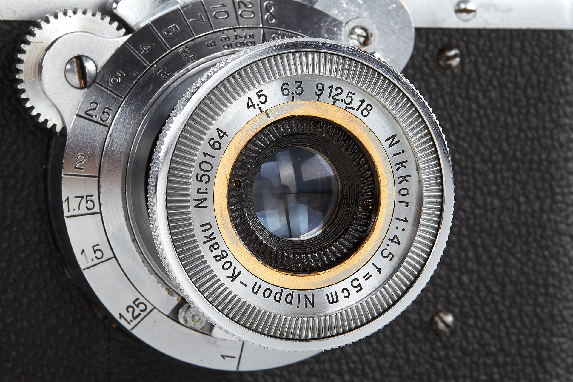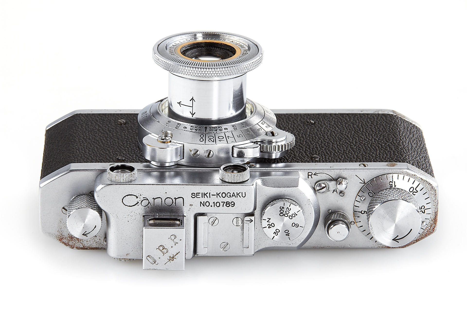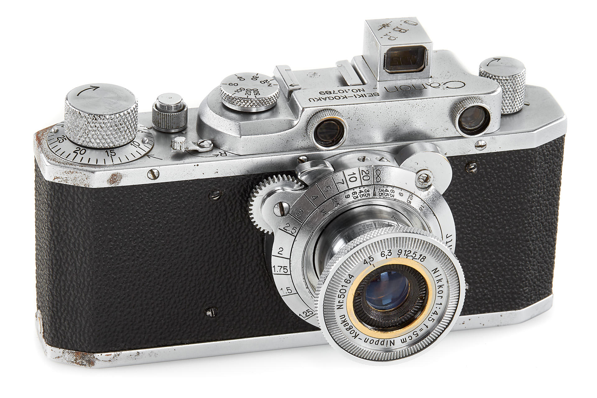 an extremely rare Canon rangefinder camera without the slow speeds, the camera was introduced as a cheaper alternative to the Canon S, but because of poor sales the production has been ceased after only around 100 cameras have been made, the offered example is in good condition and working order, hand-engraving on the collapsible finder, with the 'white face' Nikkor 4.5/5cm no.50164 (mount no.2098), a rare opportunity for every camera collector!