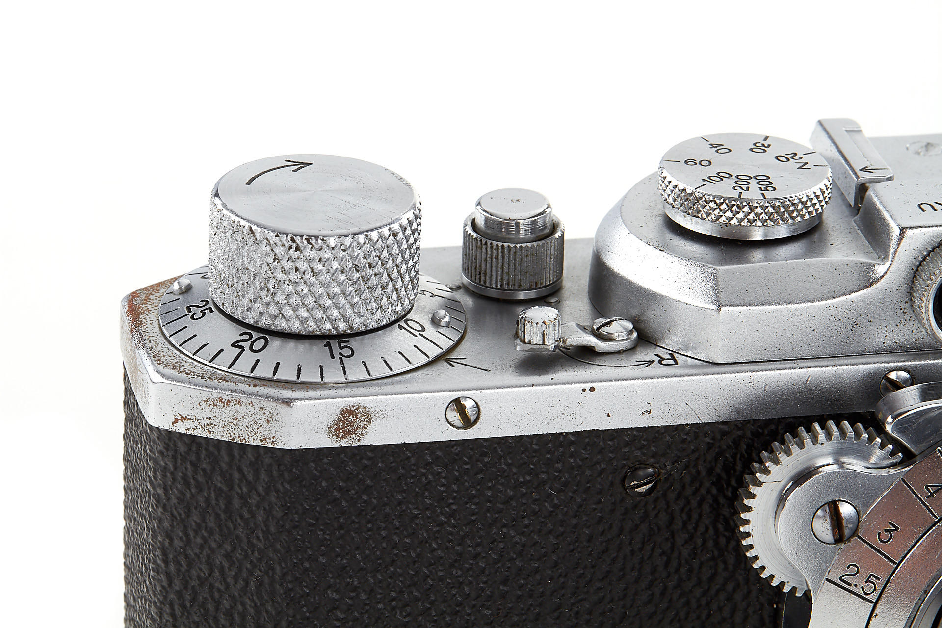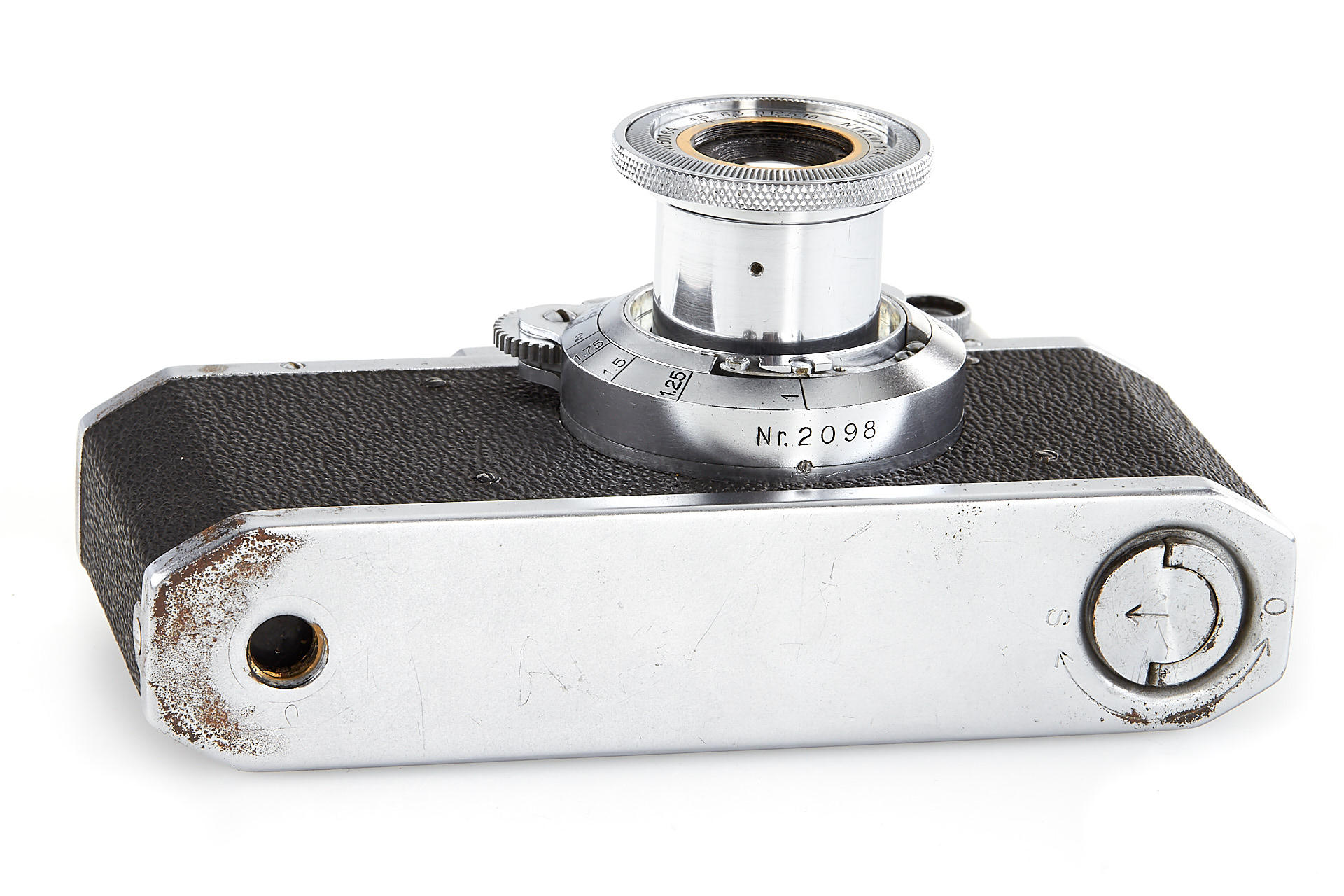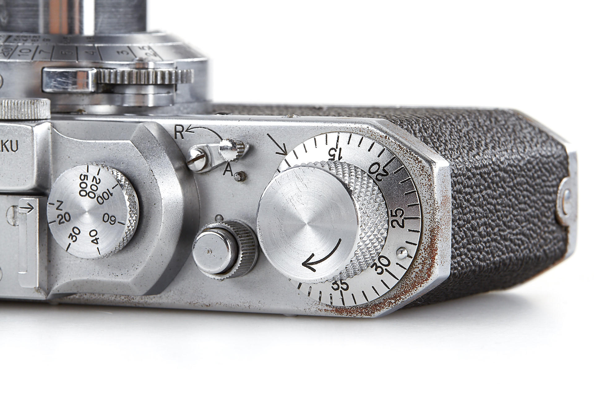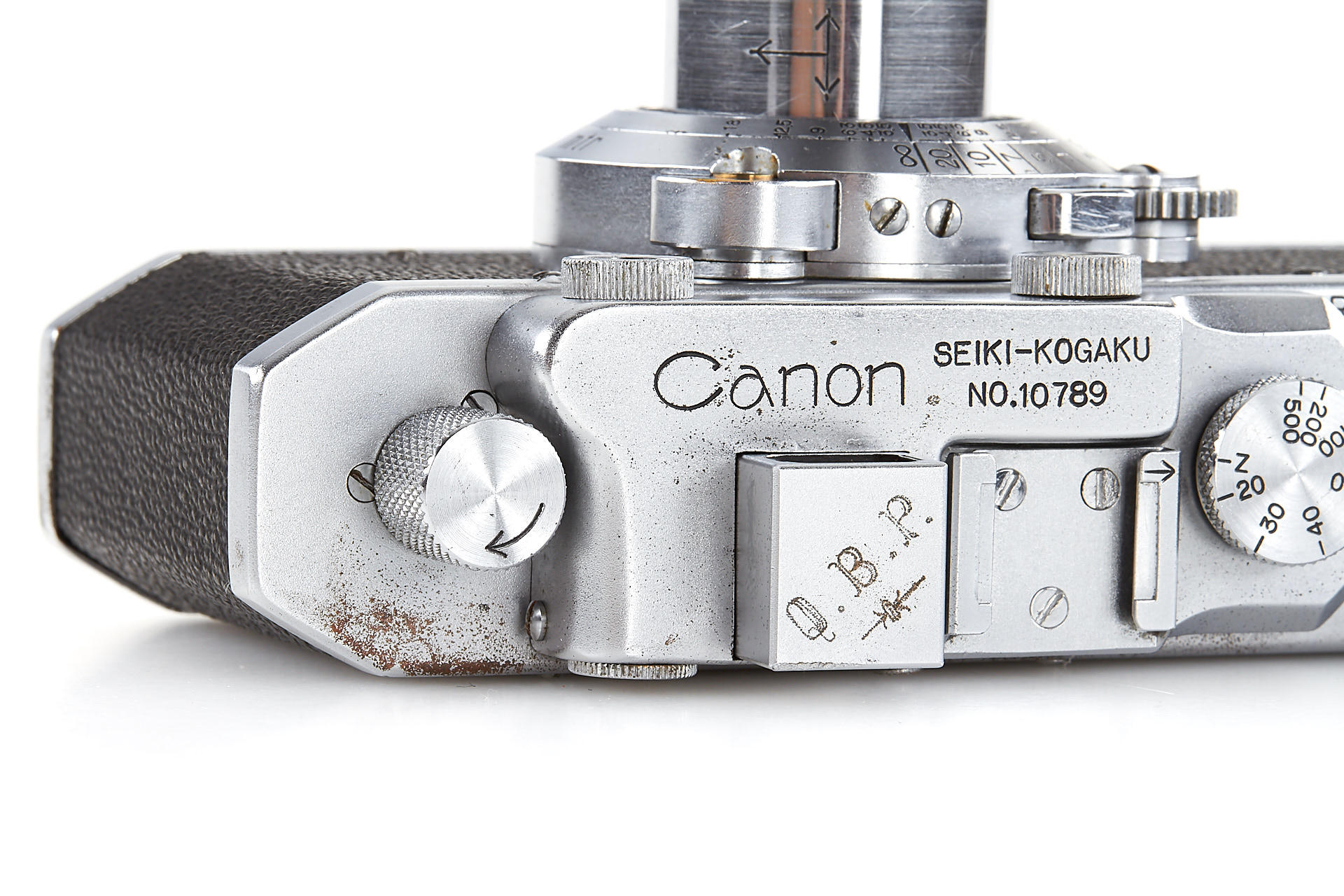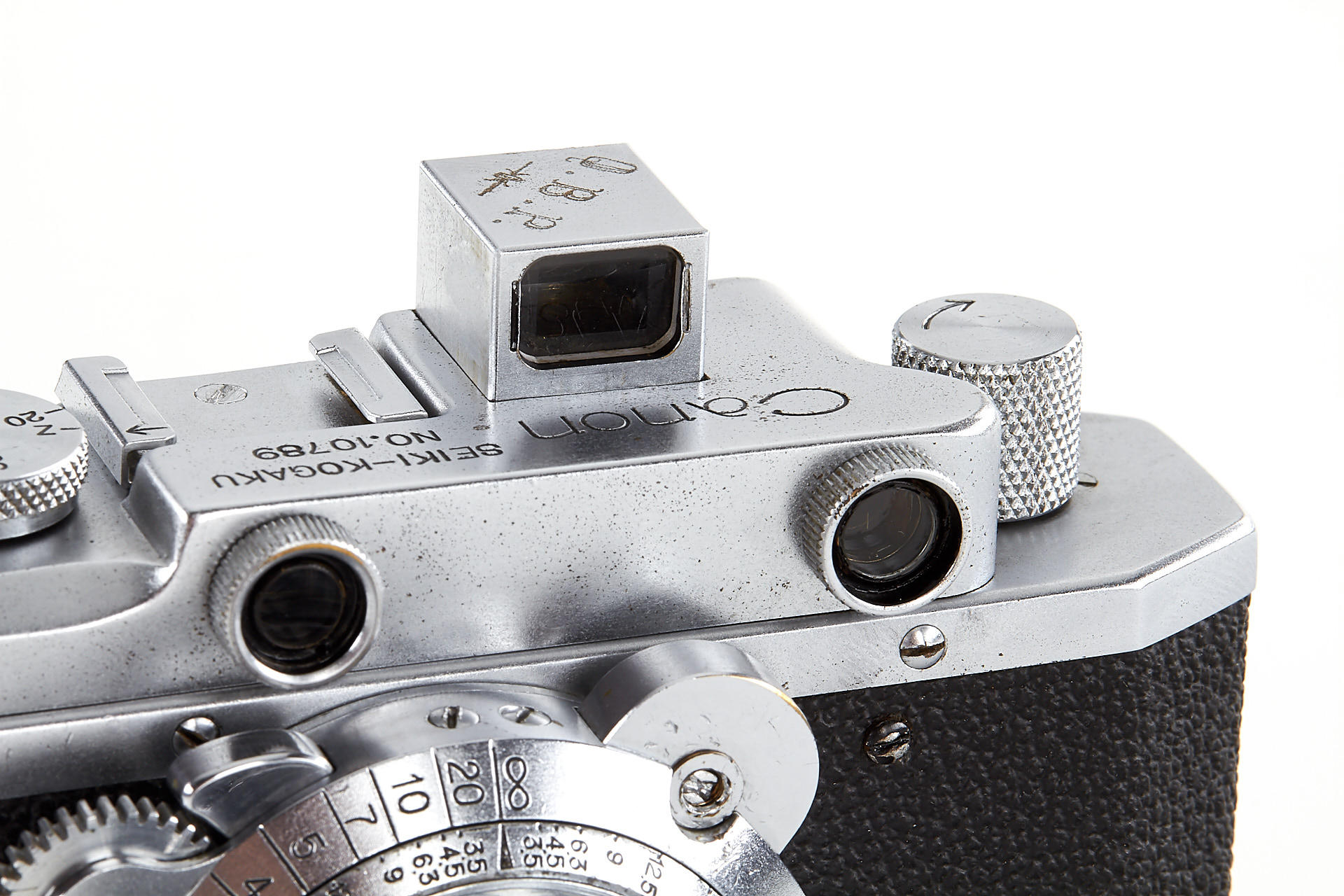 an extremely rare Canon rangefinder camera without the slow speeds, the camera was introduced as a cheaper alternative to the Canon S, but because of poor sales the production has been ceased after only around 100 cameras have been made, the offered example is in good condition and working order, hand-engraving on the collapsible finder, with the 'white face' Nikkor 4.5/5cm no.50164 (mount no.2098), a rare opportunity for every camera collector!