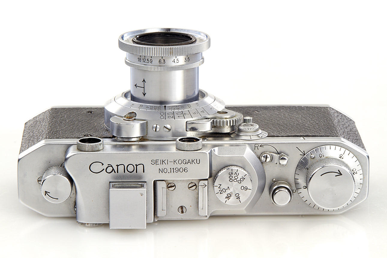 early Canon rangefinder camera with Nippon-Kogaku Nikkor 3.5/5cm no.501726, lens flange engraved with no.2740, in beautiful condition, with original lens cap and Canon Hansa everready case