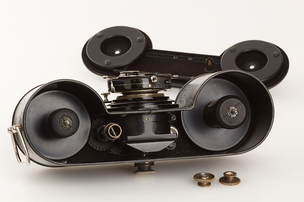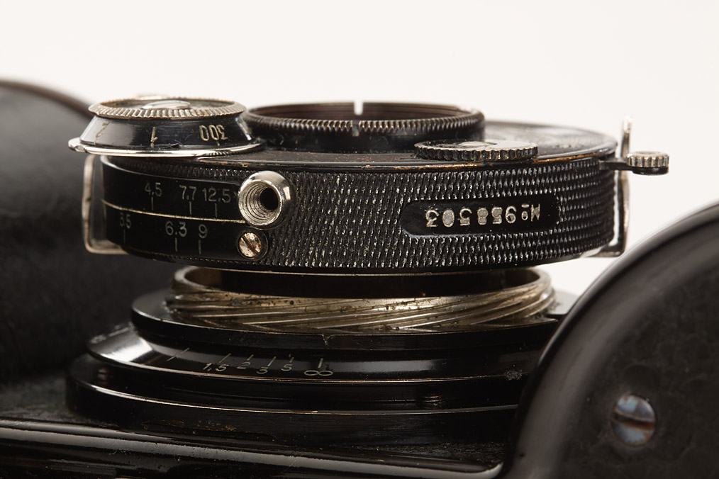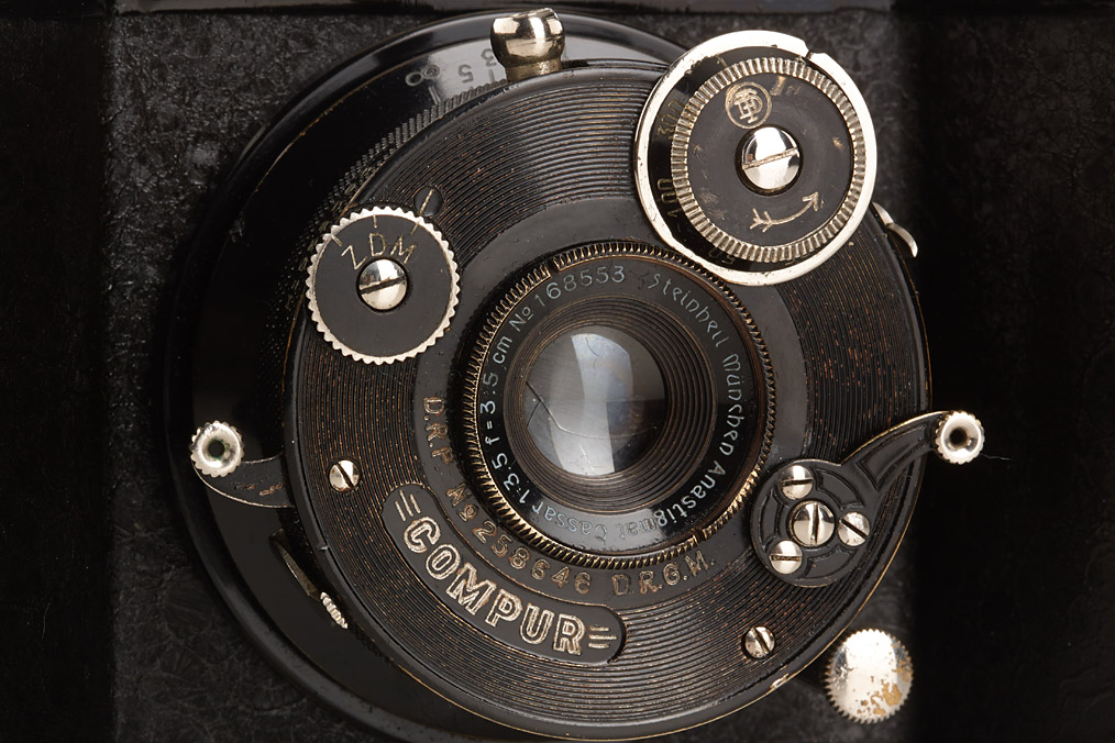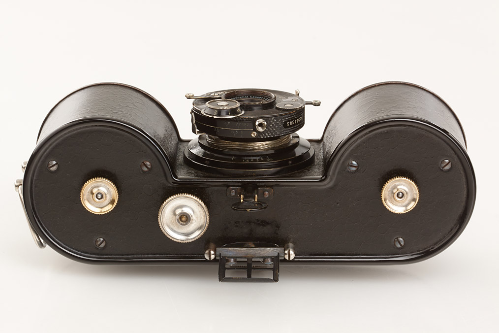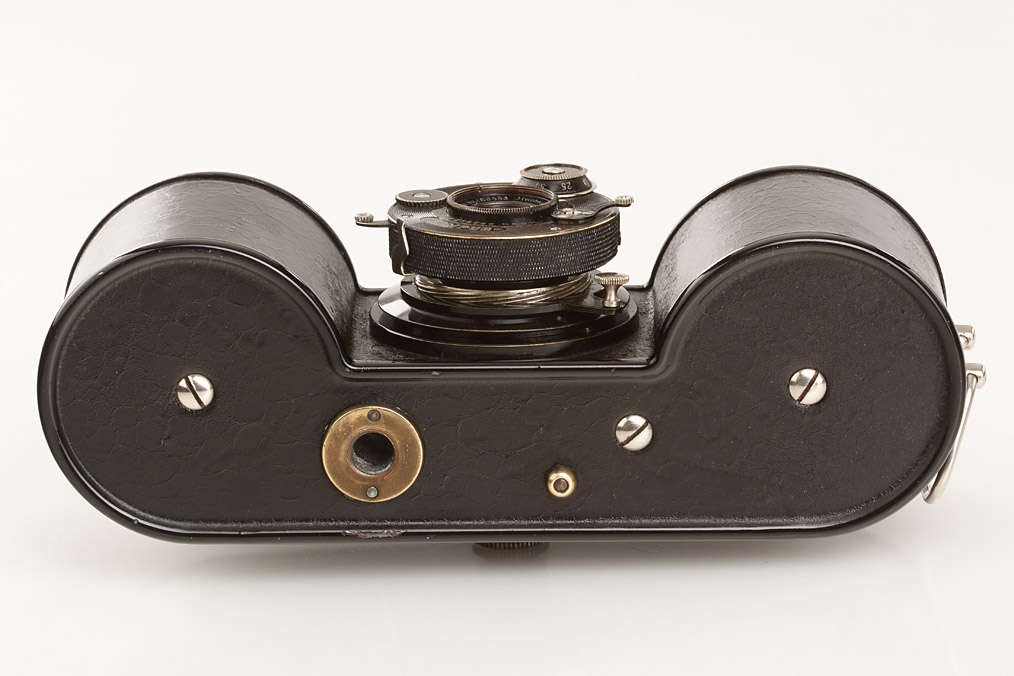 extremely rare forerunner of the Leica, for 400 exposures on half-frame using 35mm film, in beautiful original condition, with Cassar 3.5/5cm no.168553 in dial-set Compur shutter and original case