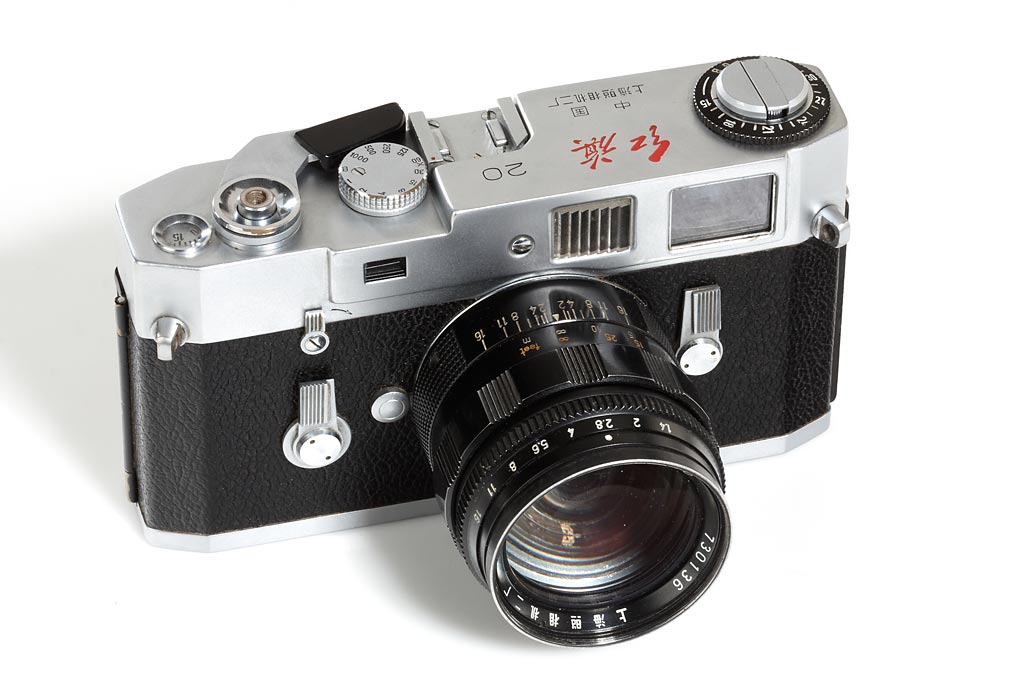rare Chinese M4 copy (less than 200 were produced by direct order of the government, none were sold to the public) in very fine and perfect working condition, with all three matching lenses: 1.4/35mm (Summilux copy) no.77237 (clean lenses, original front cap), 1.4/50mm (Summilux copy) no.730136 (clean lenses, original metal hood like XOOIM with cap), 2/90mm (Summicron copy) no.750067 (clean lenses, original front cap, plastic keeper), extremely rare original black everready case with Chinese characters
