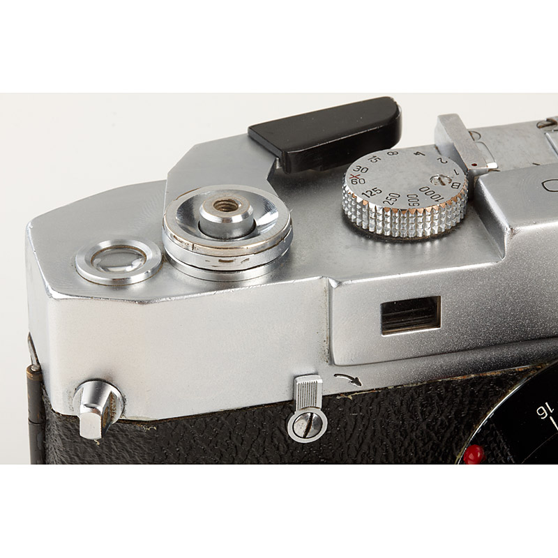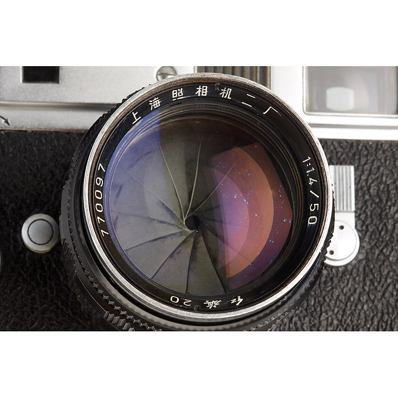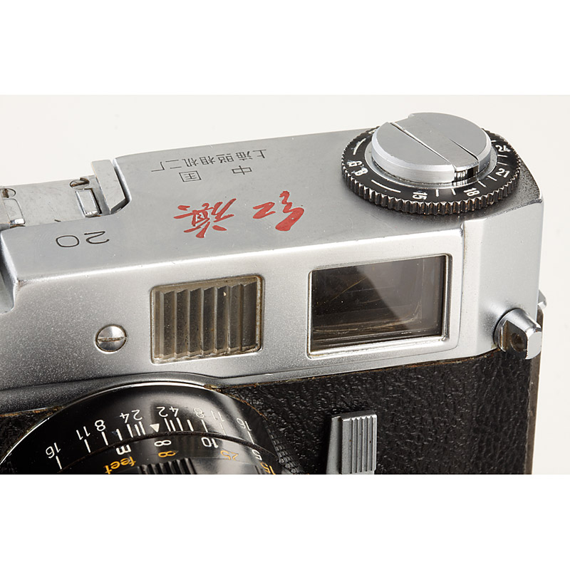 extremely rare complete outfit of the Chinese M4 copy (less than 200 were produced by direct order of the government, none were sold to the public) body in fine, working condition, with all three matching lenses: 1.4/35mm (Summilux copy) no.77217 (original caps, hood), 1.4/50mm (Summilux copy no.770097, original hood, cap), 2/90mm (Summicron copy no.760039, cap), all lenses in fine condition, all in original black leather RED FLAG outfit case with red velvet inlet