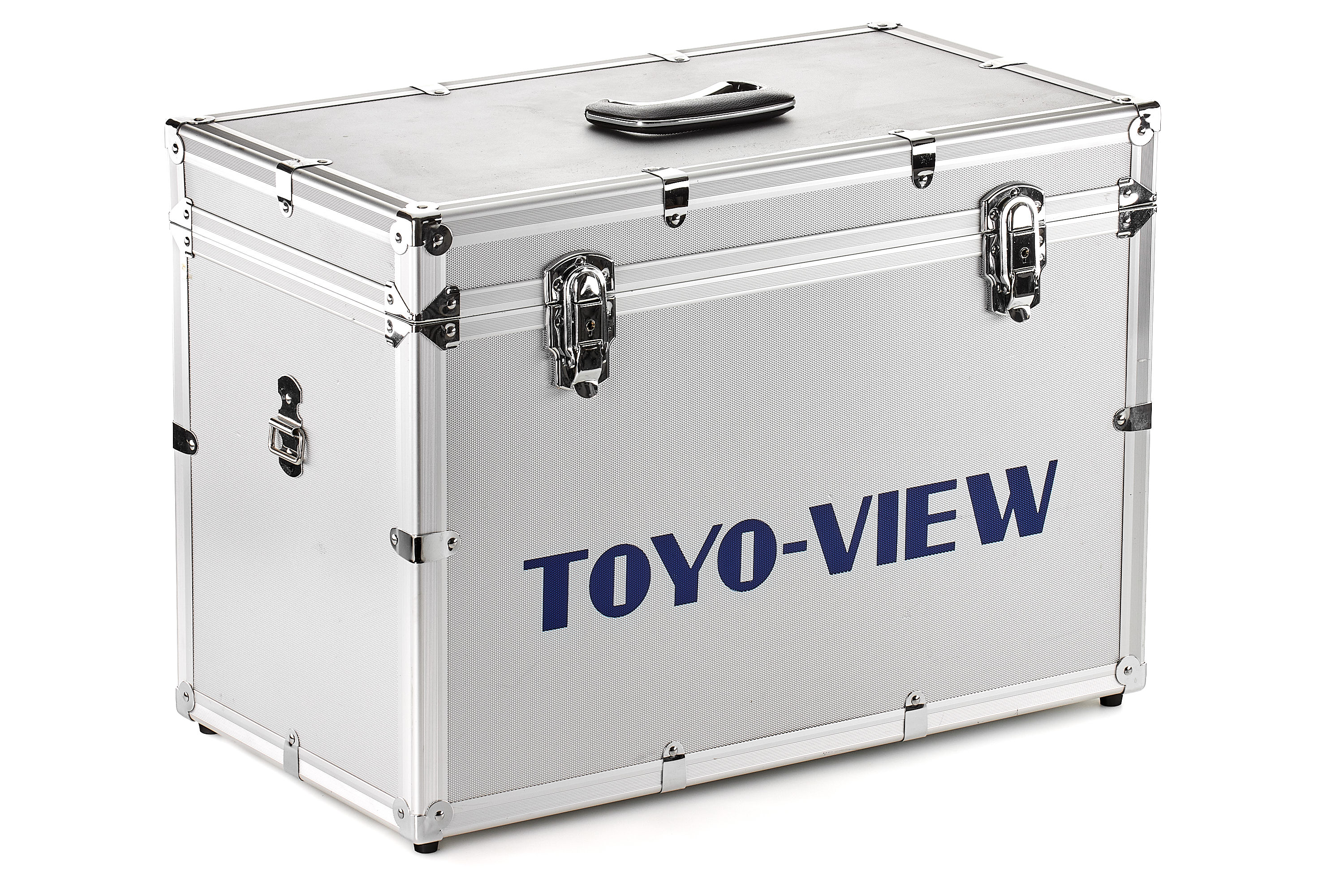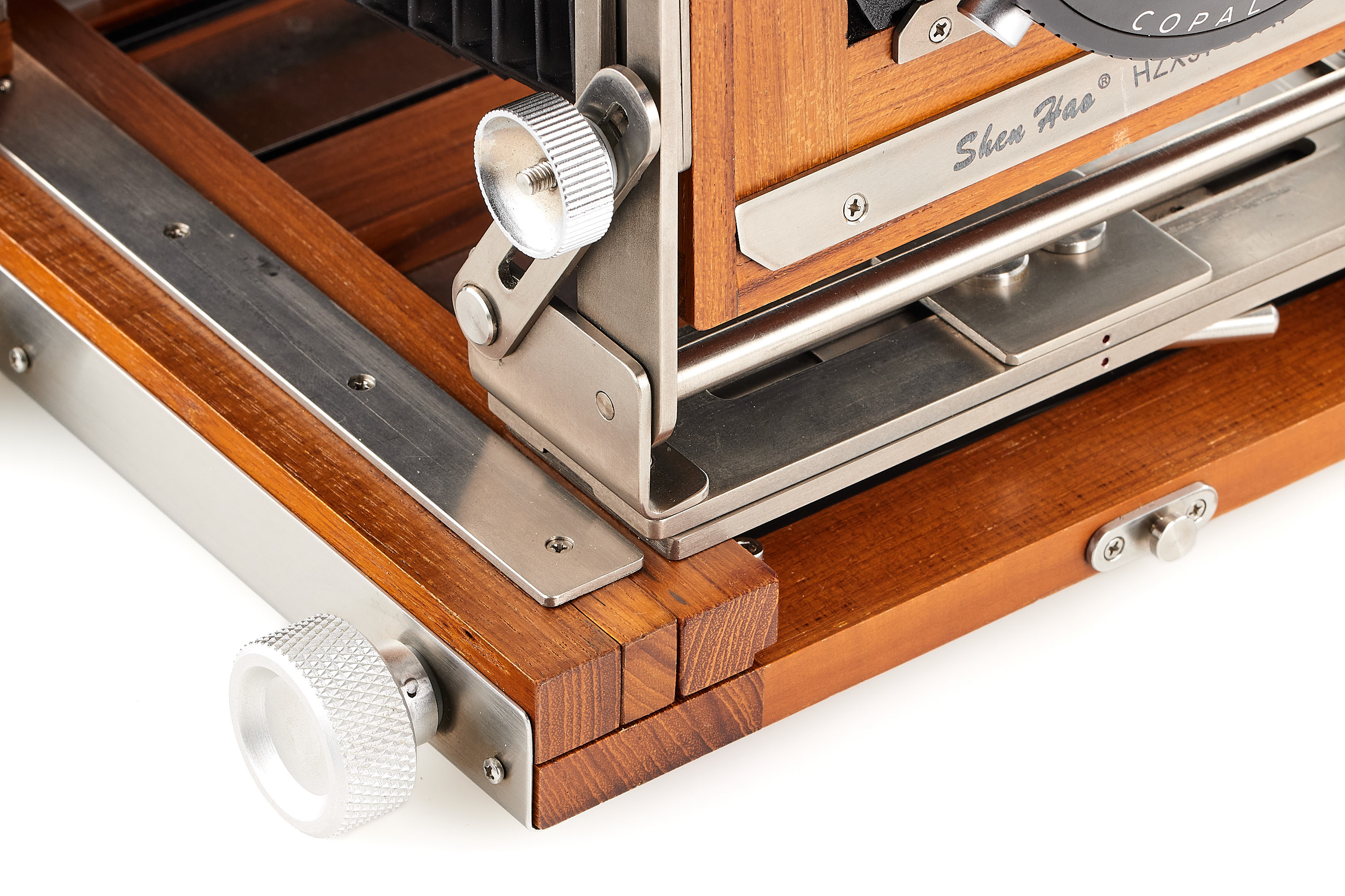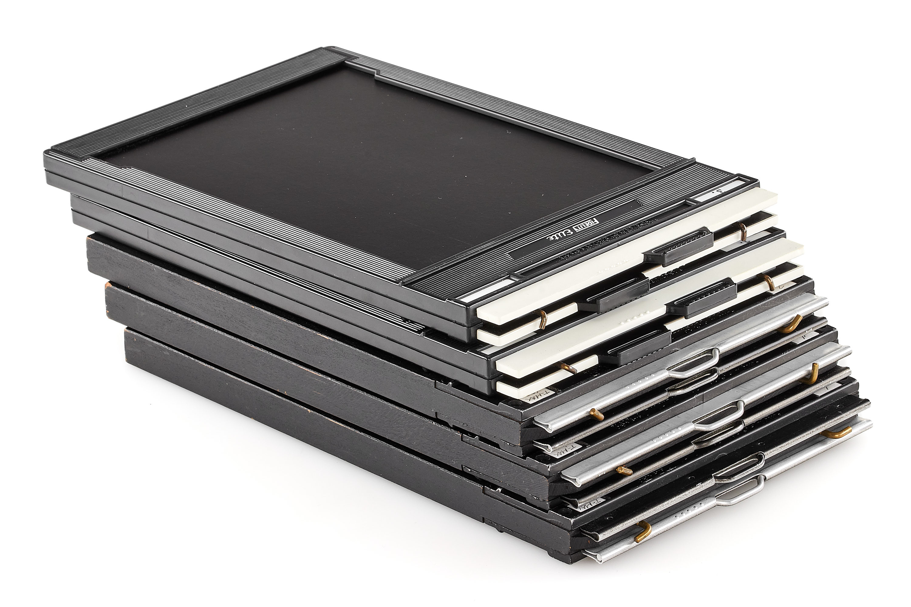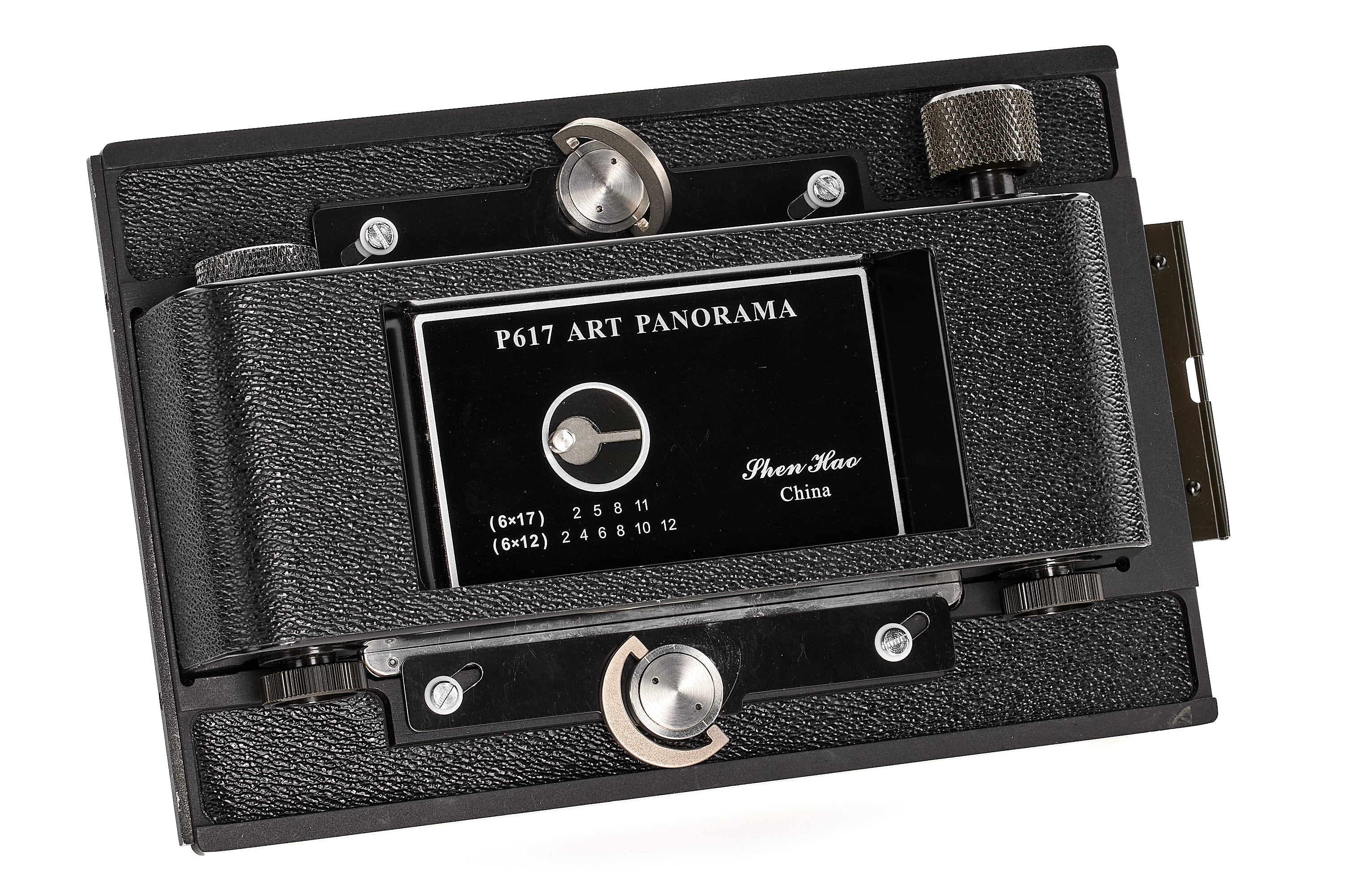 Very nice large format field camera for up to 5x7", in mint condition, including ground glass for 5x7", Wista Field ground glass back for 4x5", extra standard bellows, extra leather bellows, P617 6x17/6x12cm panorama back for 120 roll film, 5x 5x7" double film holders, together with Goerz Apochromat Artar 9/14" from the 1940s no.791516 with good coated optics only showing few cleaning marks, mounted in Copal-No.3 shutter (both caps), with outfit metal case.