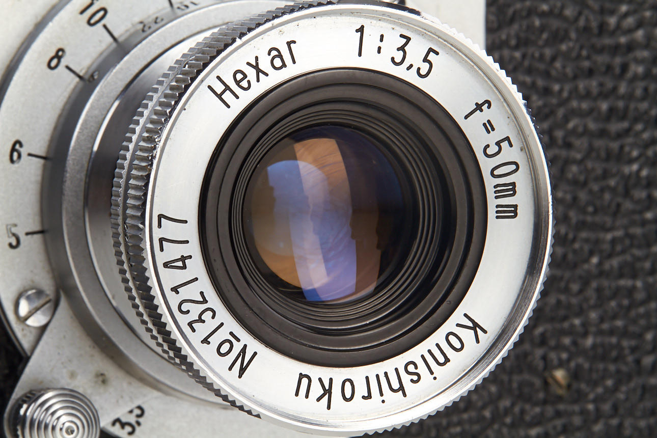 second version Leotax F in very fine working condition, with Konishiroku Hexar 3.5/50mm no.1321477
