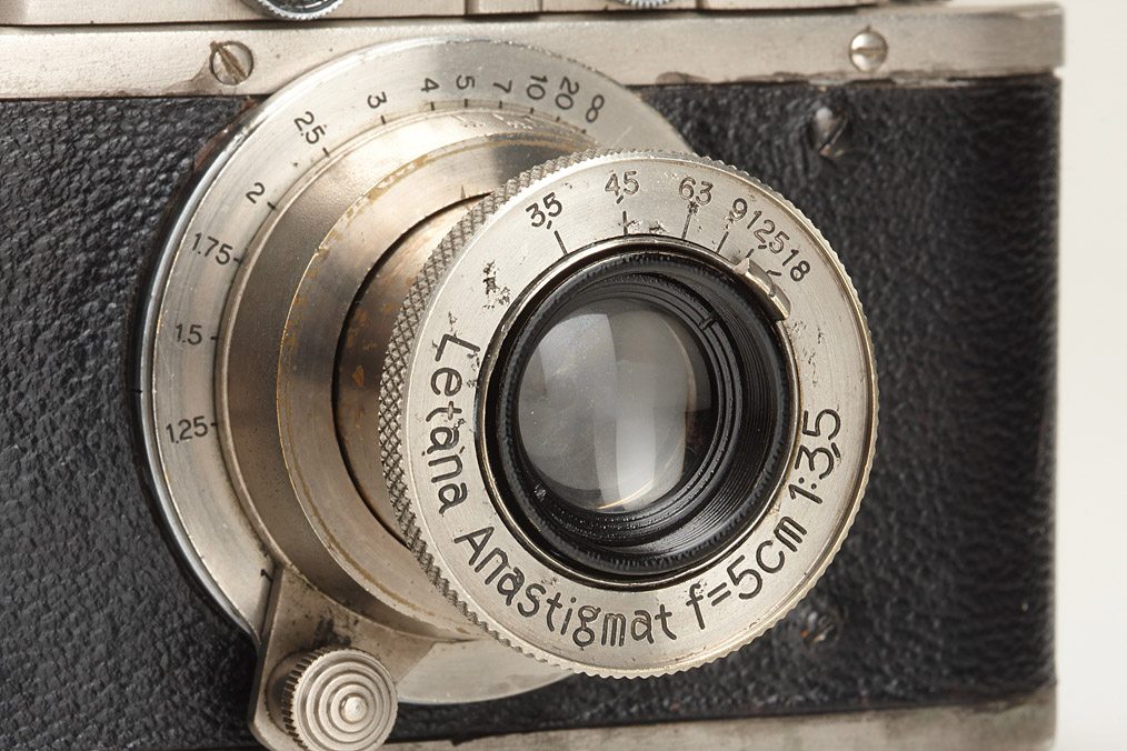 very rare Leotax in nickel finish, rangefinder coupled M39 Letana Anastigmat 3.5/5cm no.80, in Meter, working shutter and rangefinder