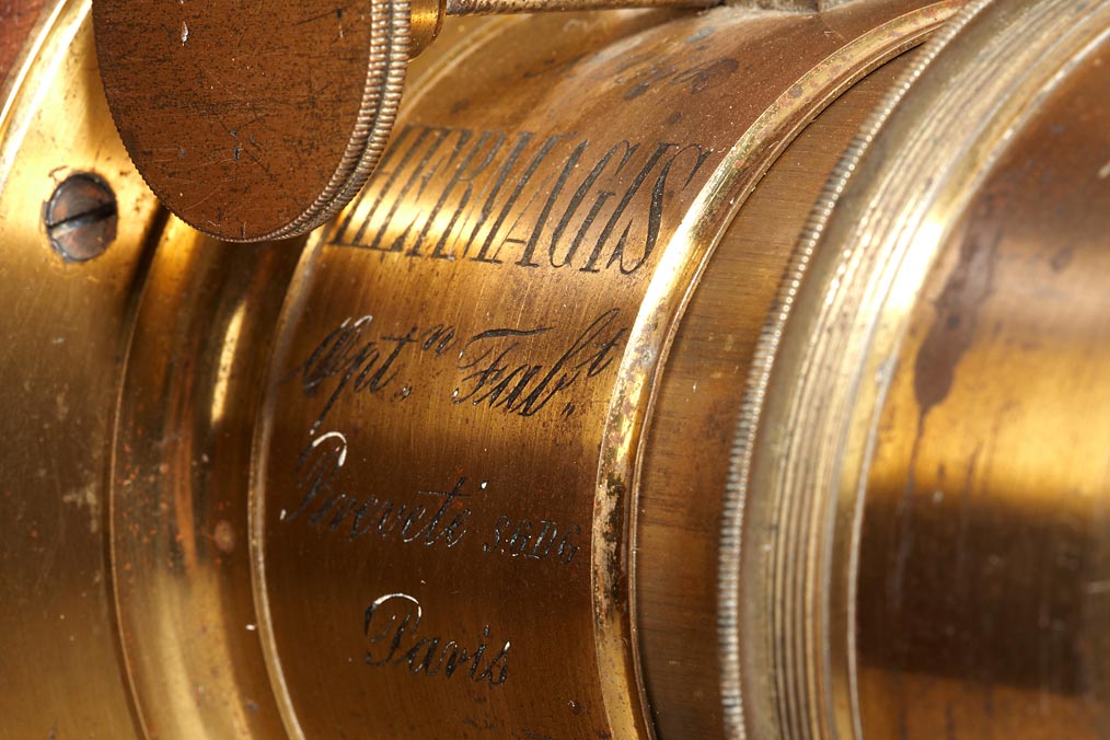 French half plate camera for the wet collodium process, Petzval type lens Hermagis Opt. Fab. Brevete S.G.D.G. Paris, c.30cm focal length with rack and pinion focussing, restaured wooden ground glass holder, in fine condition