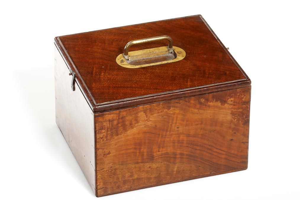 extremely rare second model produced by Smith, Beck & Beck of London. The polished mahogany carrying case with a brass carrying handle on the top of the lid, the stereoscope is built on the underside of the lid which can be reversed and mounted on the top of the carrying case. The viewer is also made of polished mahogany with lacquered brass fittings, hinged at the back with an adjustable bracket to incline the viewer to a convenient viewing angle. The viewer has a hinged mirror for use with cardboard views; with the mirror closed the viewer can be used with glass and tissue views. The prismatic lenses are mounted in brass eyepieces on a brass plate and can be focussed by knurled brass knobs on either side of the viewer. This exceptional stereoscope is in very good overall condition. The classical Smith, Beck & Beck Mirror stereoscope is for sale in this auction.