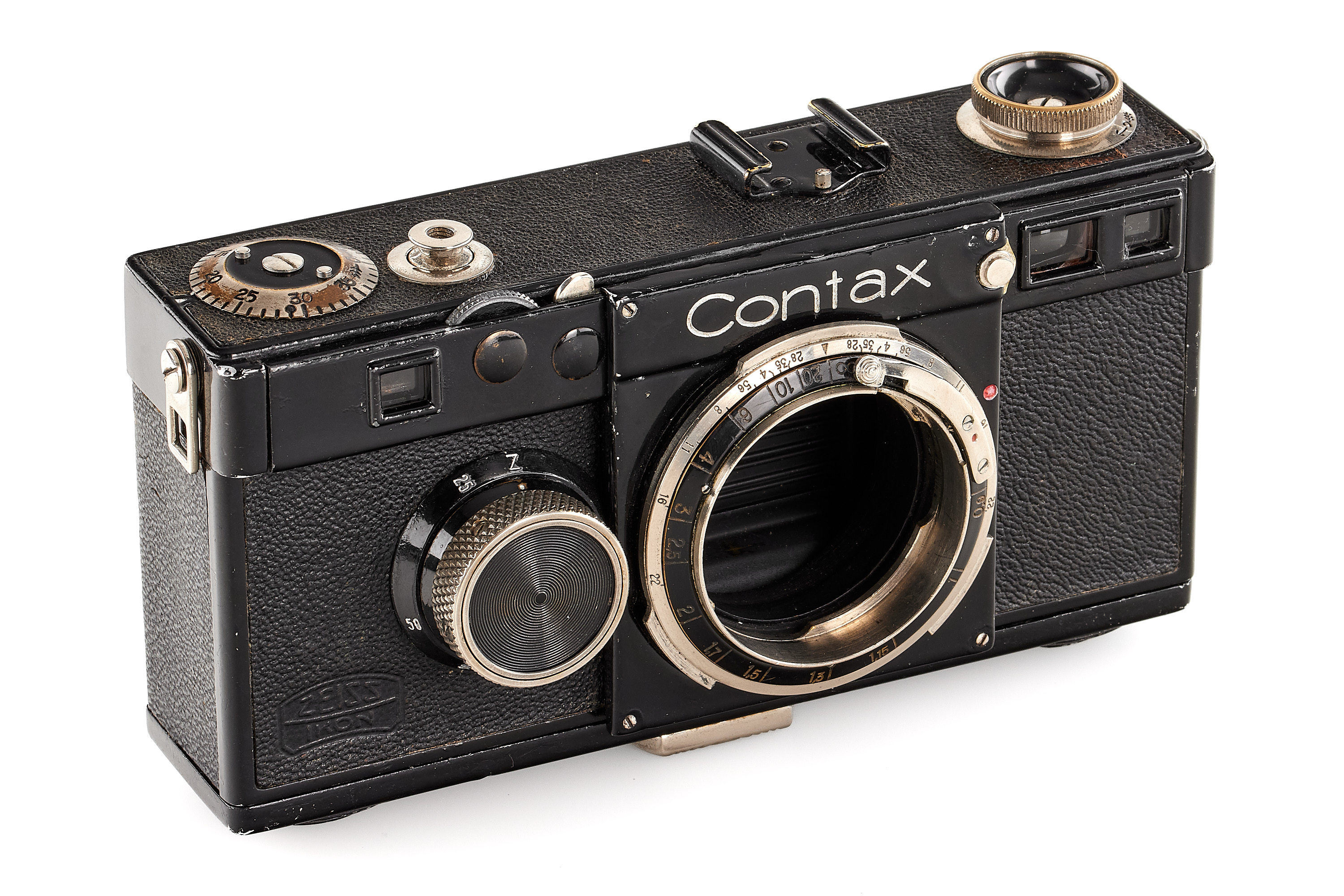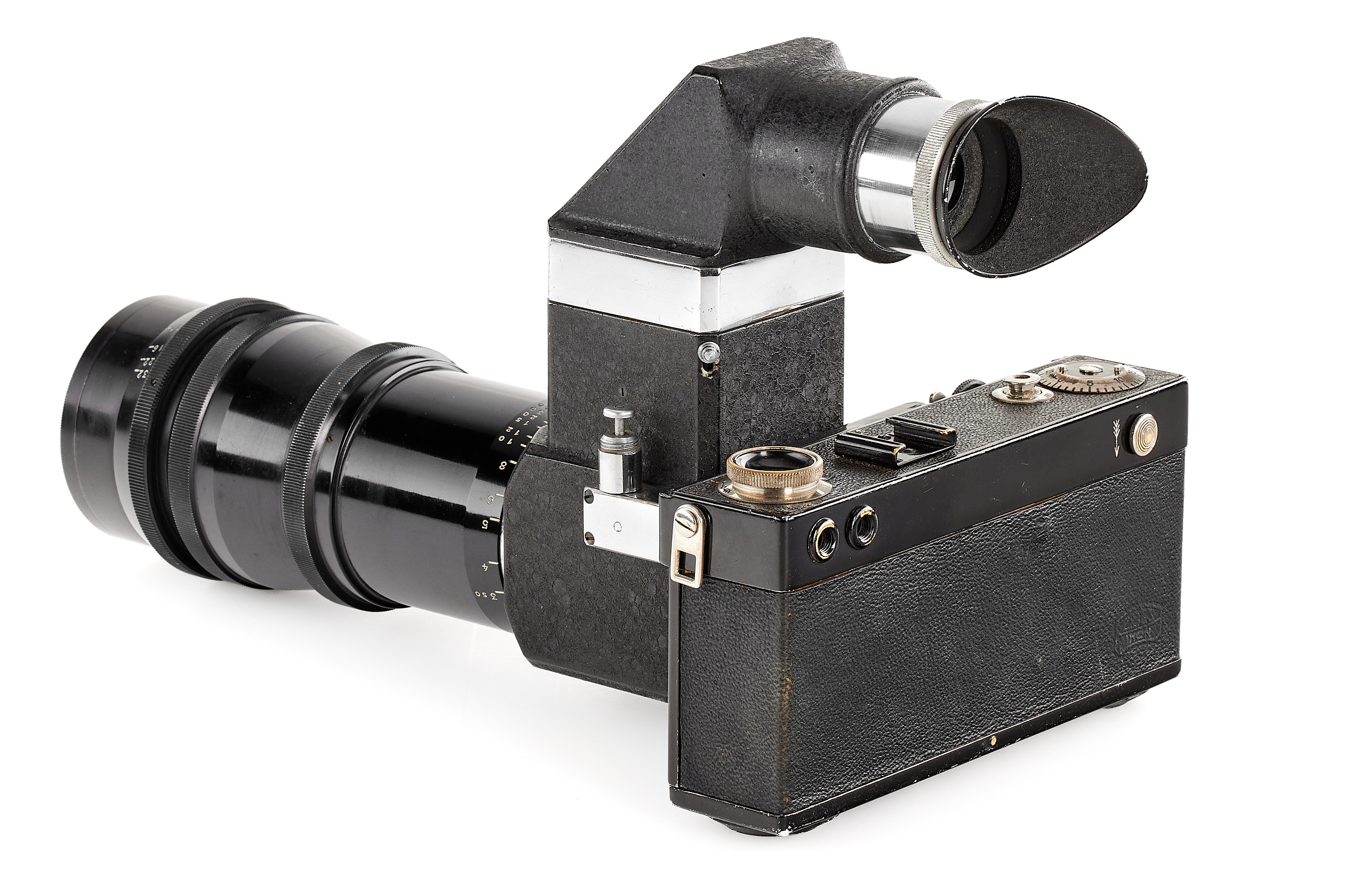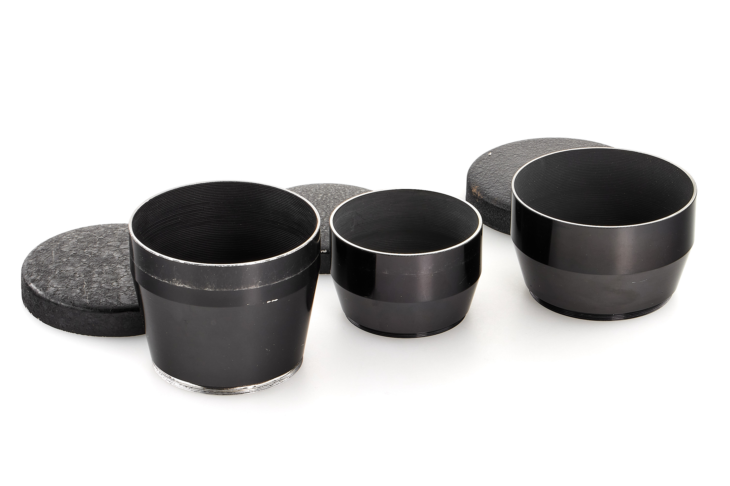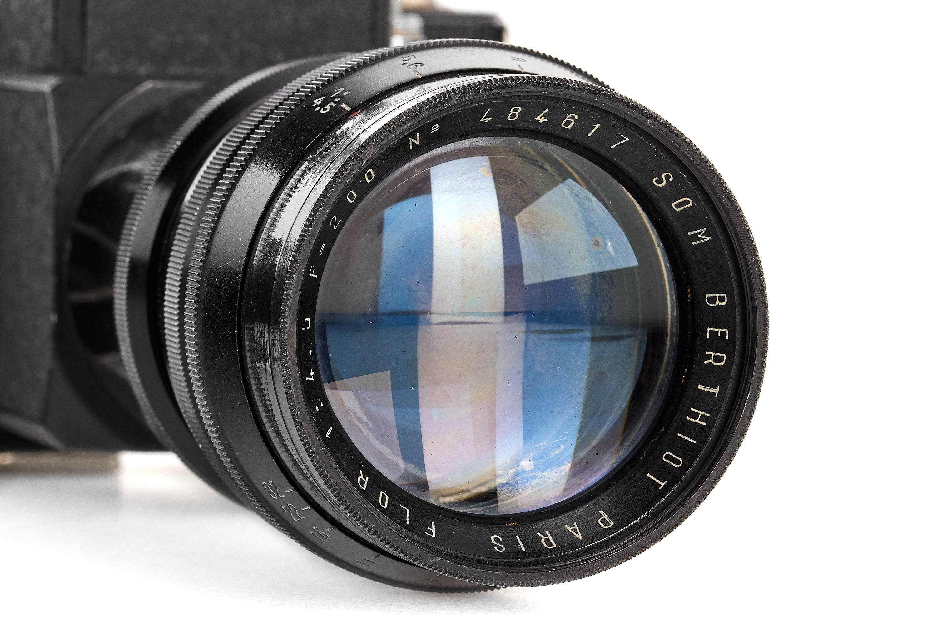 Very interesting set of Som Berthiot lenses, including a Flor 3.5/180mm no.452471 with very good coated optics (both caps and hood), a Flor 4.5/200mm no.484617, optics showing some blemishes in the coating and cleaning marks (front cap and hood), a Tele.Objectif 5.5/300mm no.443378 with good optics only showing some cleaning marks (both caps and hood), together with reflex housing and early Contax I no.A.U.65678.