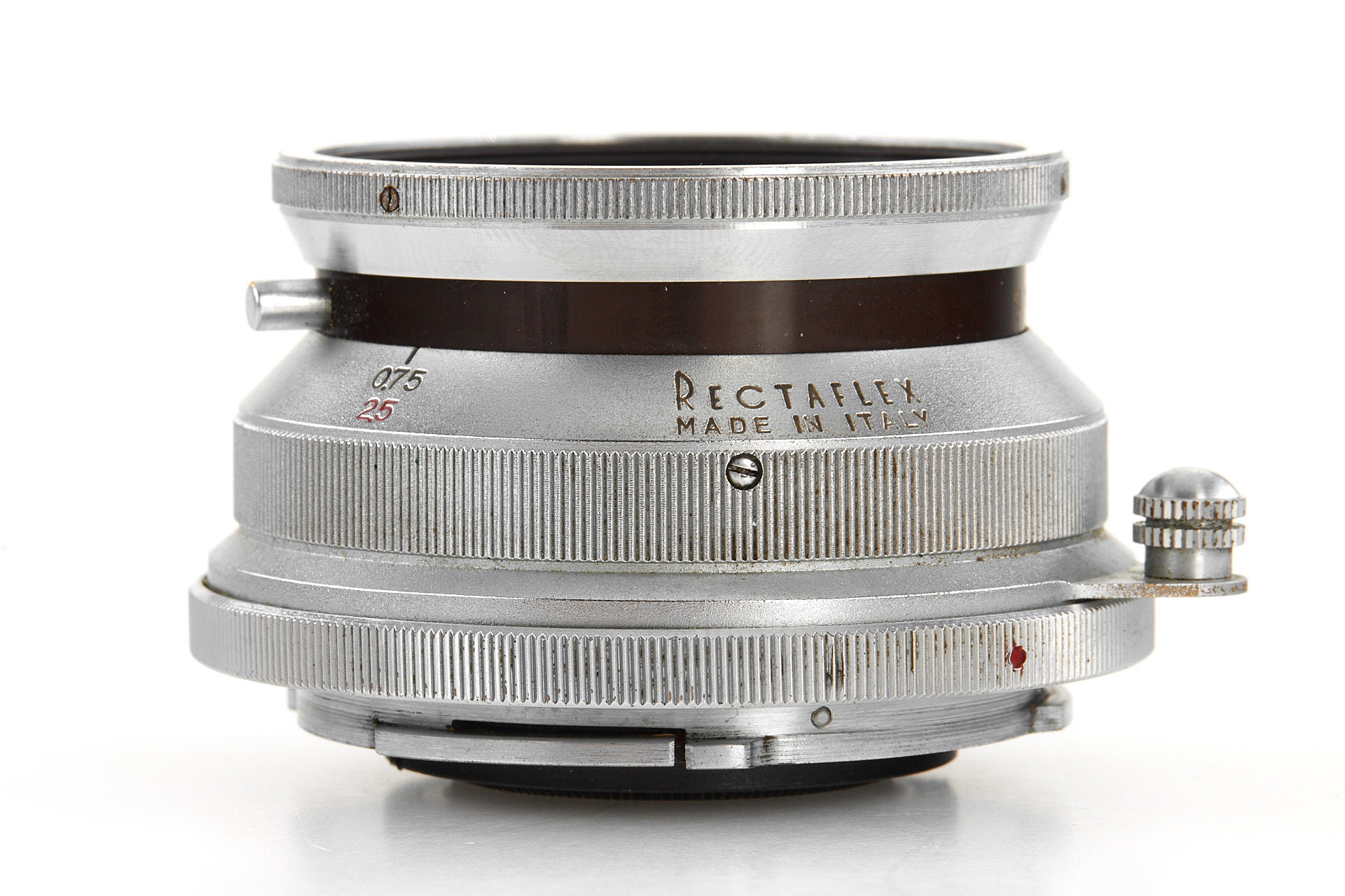 Very rare standard lens for Rectaflex, in very good condition, optics showing marks of removed fungus, with original front cap